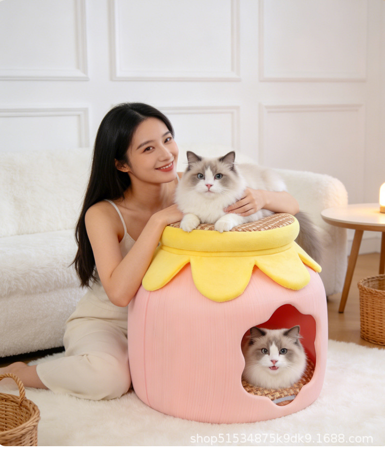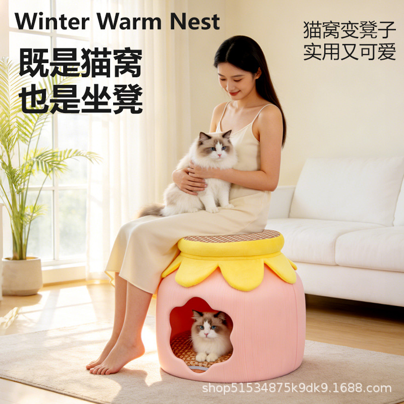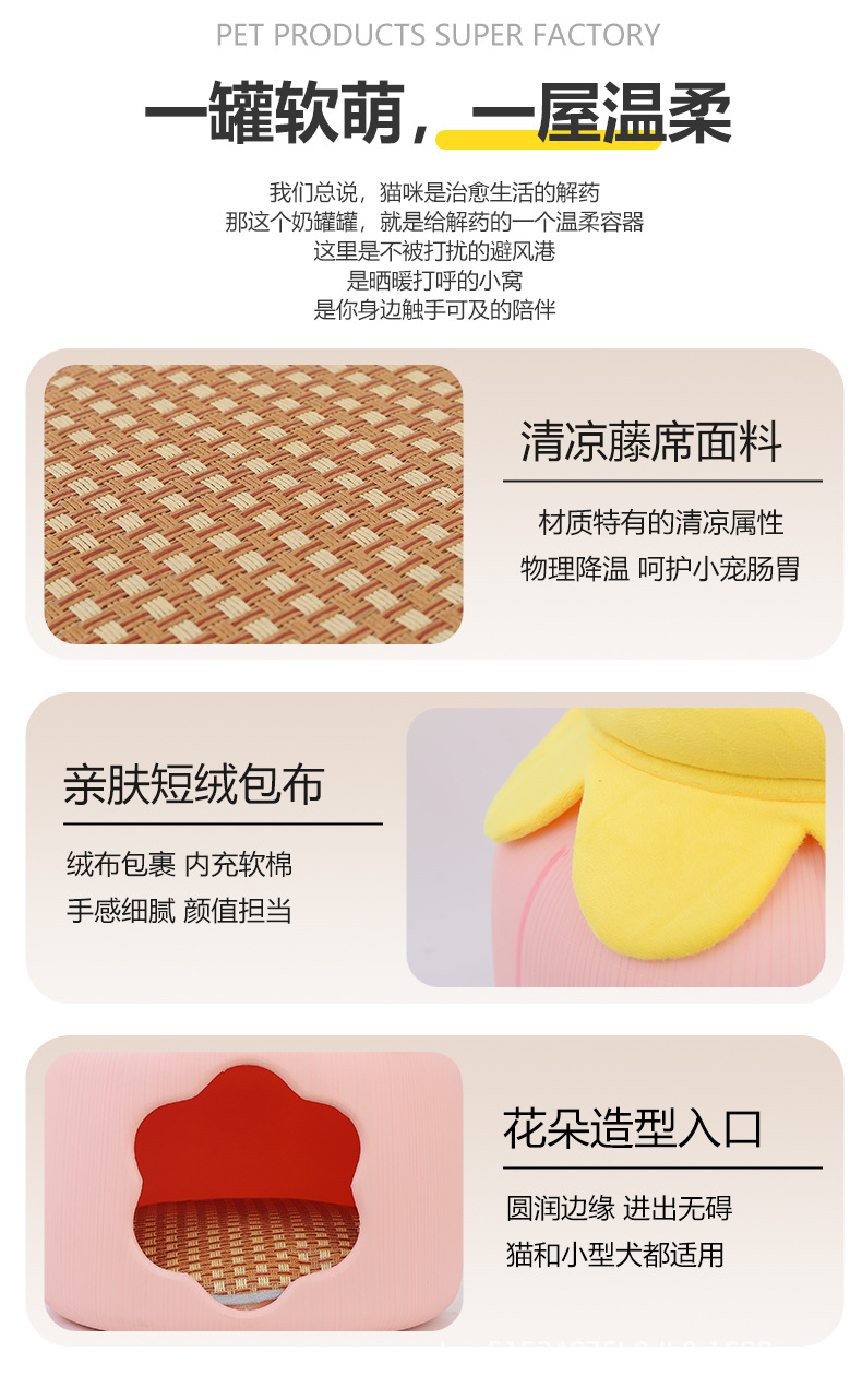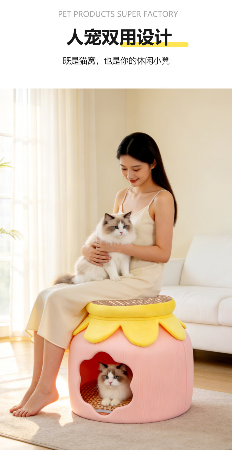 跨境猫窝封闭式一体夏季凉席耐磨耐抓人宠共用四季通用宠物用品