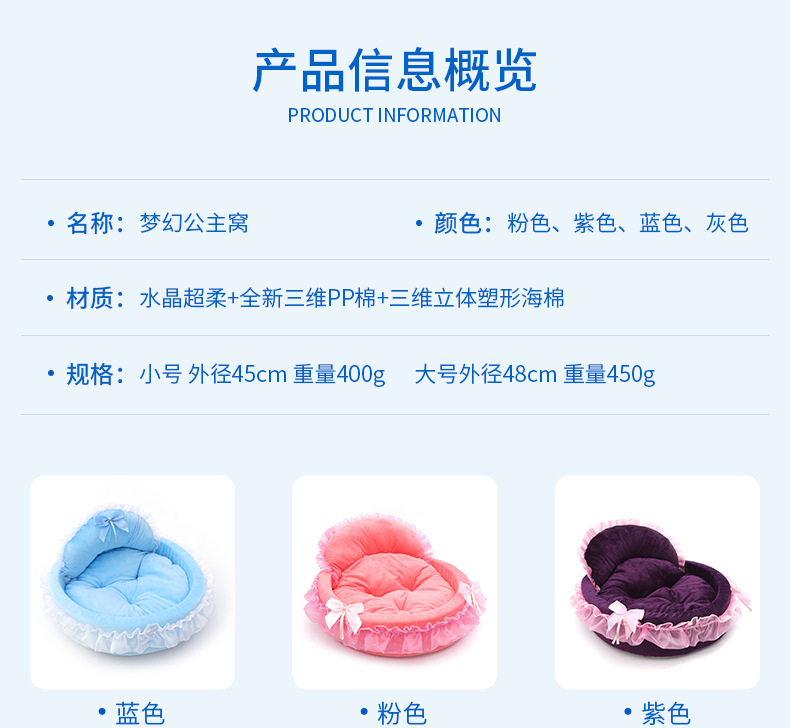 新款可爱公主床宠物窝猫咪用品猫狗窝四季通用柔软舒适狗窝批发