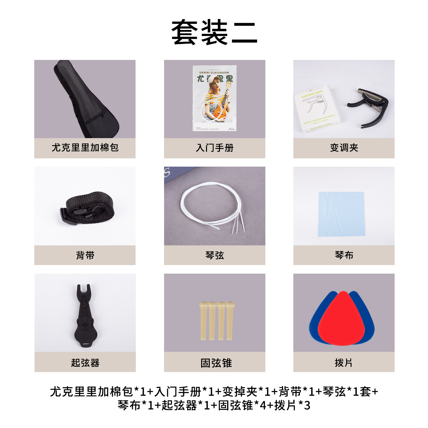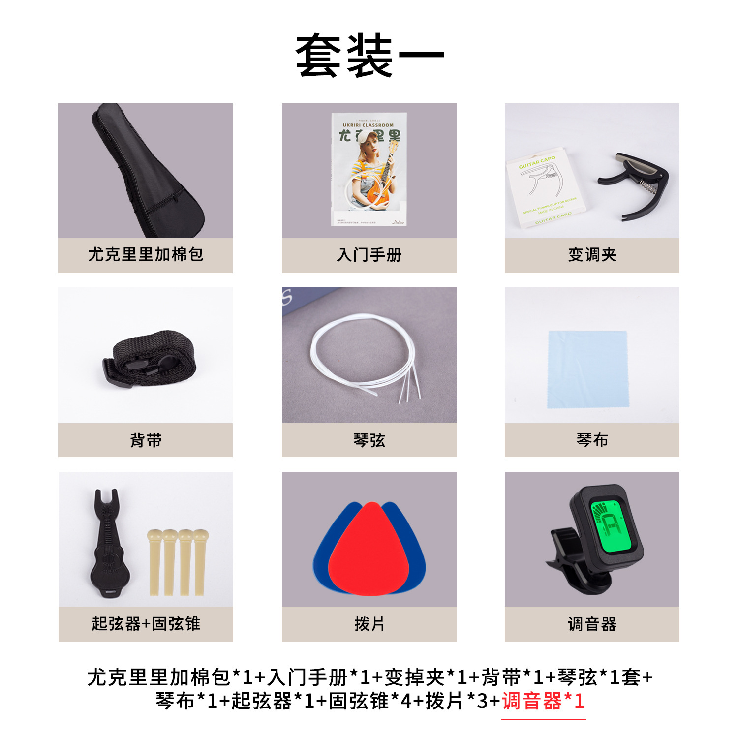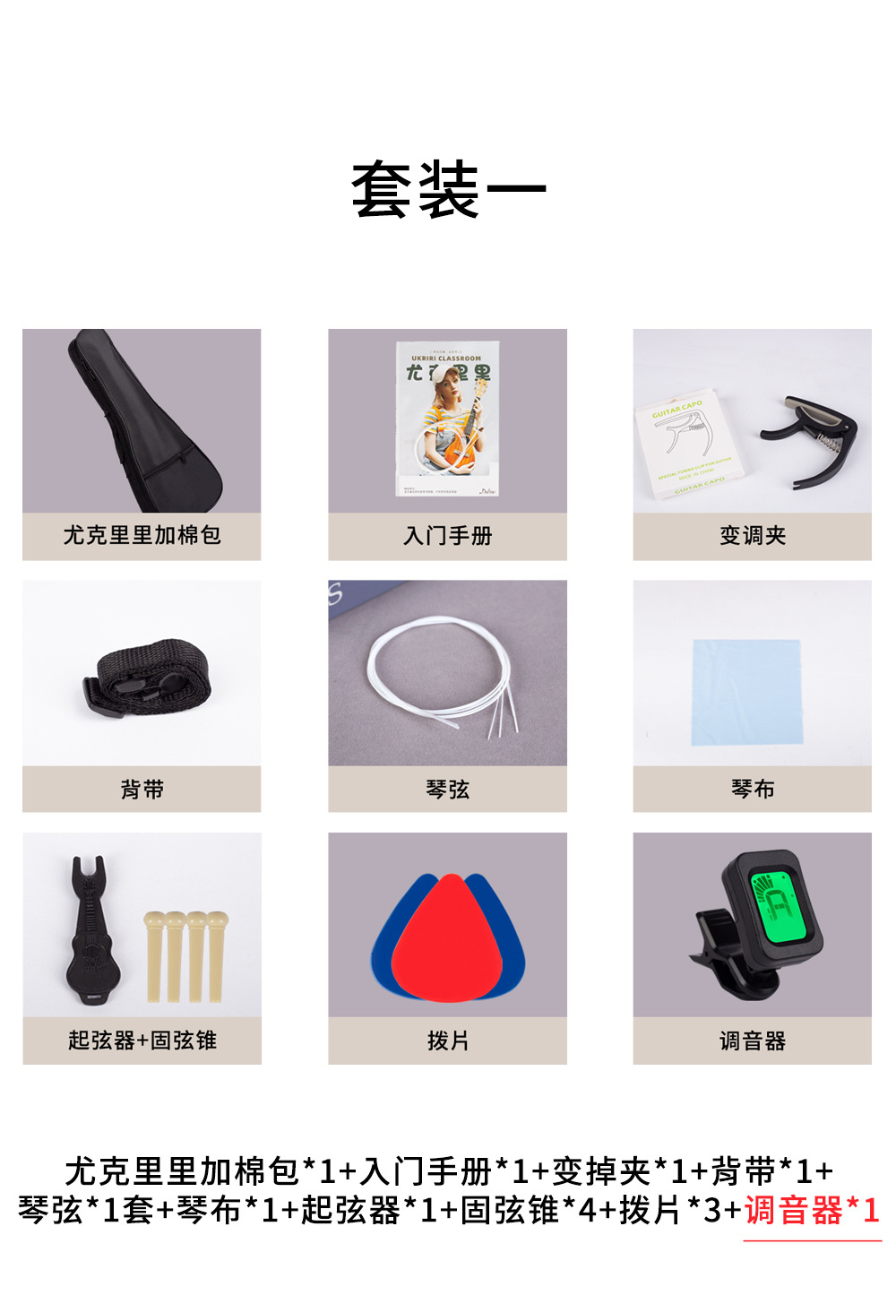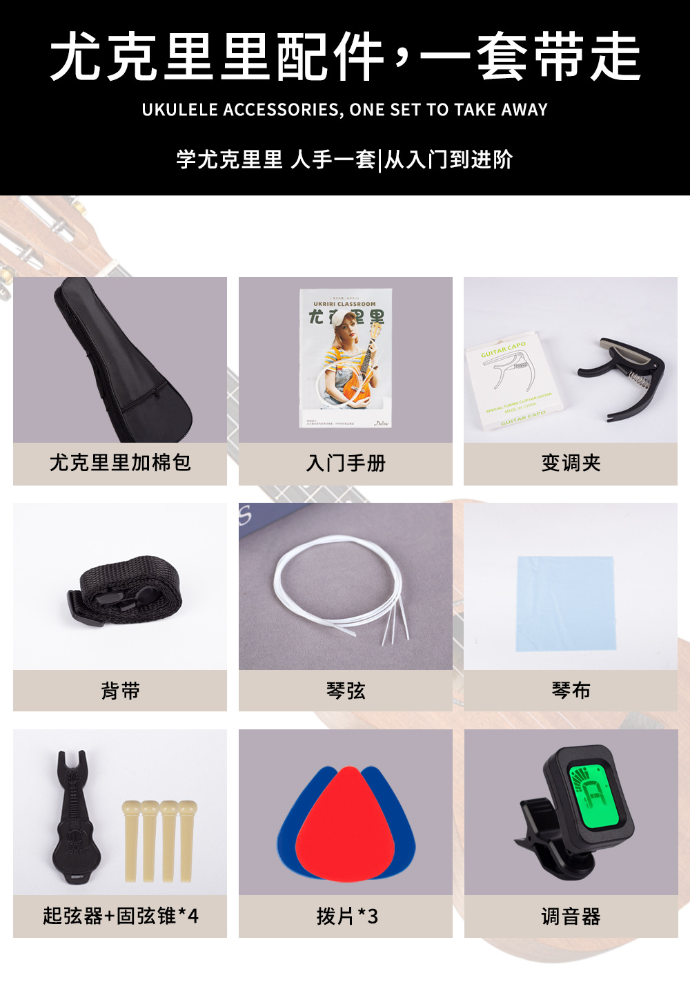 尤克里里配件全套乐器套装调音器变调夹琴弦尤克里里琴包套餐礼包