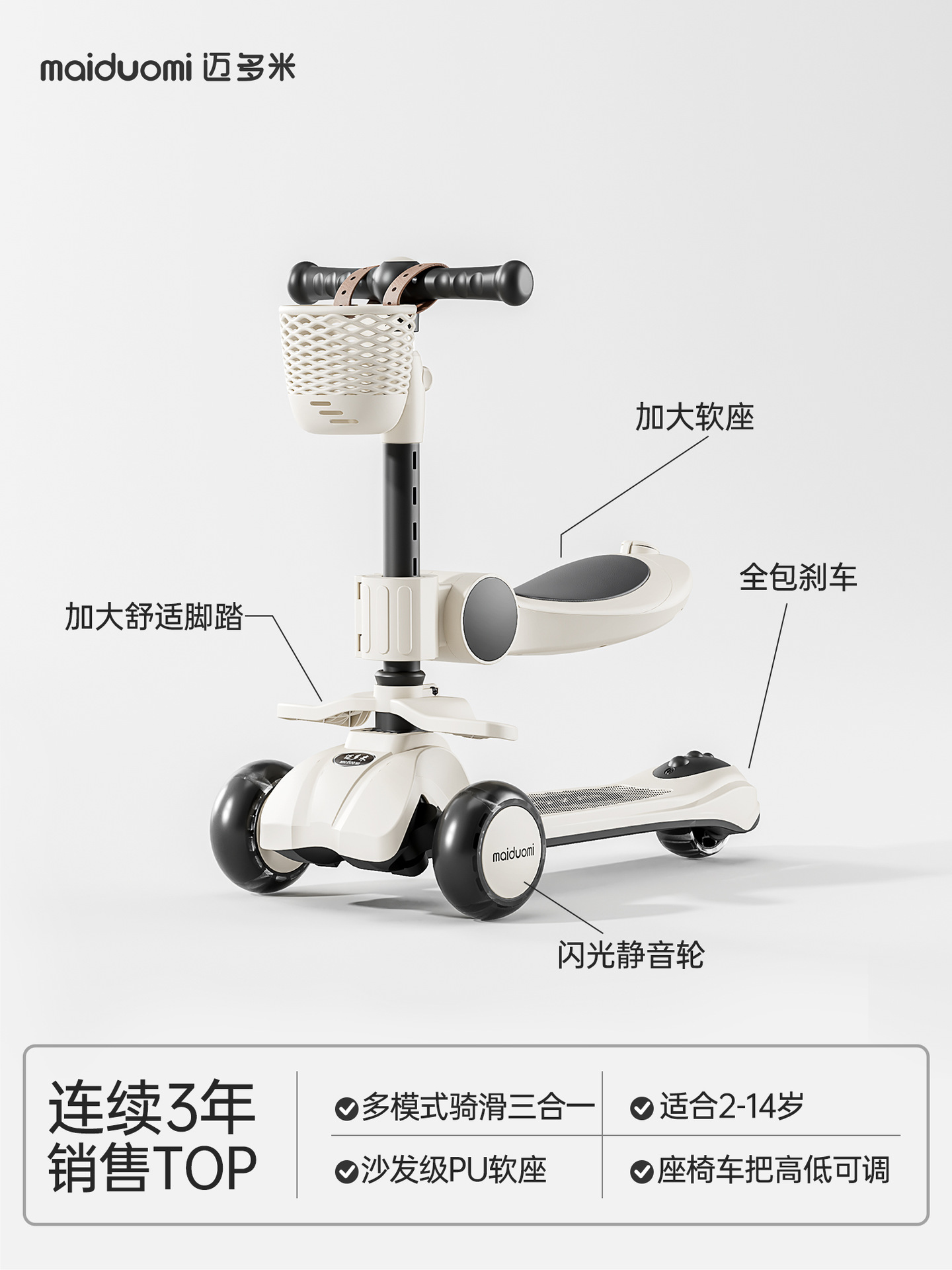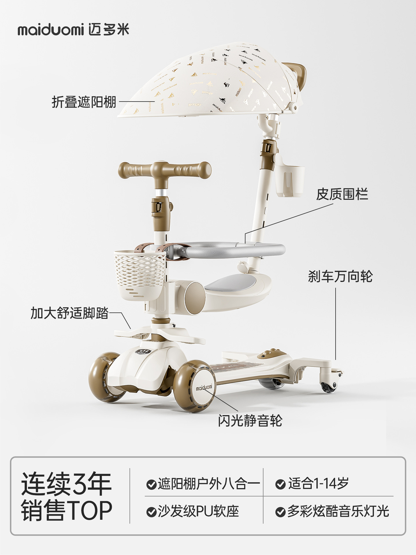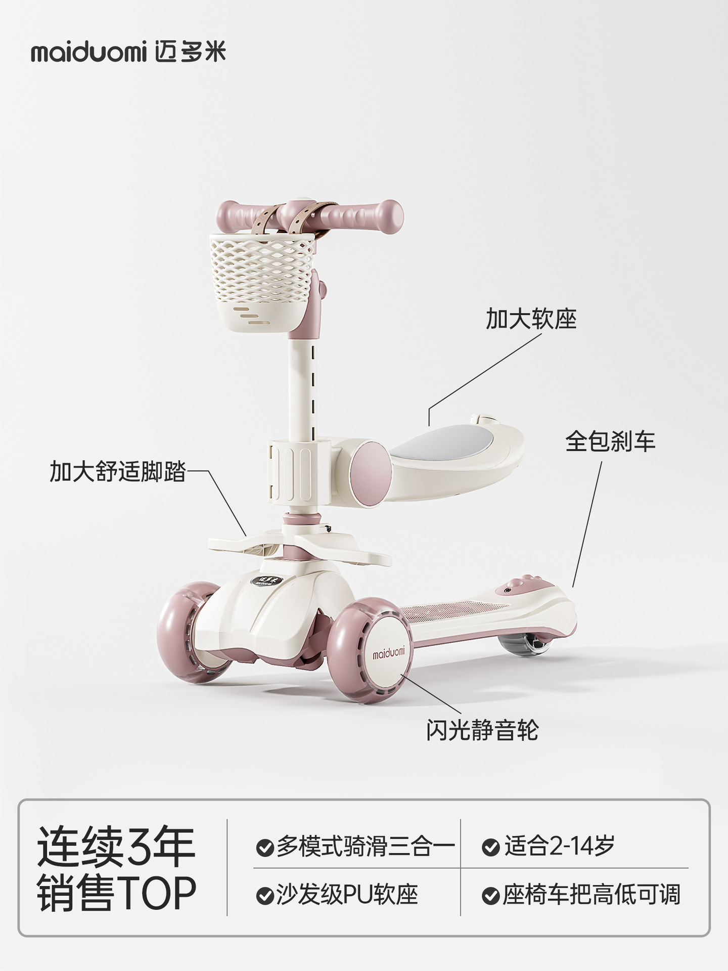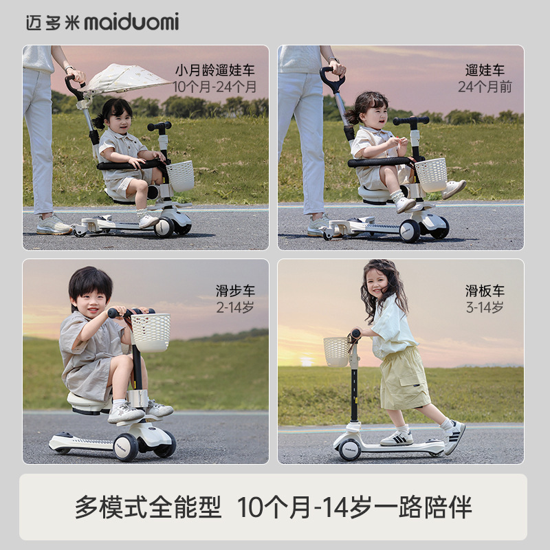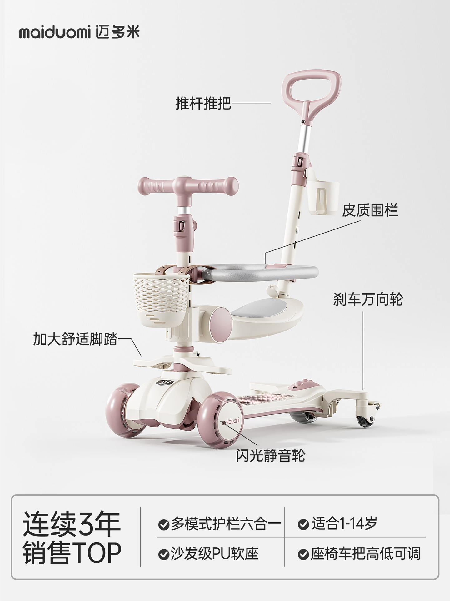 迈多米儿童滑板车1一3一6岁三合一小孩滑滑车可骑一件折叠防侧翻