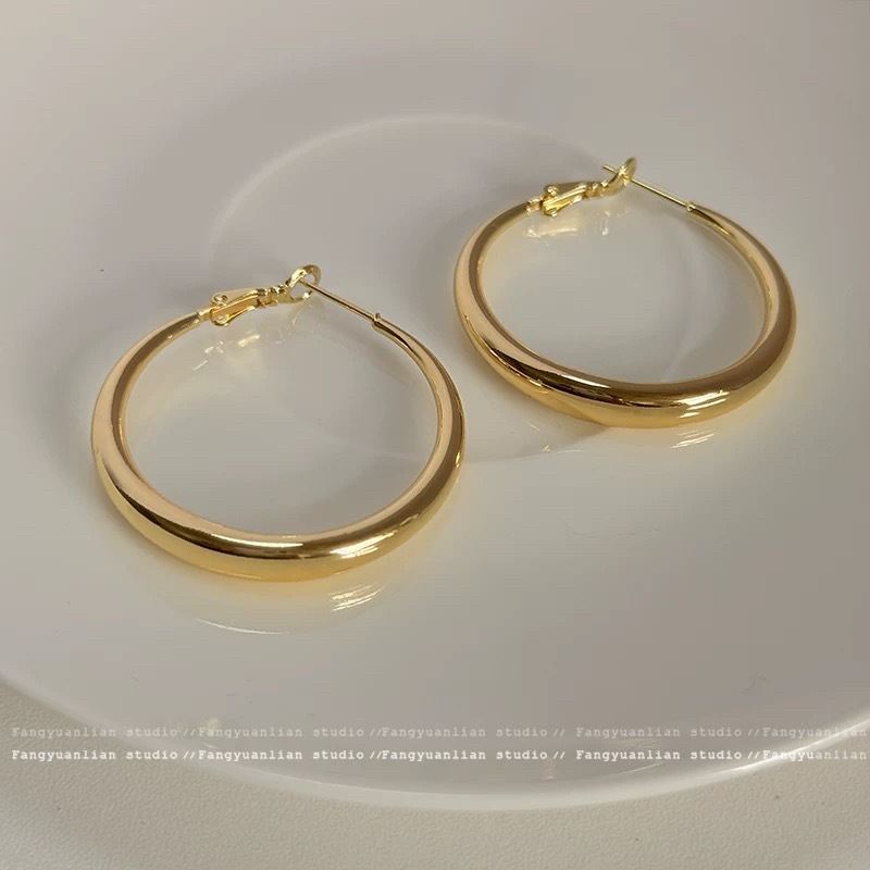 甜酷风辣妹素圈耳圈耳环2025年新款简约圆脸耳环个性网红圆圈耳饰