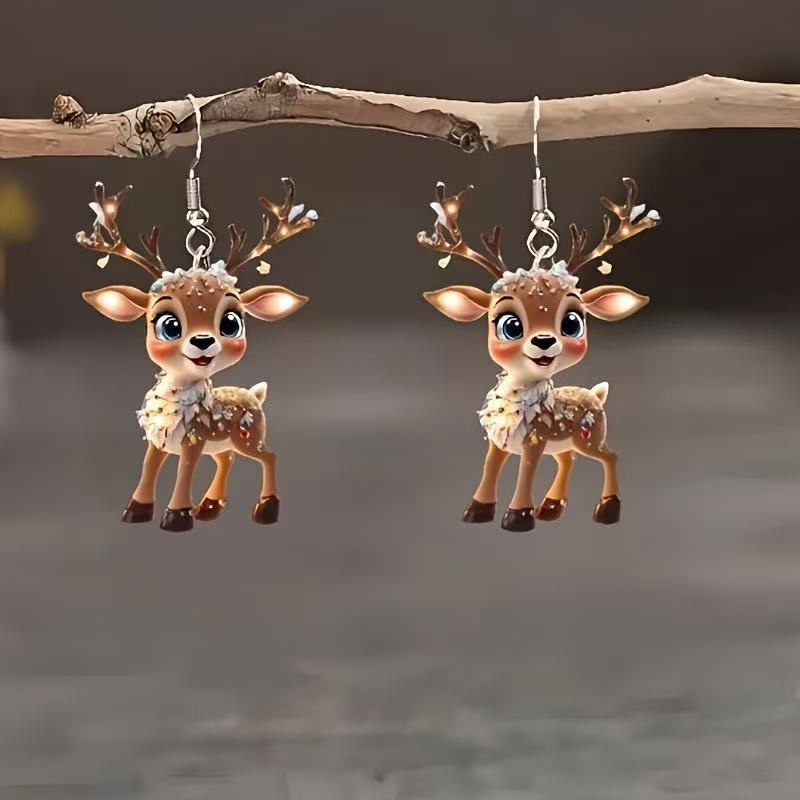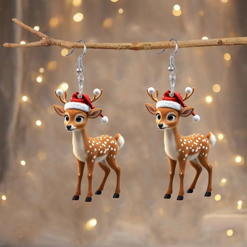 跨境新品迷人圣诞卡通耳环可爱圣诞亚克力小鹿耳环耳饰耳坠装饰品