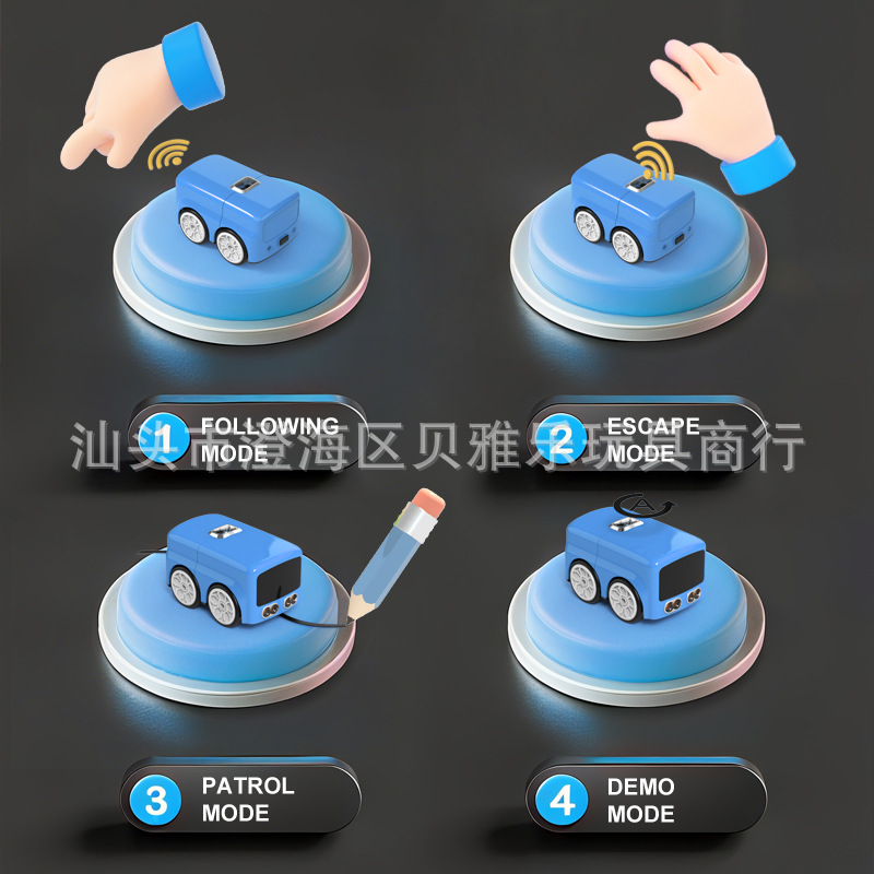 跨境智能遥控感应车迷你桌面手势跟随小巴士感应避障儿童玩具汽车