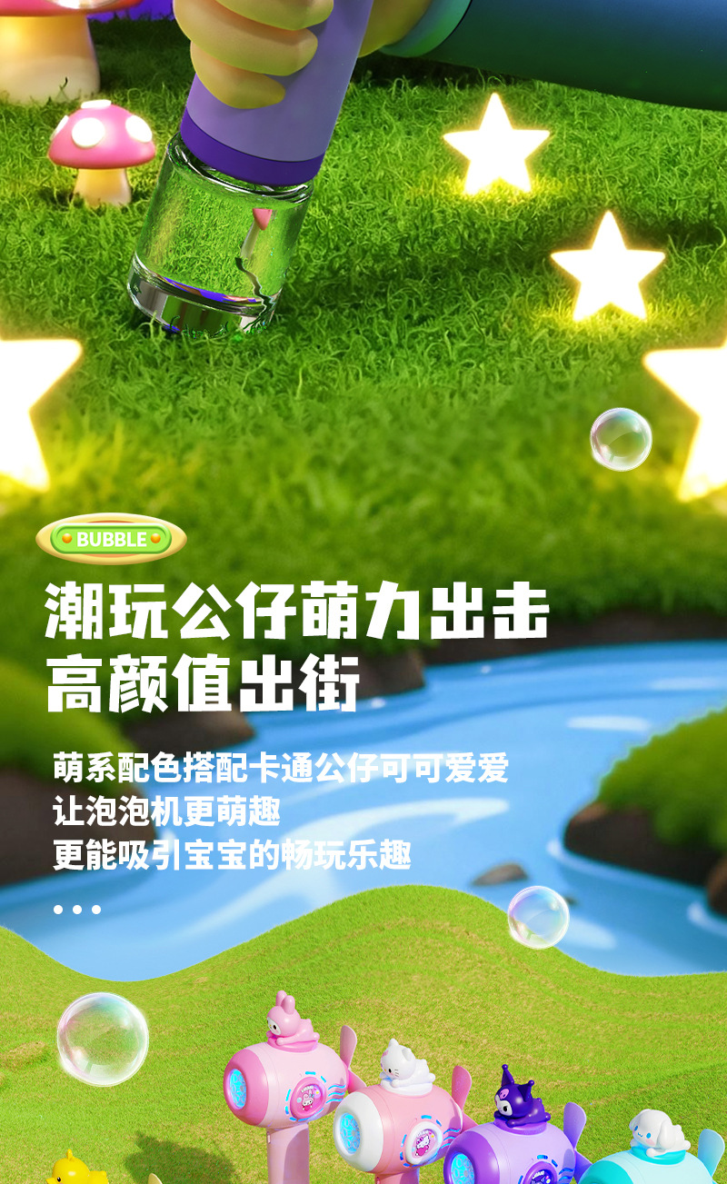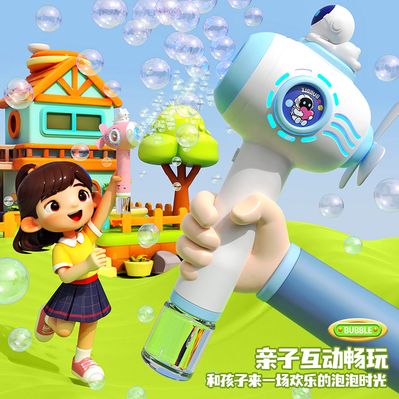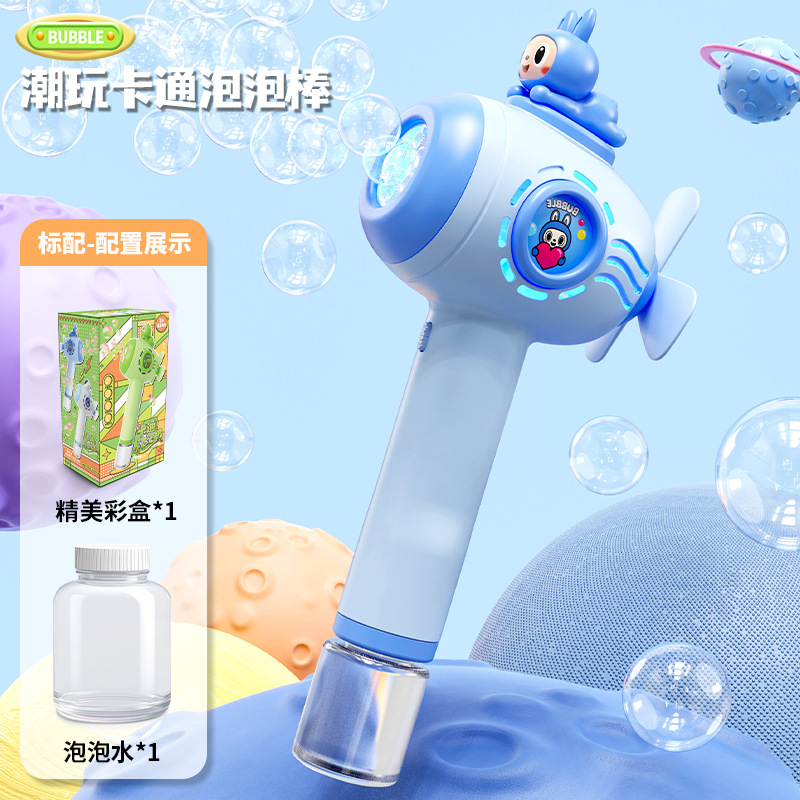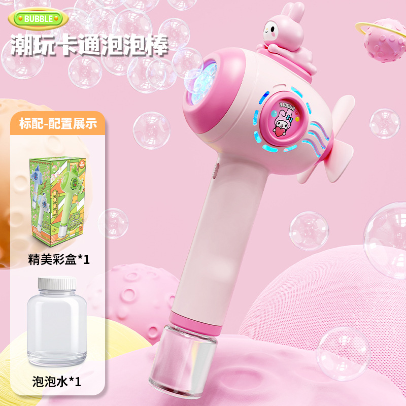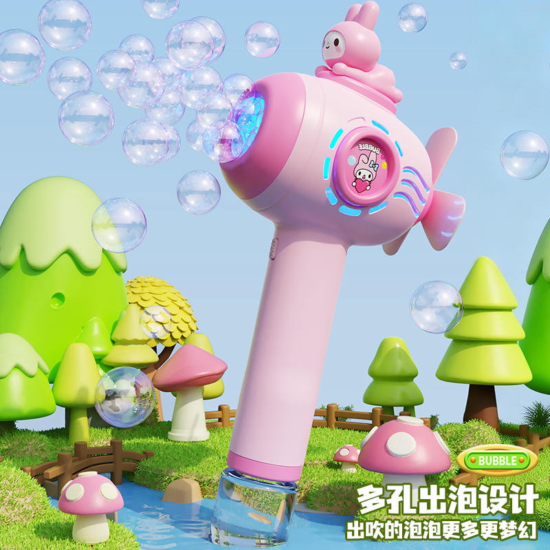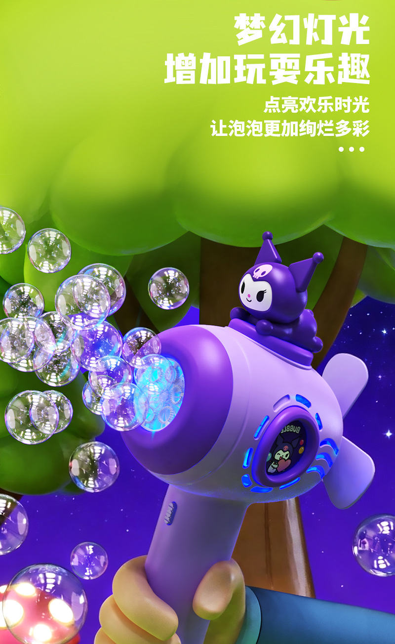 跨境卡通儿童库洛米电动泡泡棒多孔出泡全自动手持灯光泡泡机玩具