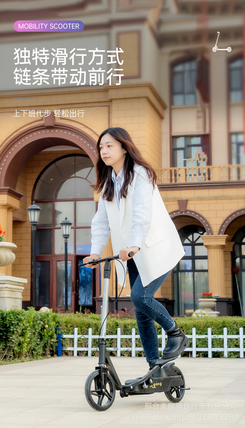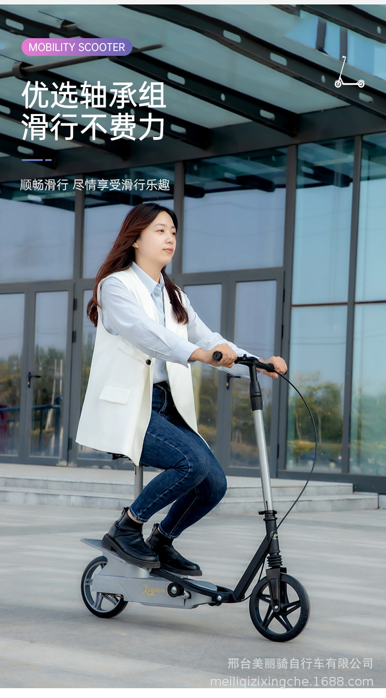 成人踏板车代步滑板车双翼脚踏车折叠两轮自行车校园上班脚踩踏板