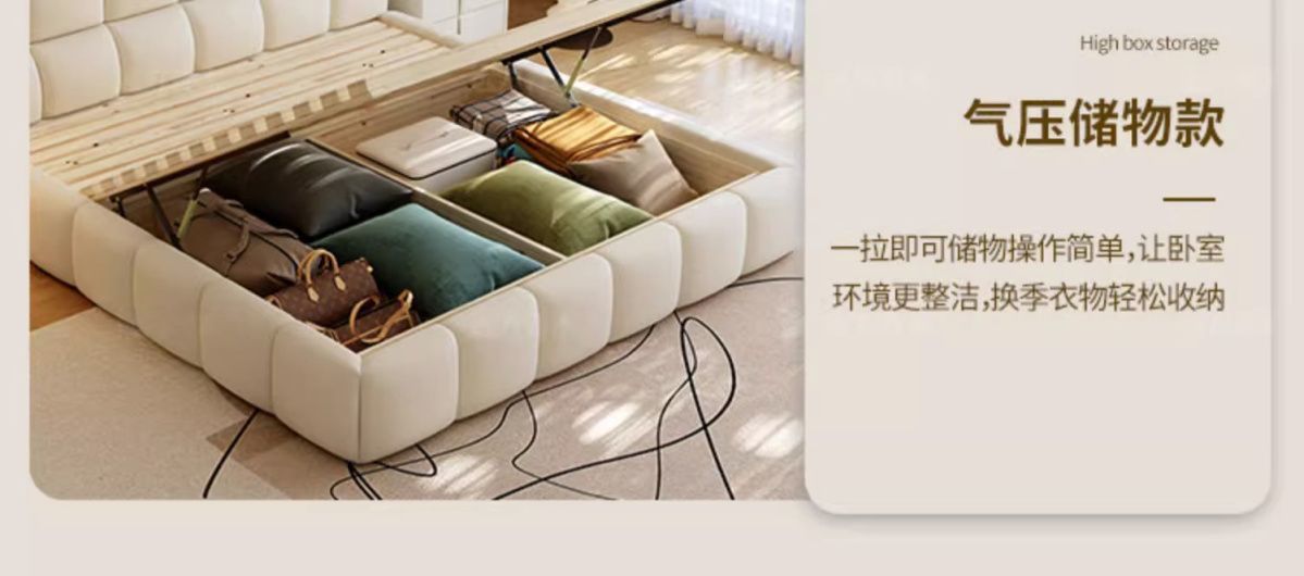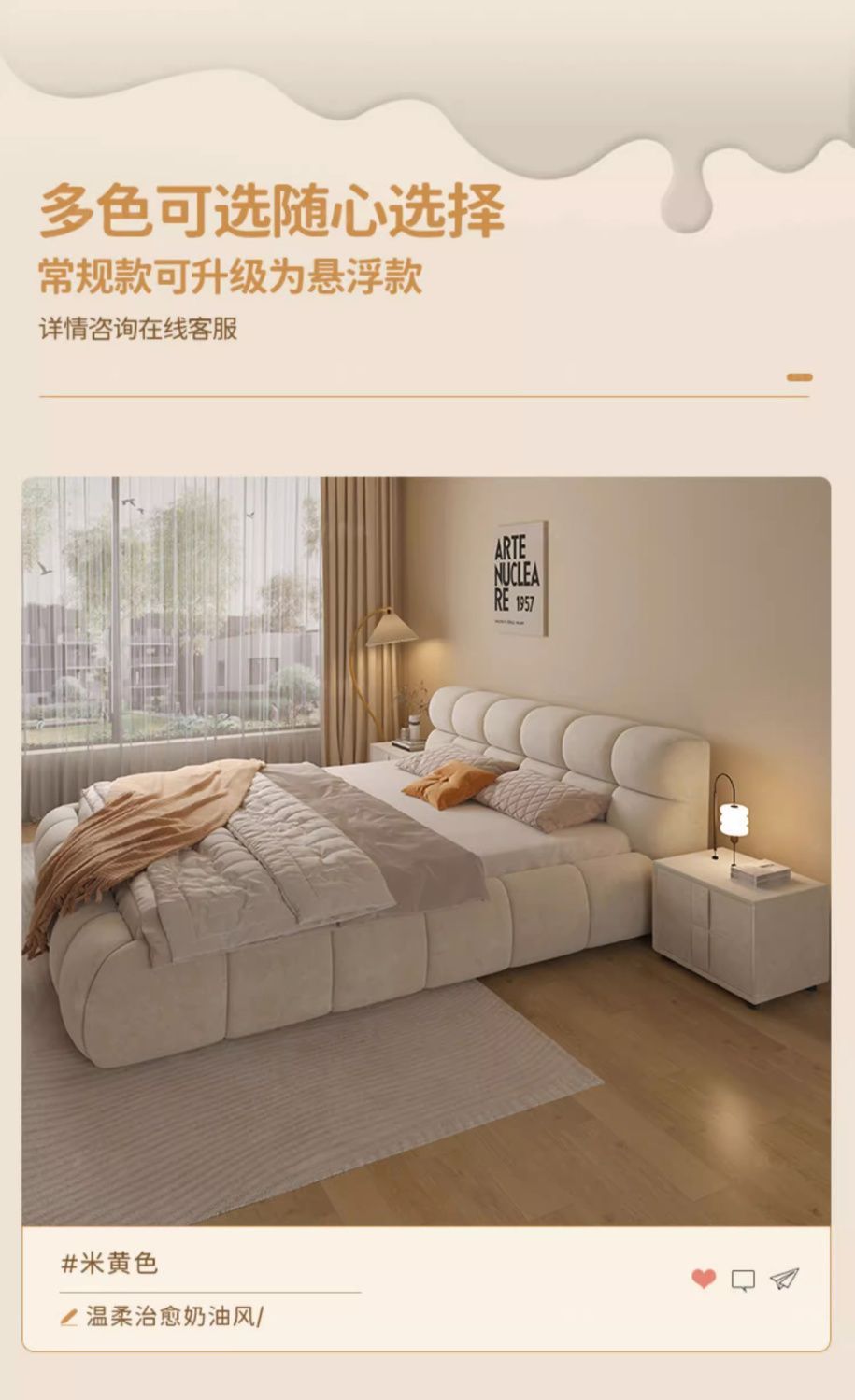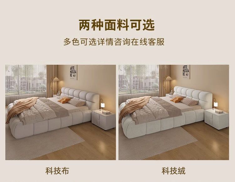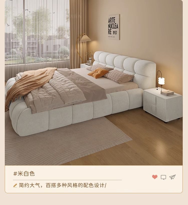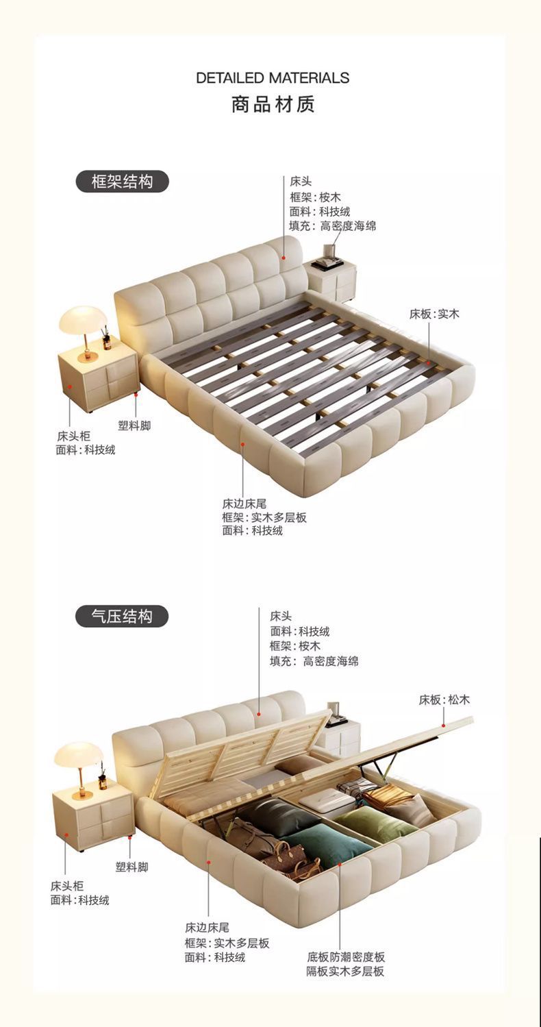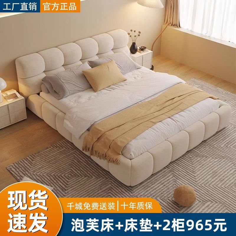 简约奶油泡芙床1.8米主卧双人床1.5米小户型家用储物网红云朵婚床