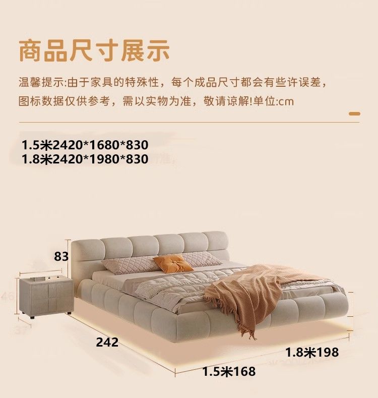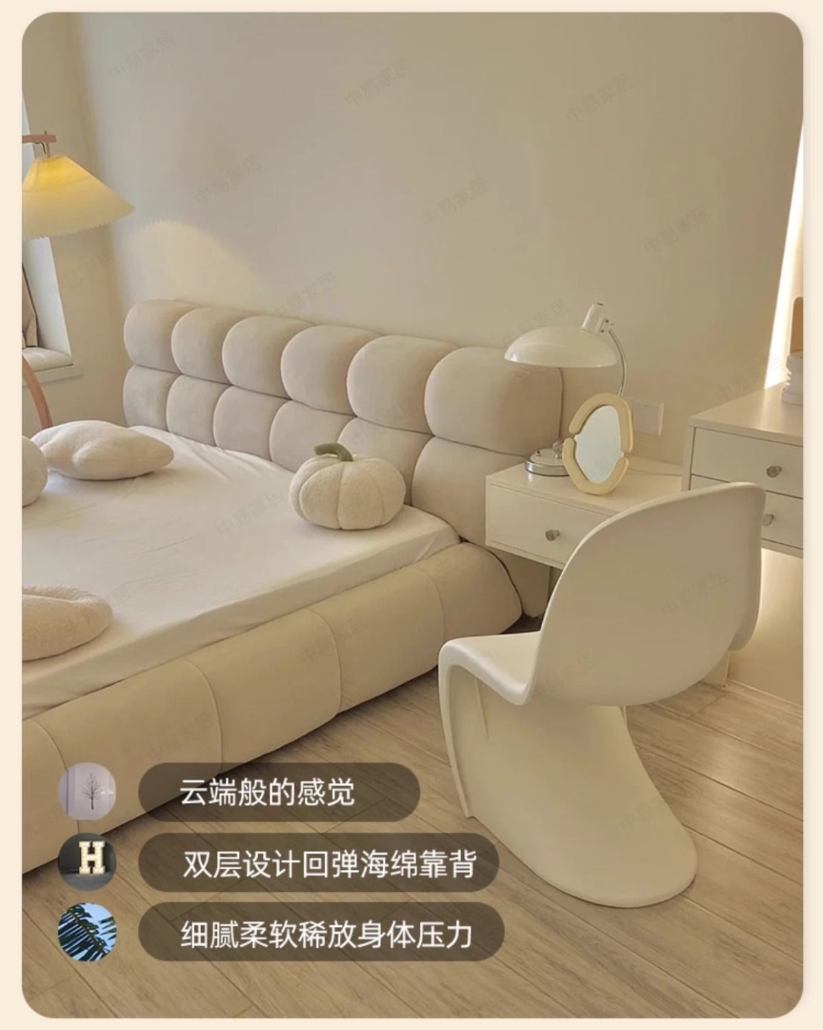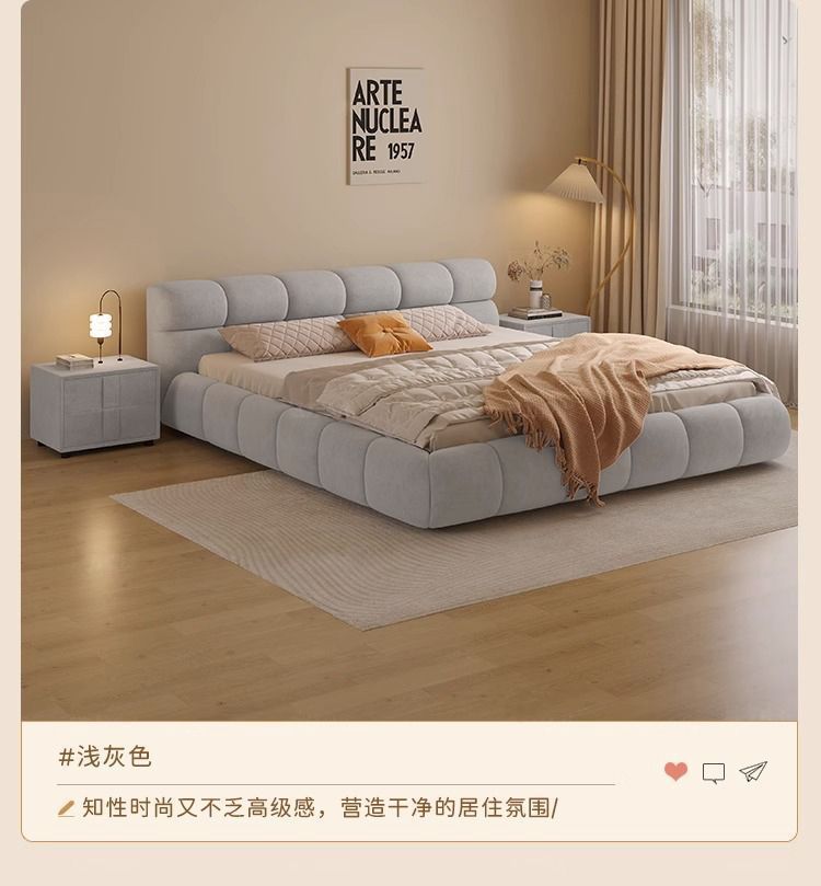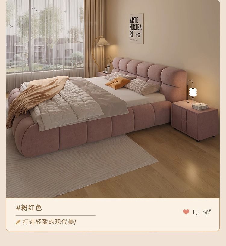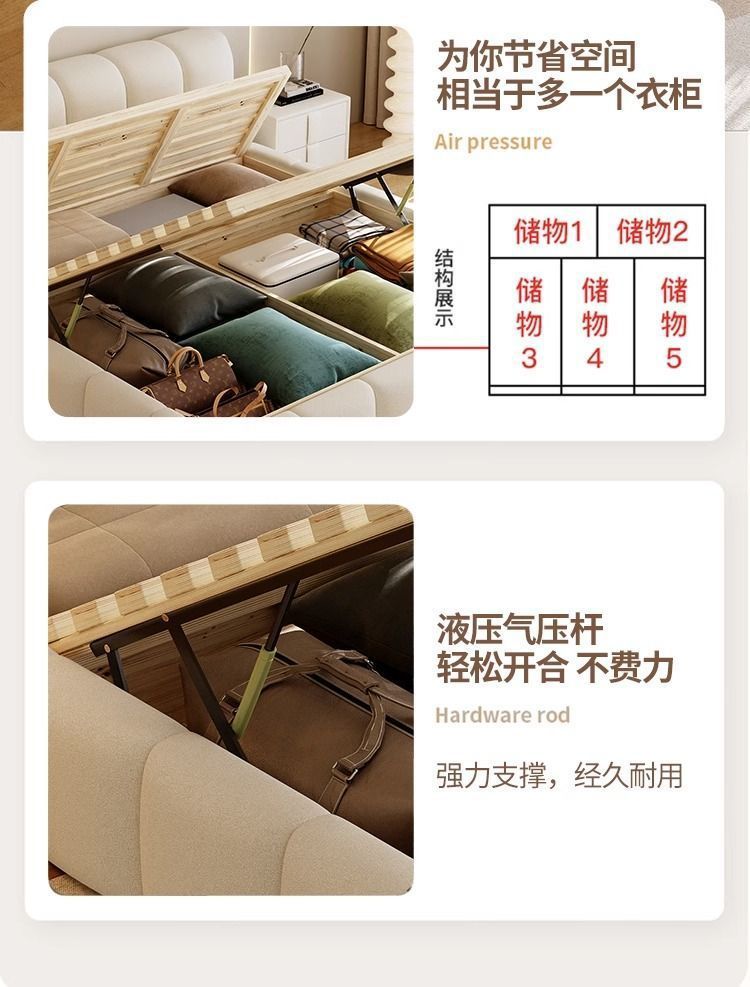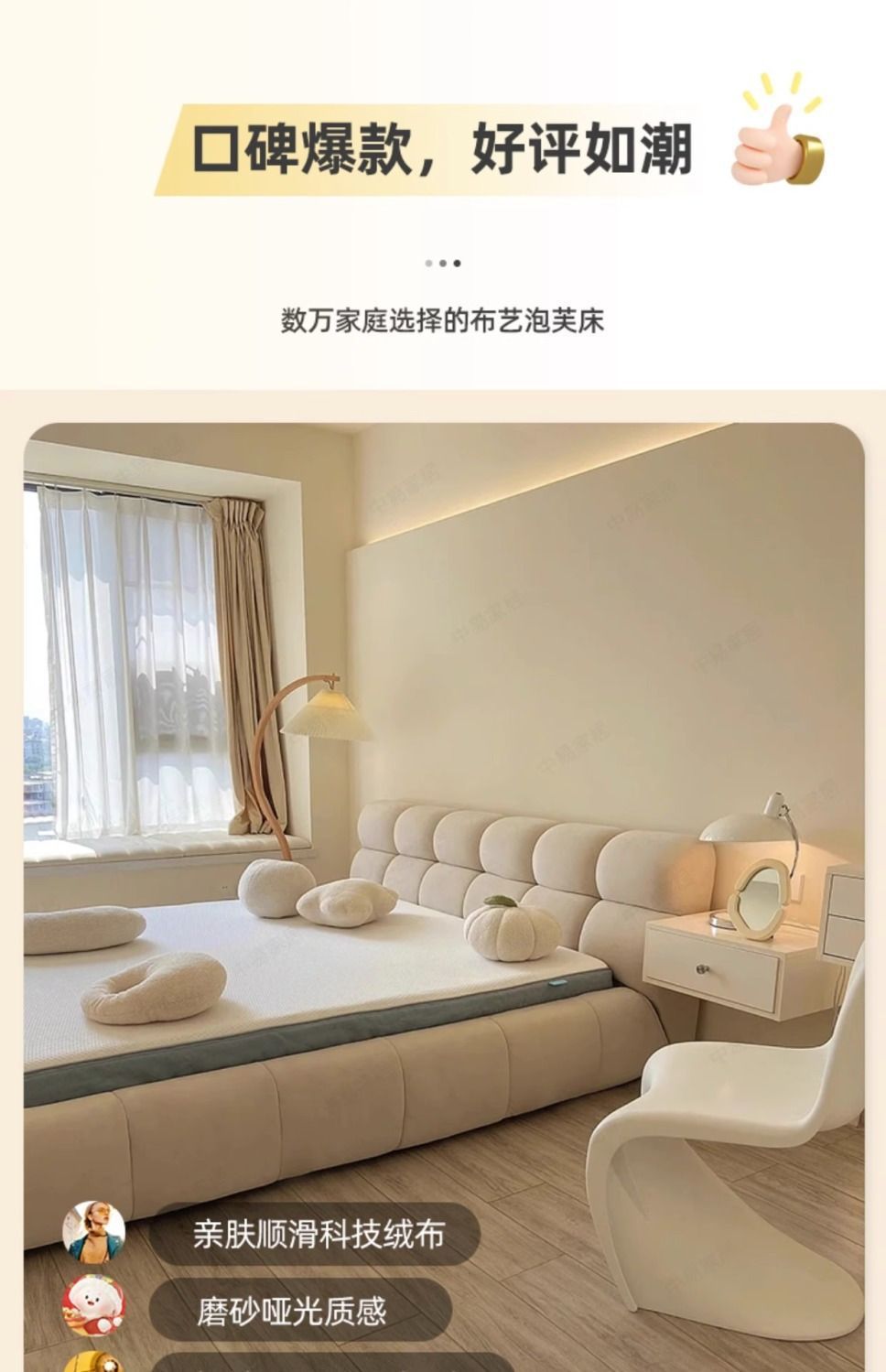 简约奶油泡芙床1.8米主卧双人床1.5米小户型家用储物网红云朵婚床