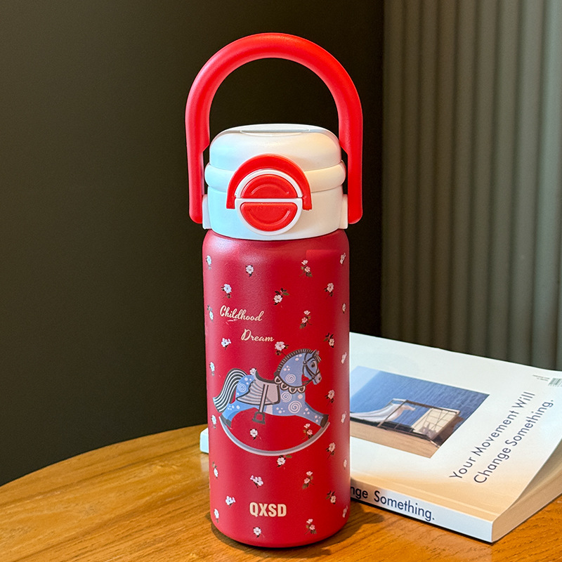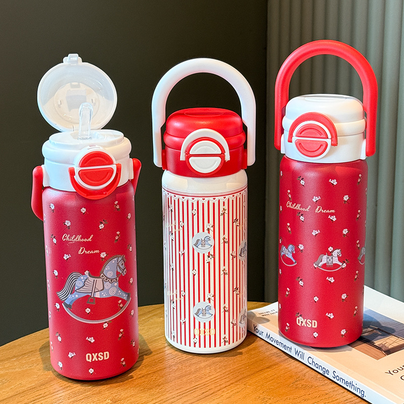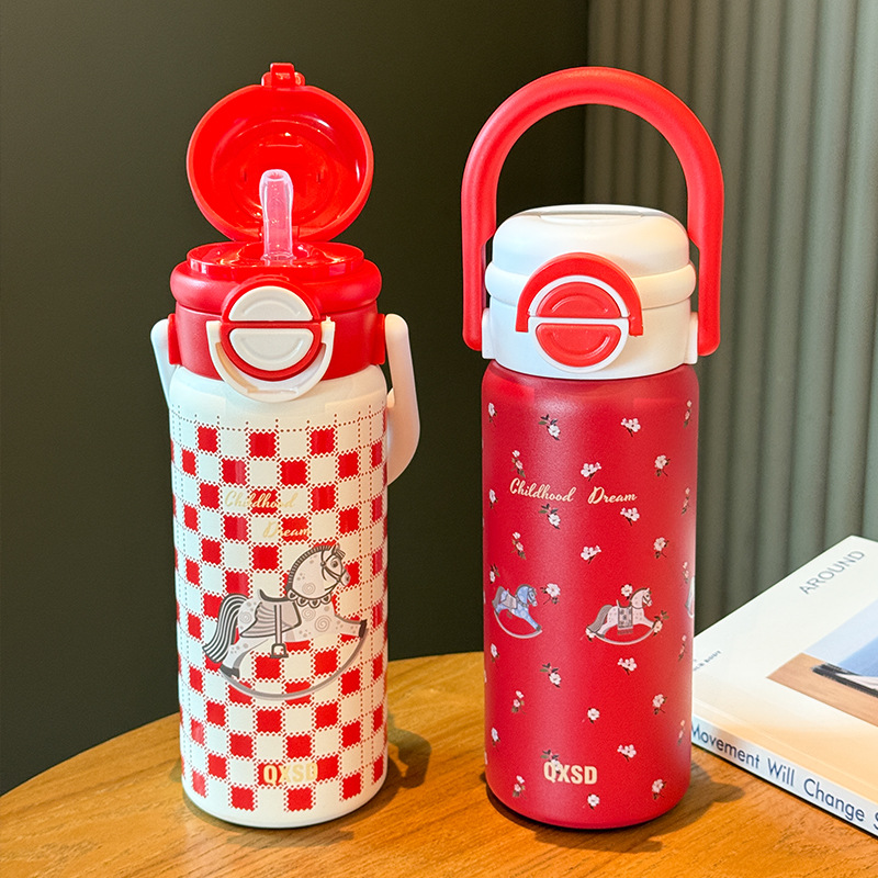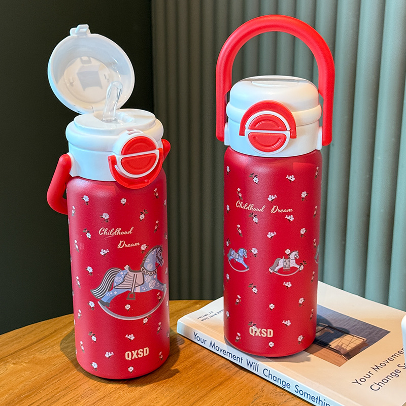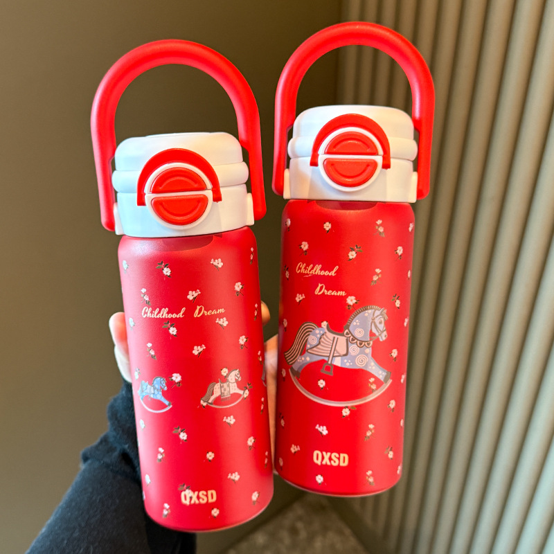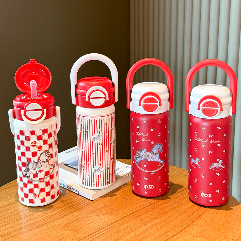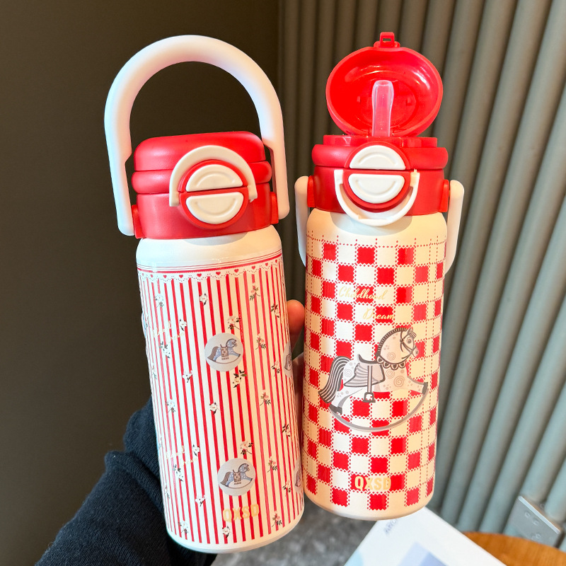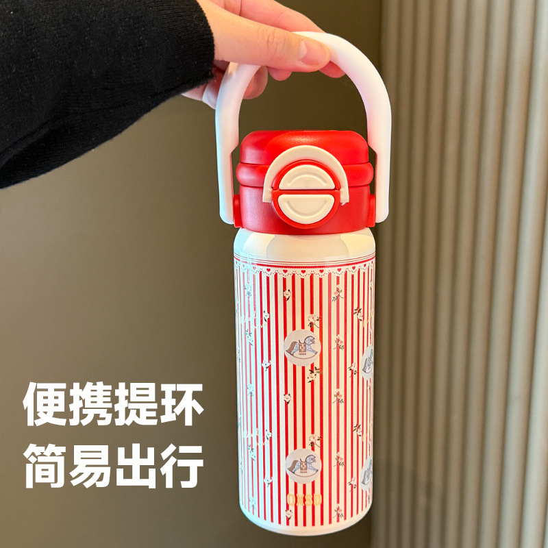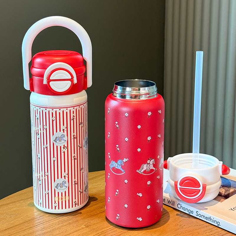 旋转木马新年款保温杯女生吸管水杯女新款2025高颜值大容量不锈钢