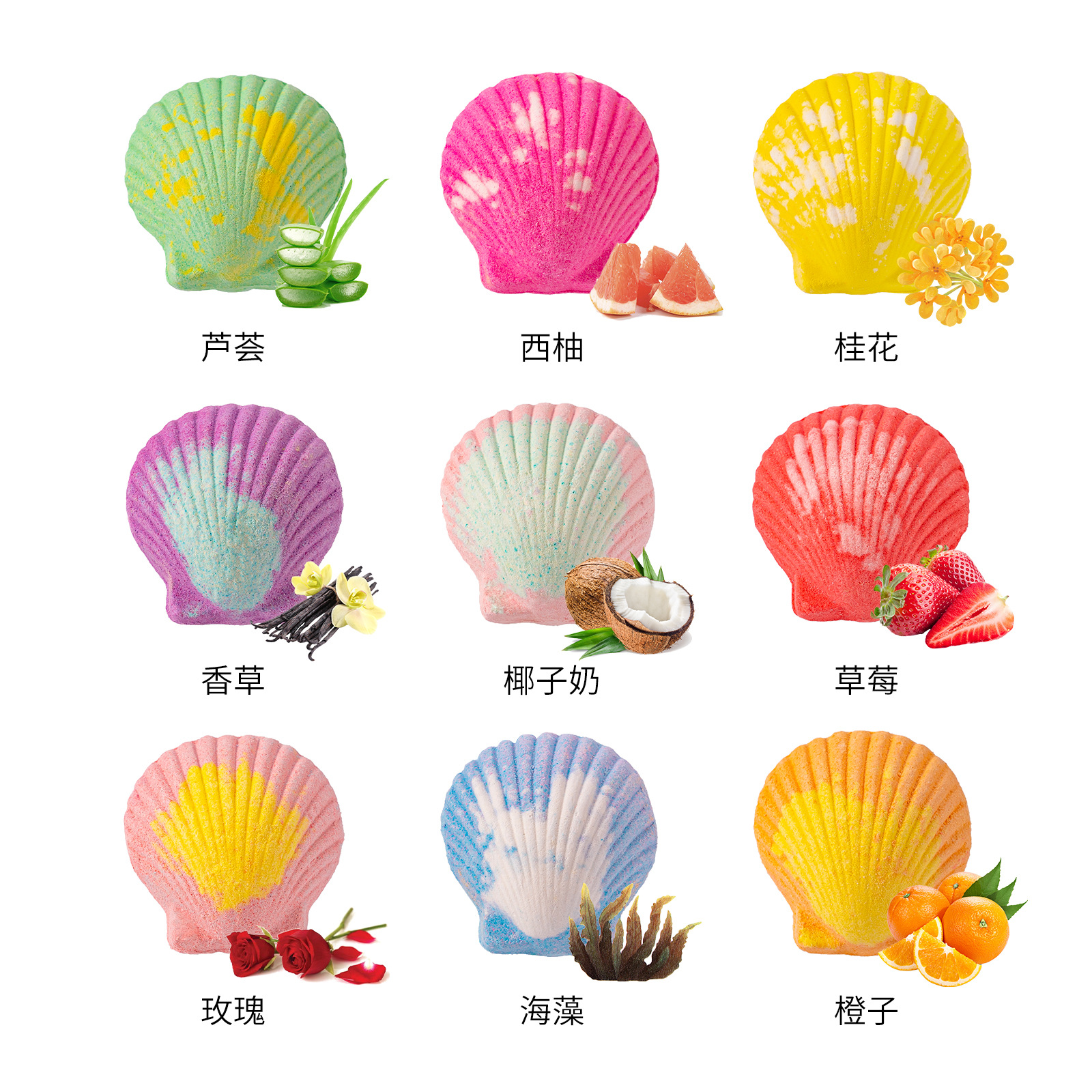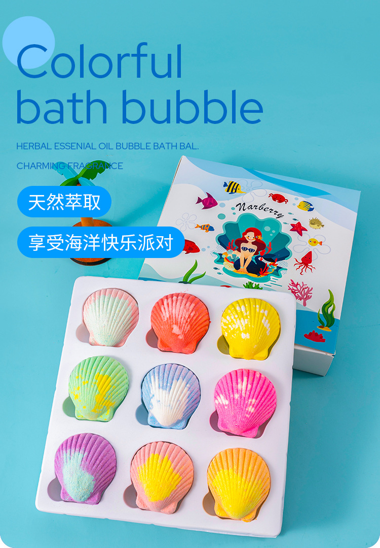 跨境精油泡澡爆炸盐浴盐球海盐沐浴贝壳气泡弹海洋玩具泡澡球批发