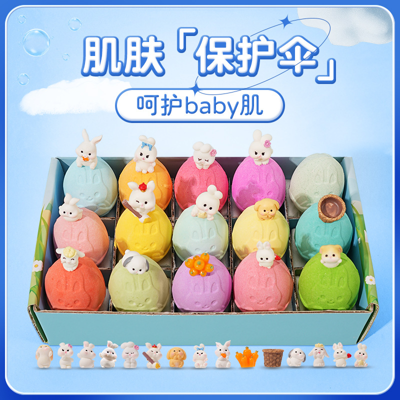 跨境现货爆炸精油沐浴盐球玩具兔子泡澡球香氛泡泡浴球气泡弹批发