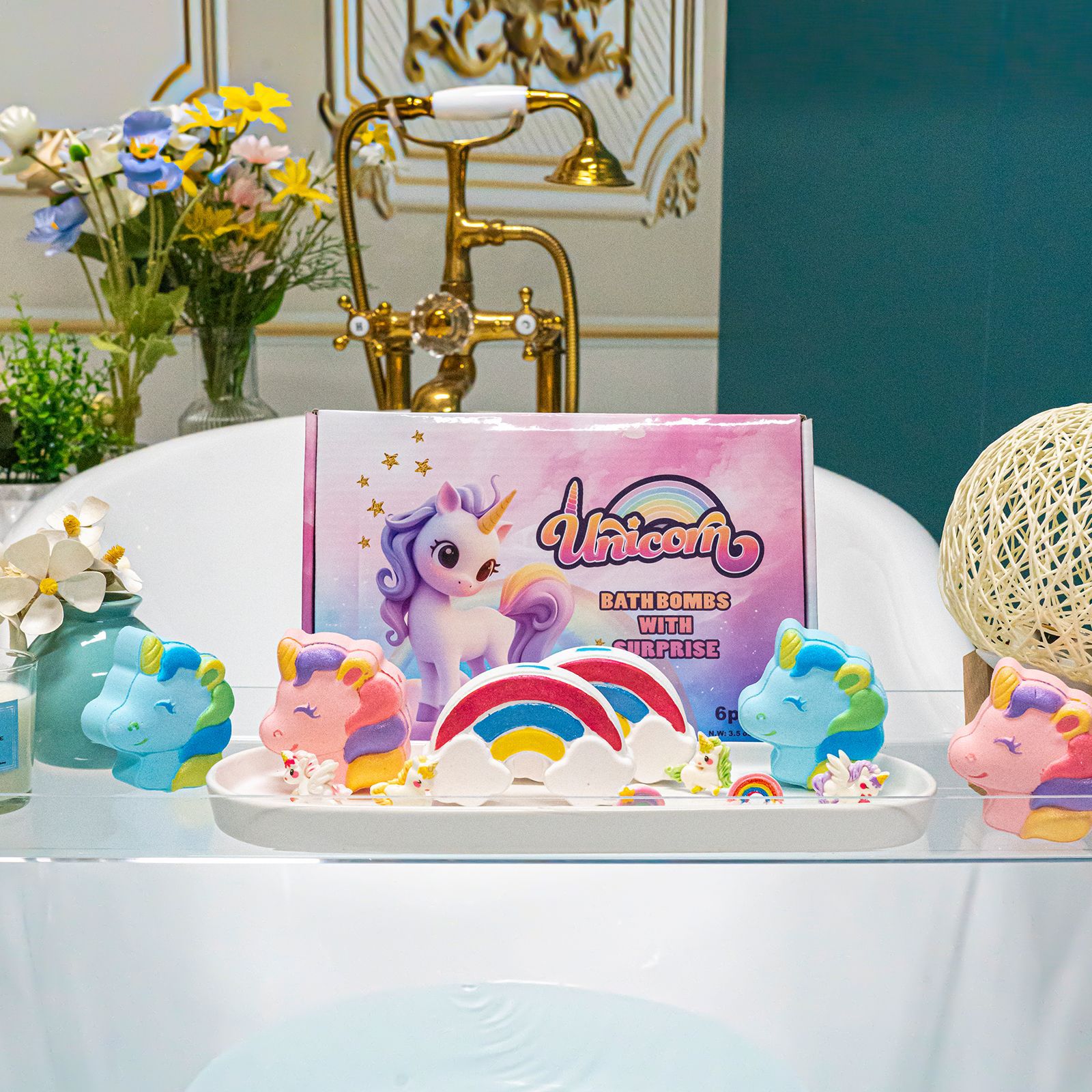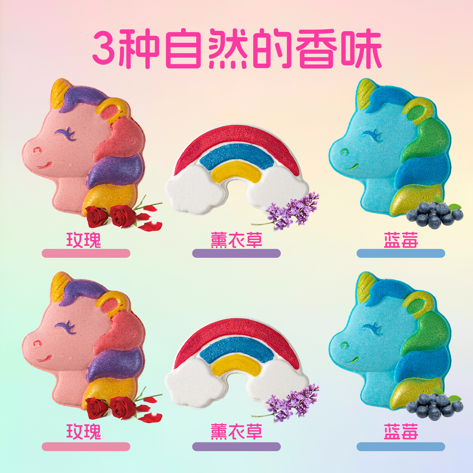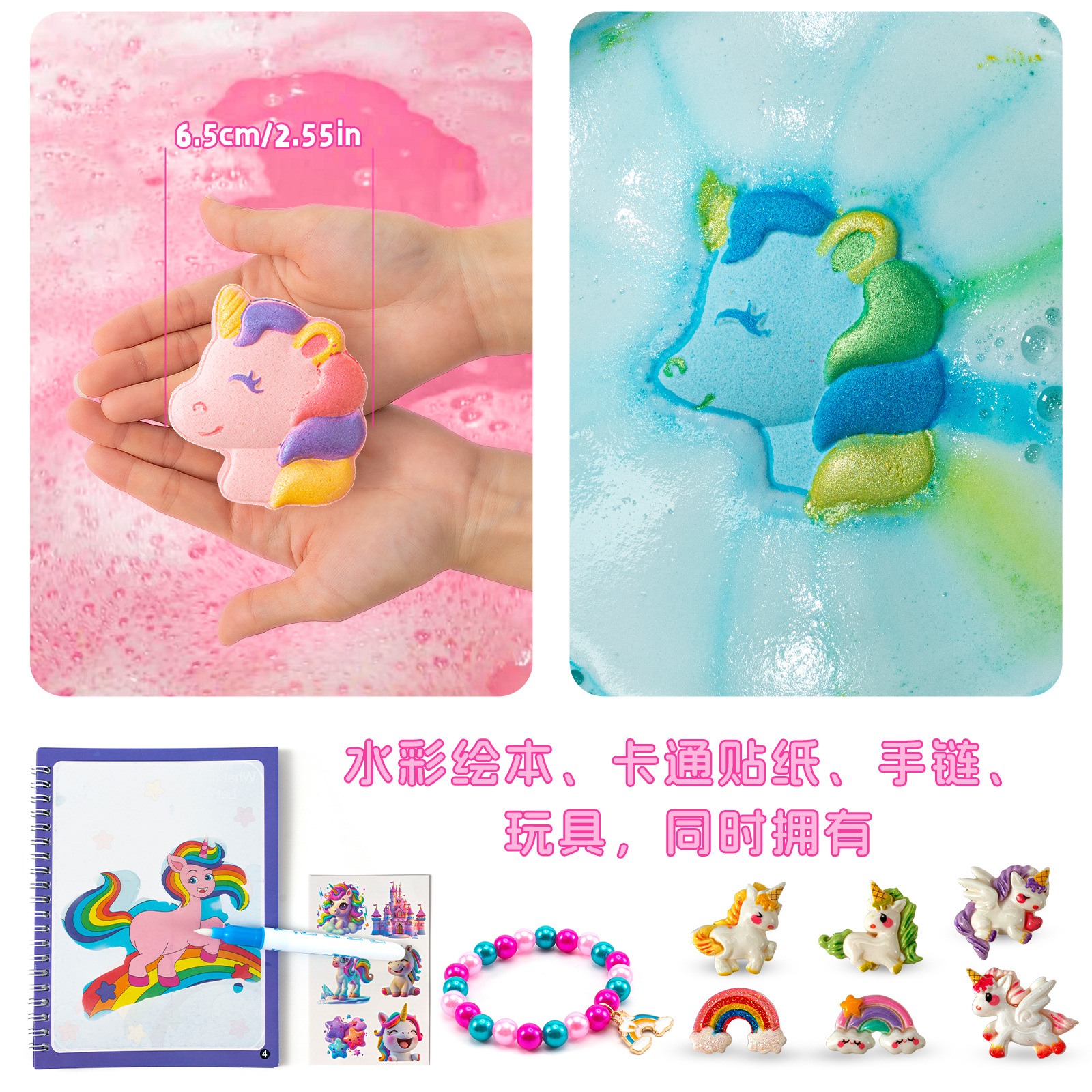 亚马逊爆款彩虹泡澡球精油泡泡浴沐浴球儿童独角兽玩具浴盐球批发