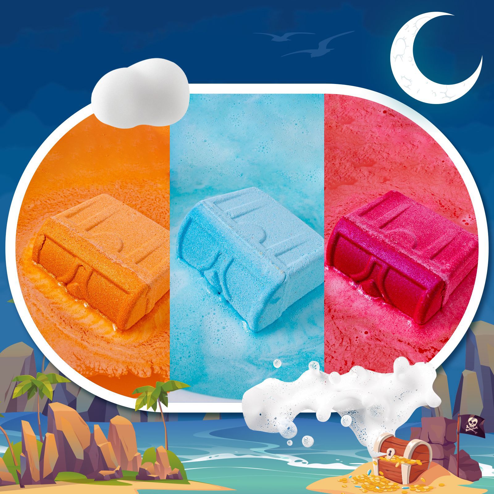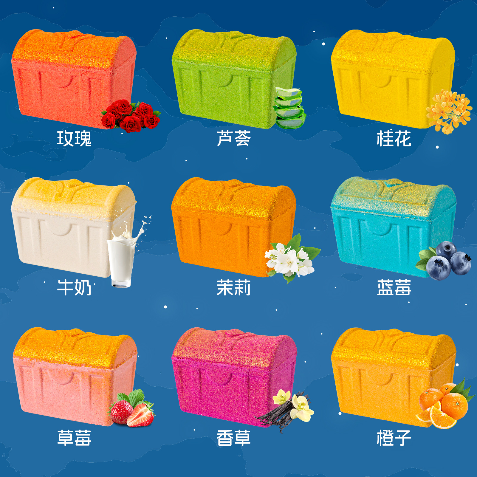 亚马逊鲨鱼宝藏箱套盒泡泡浴球浴盐球气泡弹精油沐浴球泡澡球批发