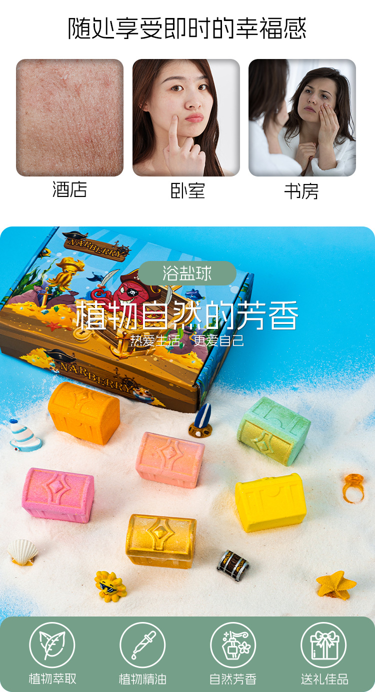 跨境亚马逊宝藏箱套盒浴盐球泡泡浴球精油沐浴球气泡弹泡澡球批发