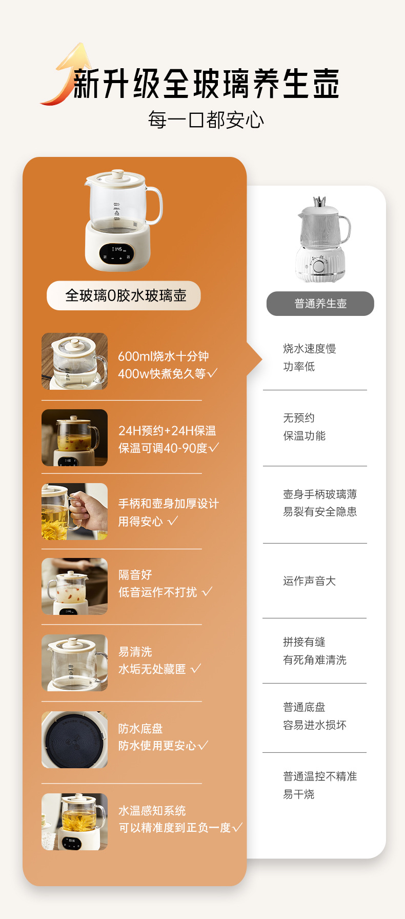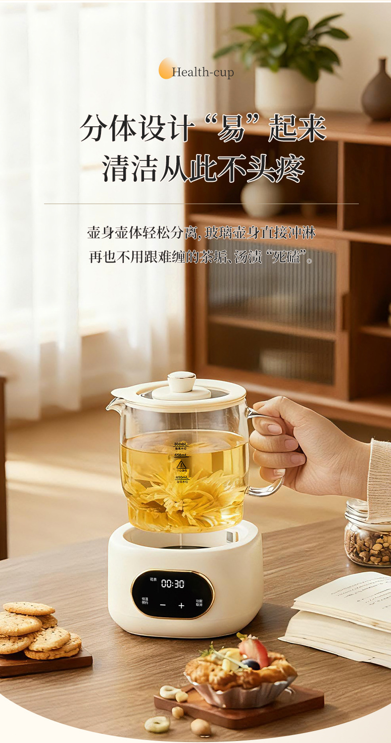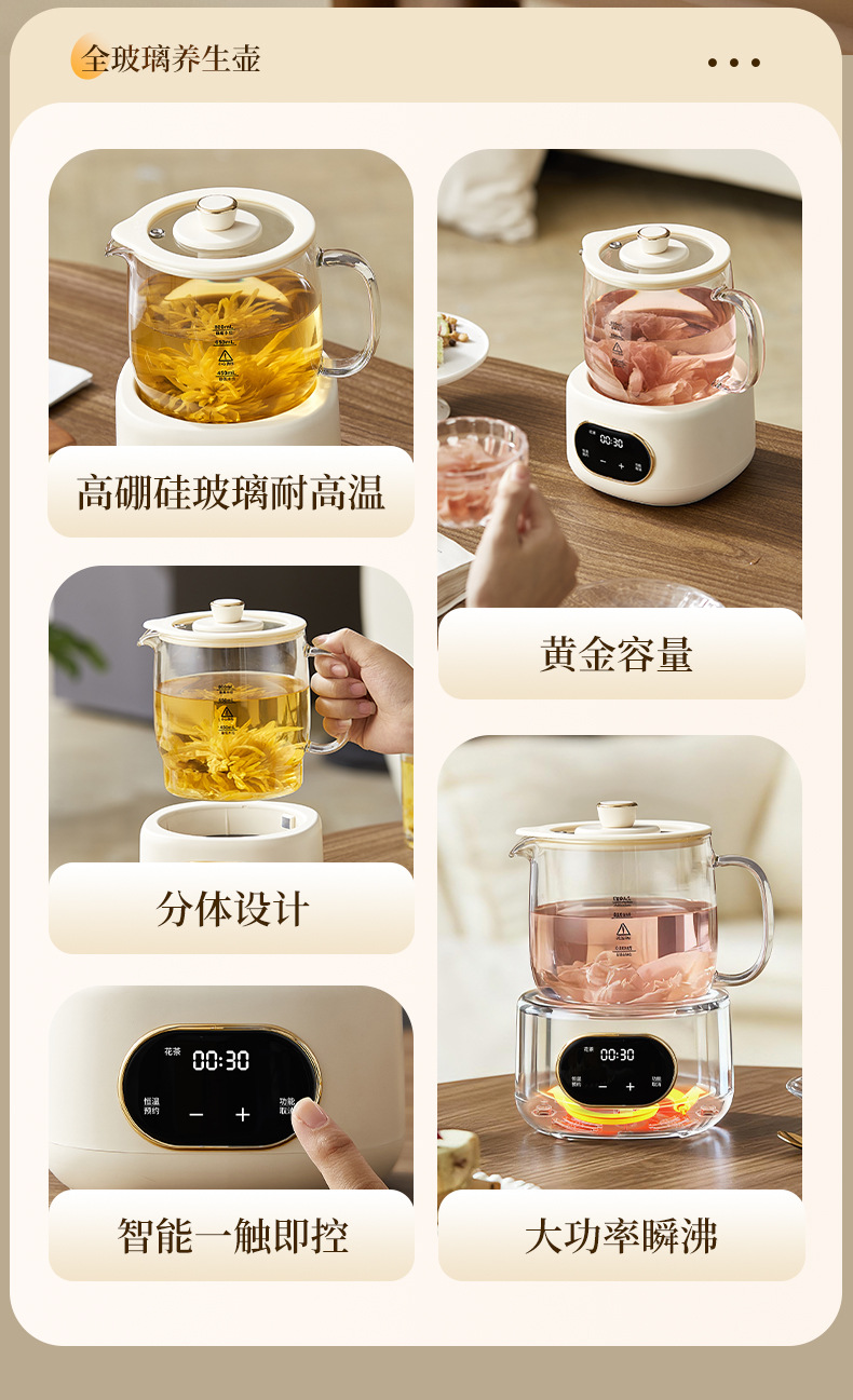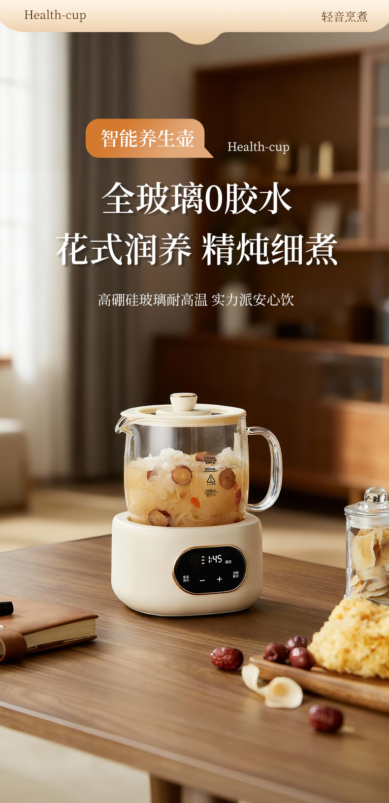 【0胶水】养生壶纯玻璃2025新款炖煮一体全玻璃多功能花茶煮茶壶
