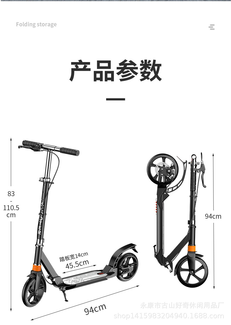 儿童青少年两轮scooter成人滑板车可折叠碟刹双减震代步车踏板车