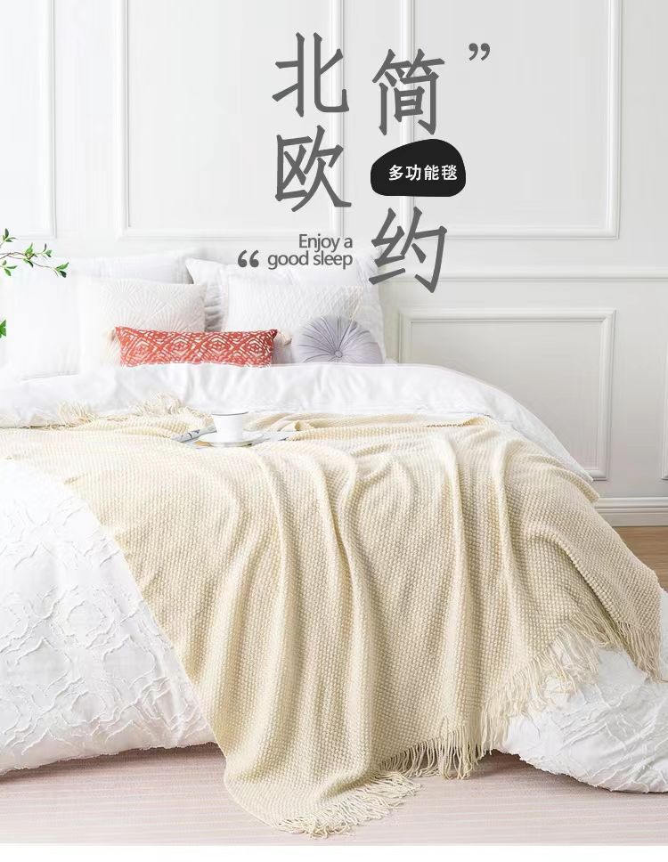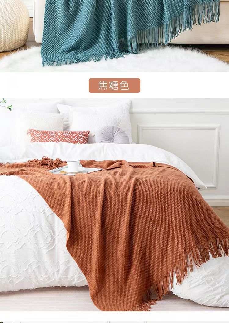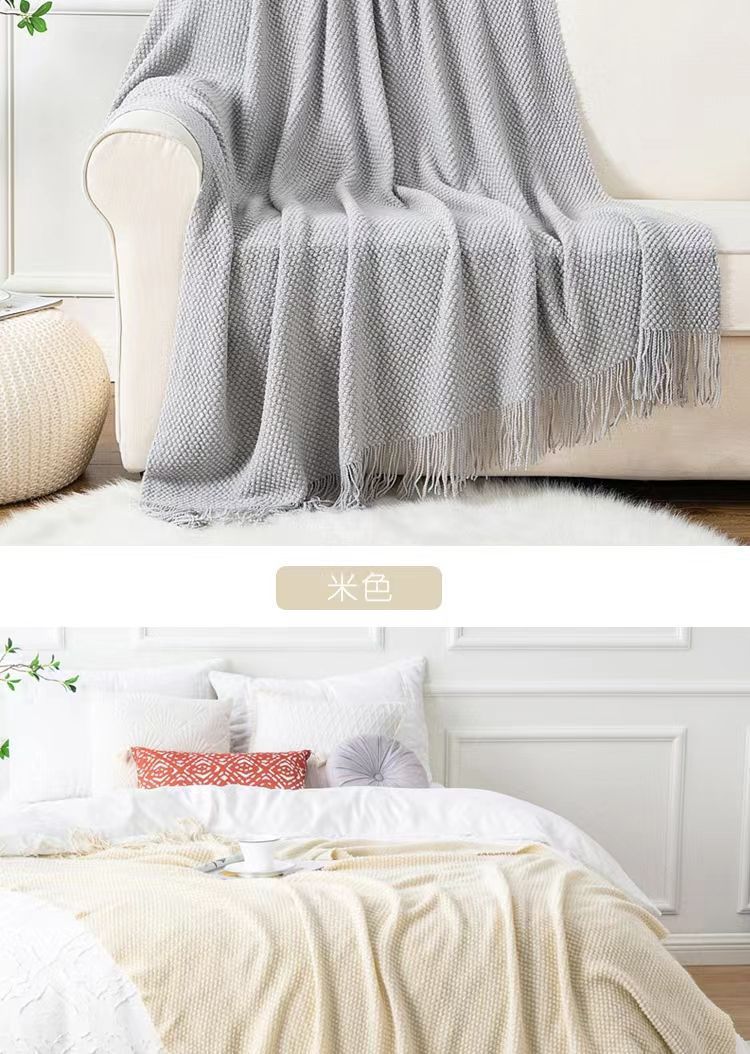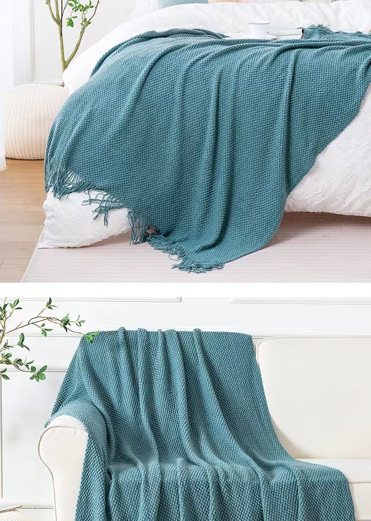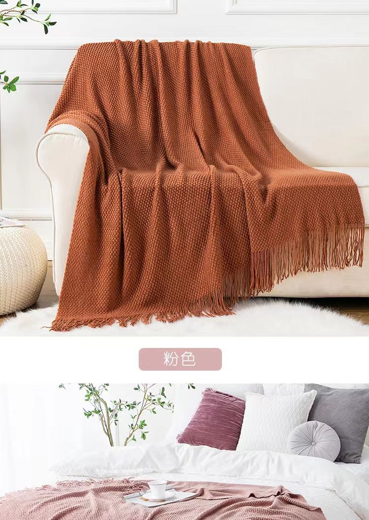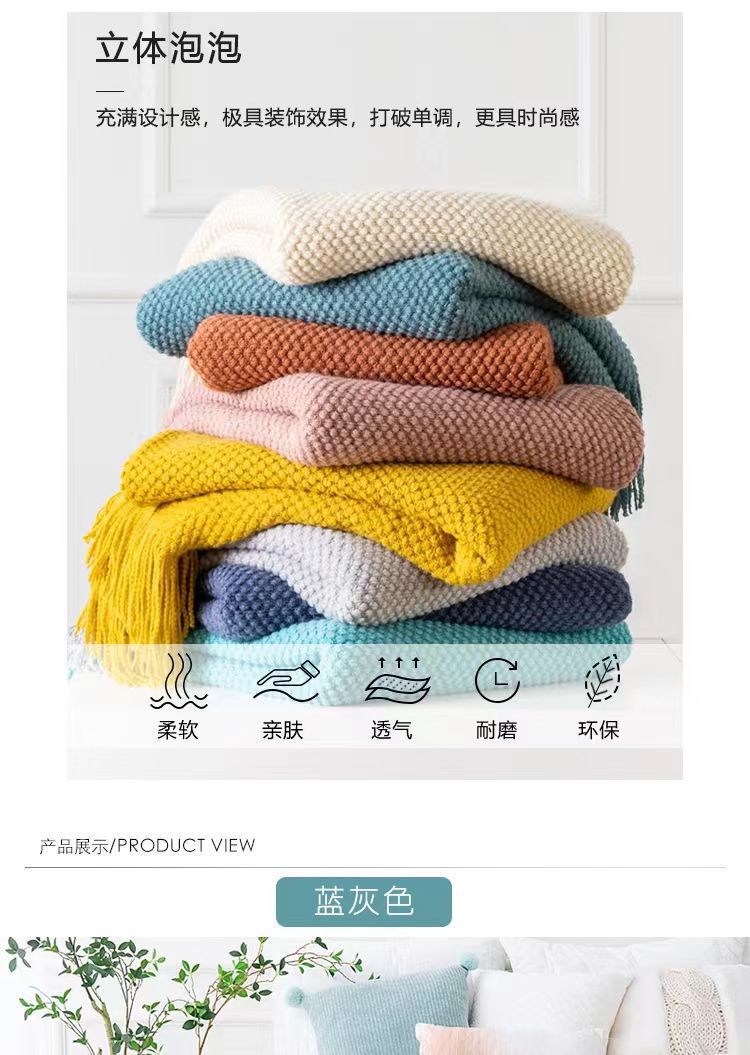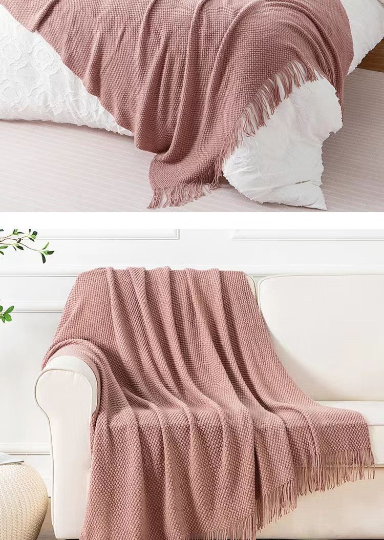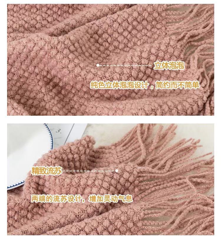 针织纯色豆豆毯冬季旅行办公室沙发盖毯子午睡披肩空调午休航空毯