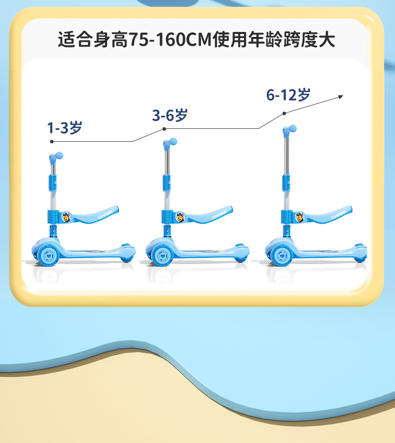 汪汪队滑板车儿童1-3岁6一12岁二合一可坐可骑宝宝溜溜车2025新款