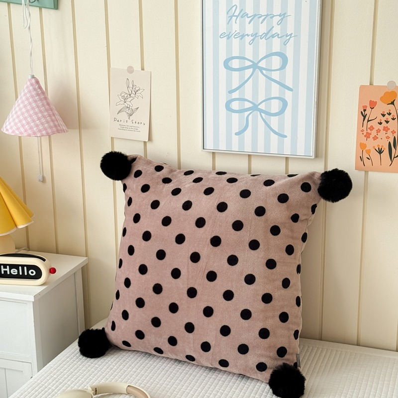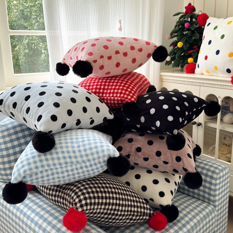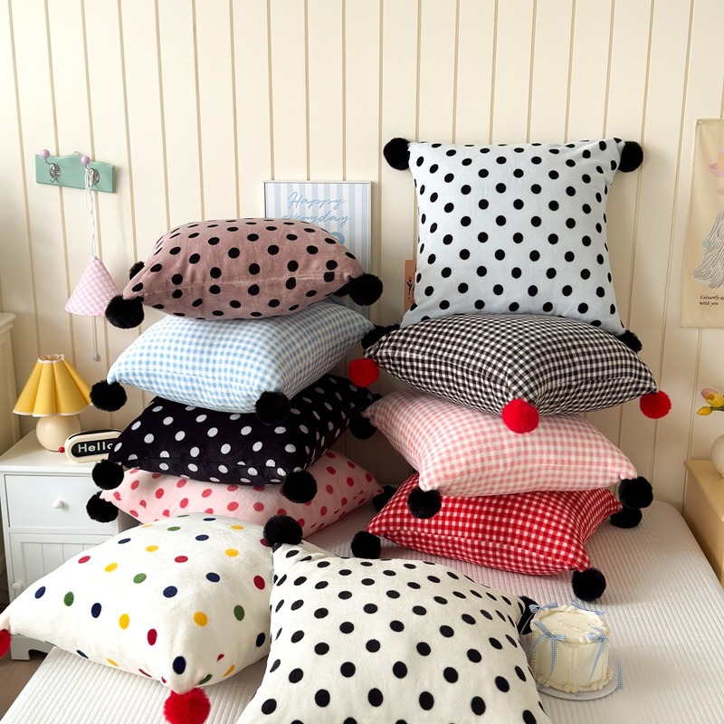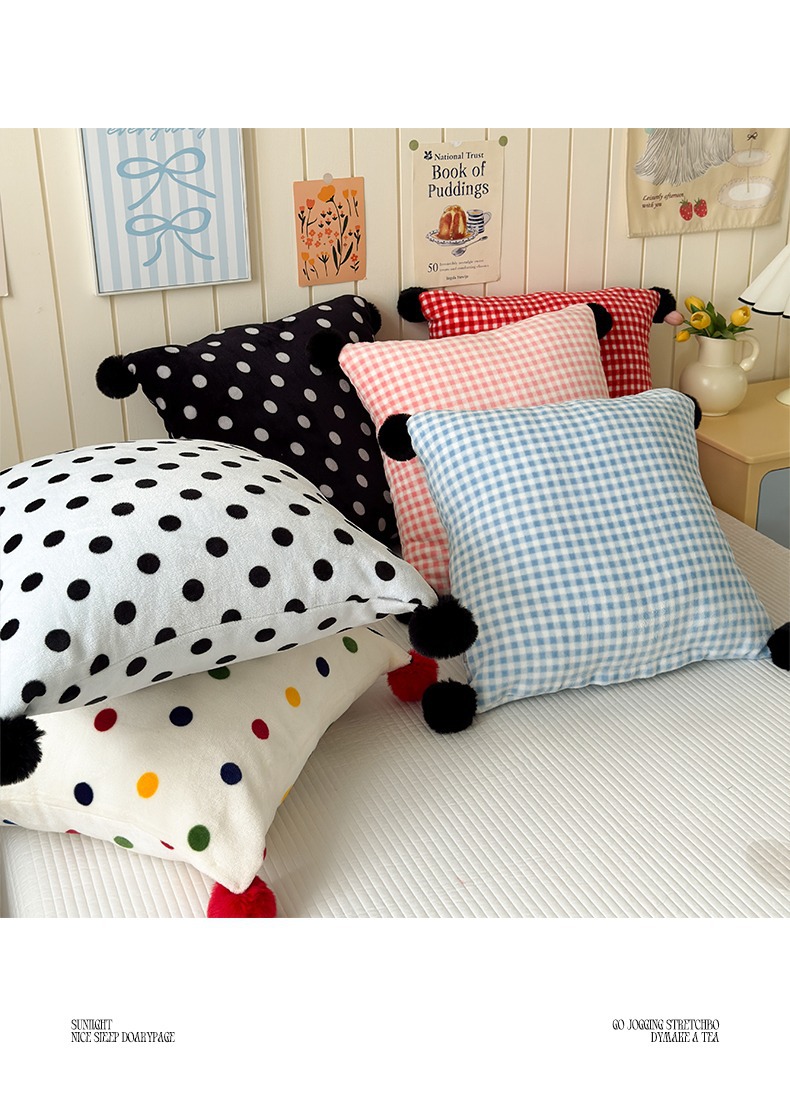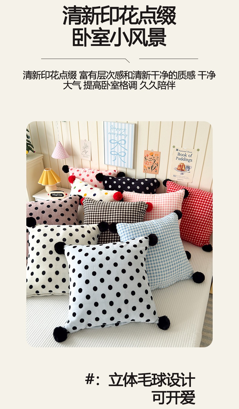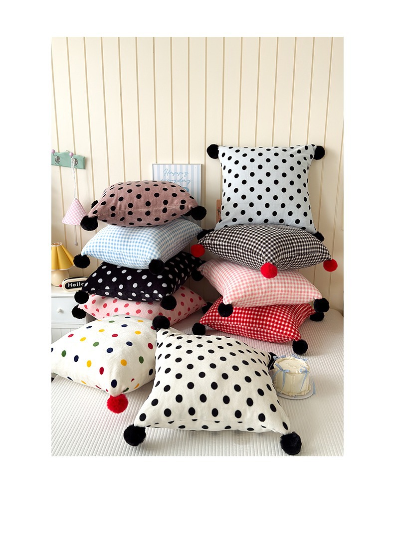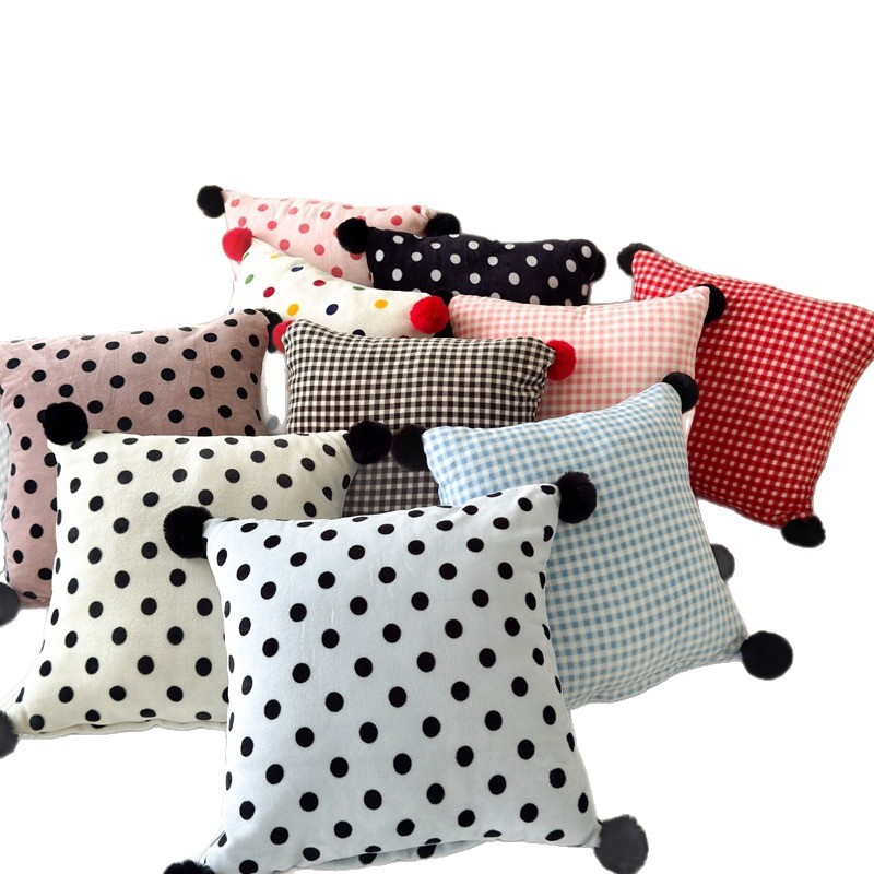 网红复古芋泥紫波点牛奶绒毛球抱枕客厅沙发午睡办公室靠枕腰枕芯