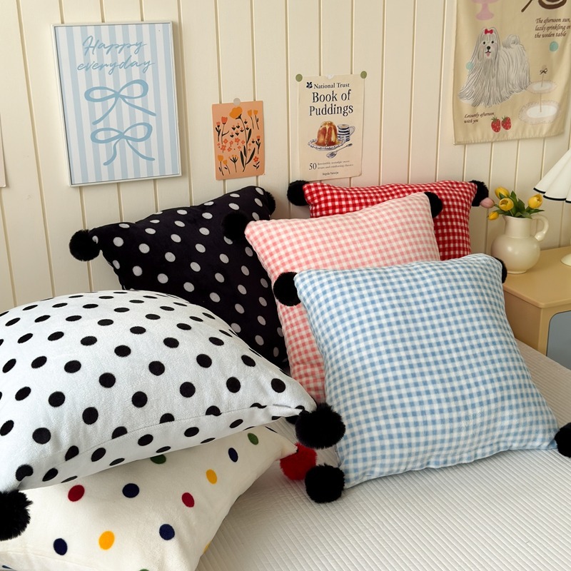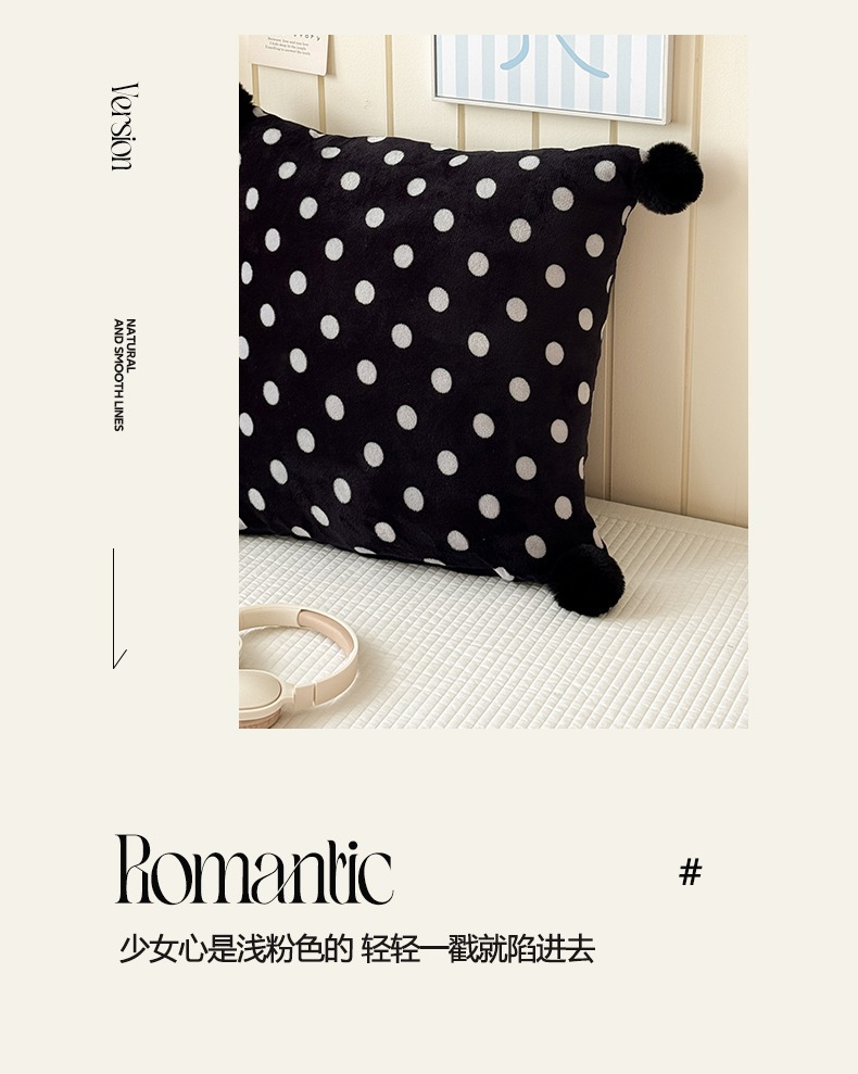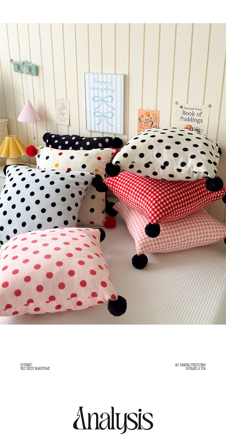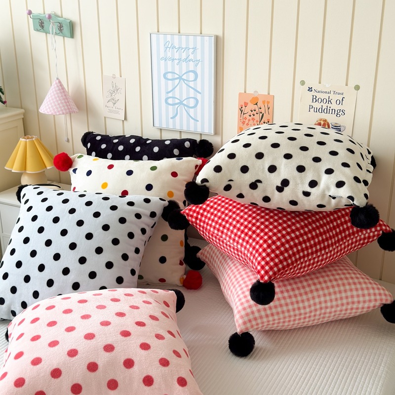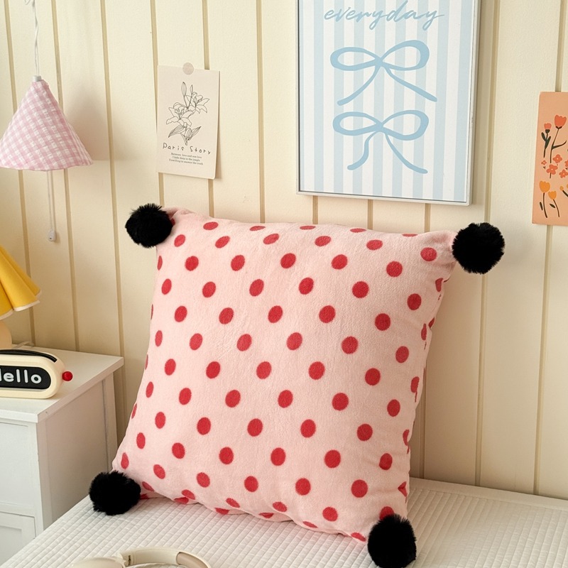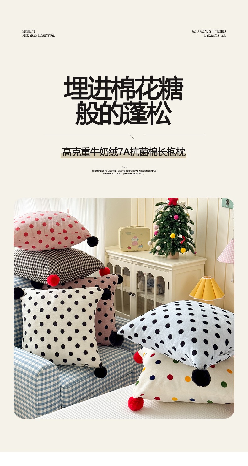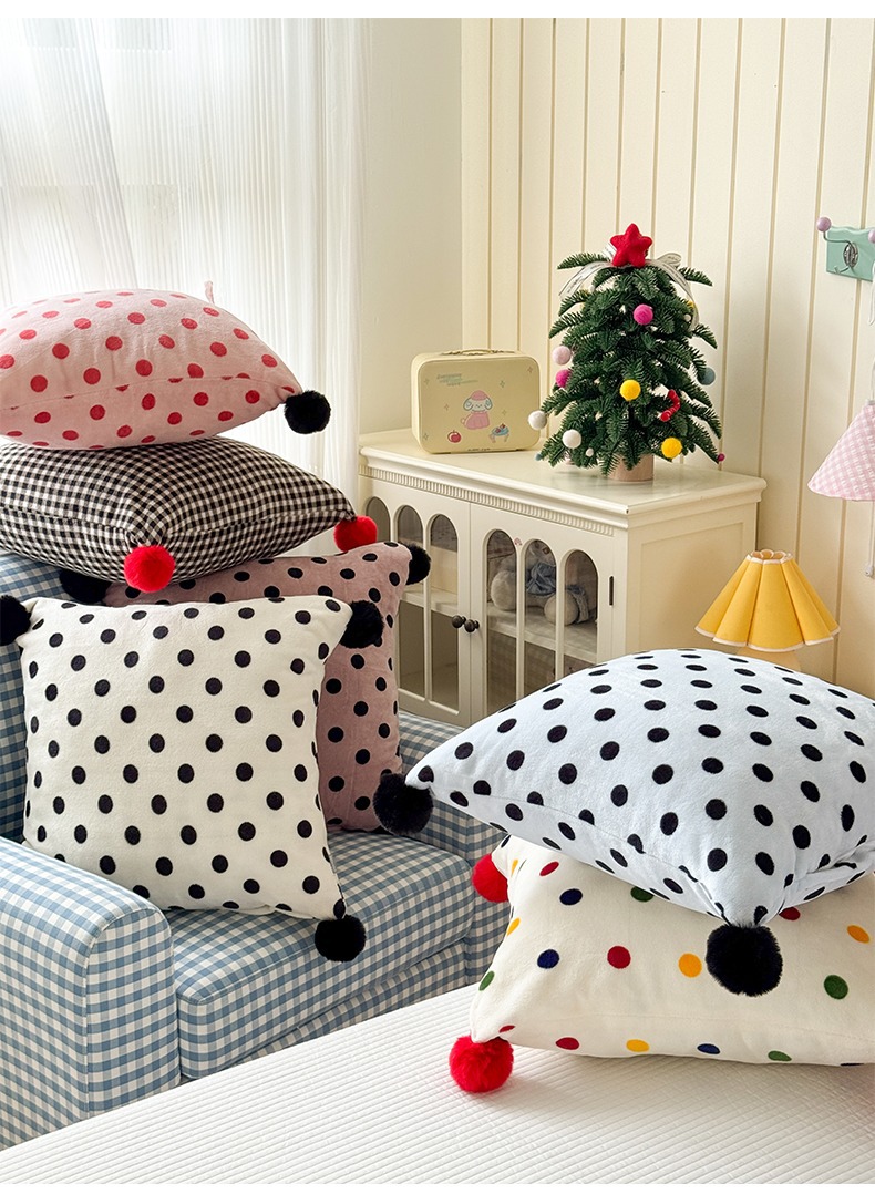 网红复古芋泥紫波点牛奶绒毛球抱枕客厅沙发午睡办公室靠枕腰枕芯