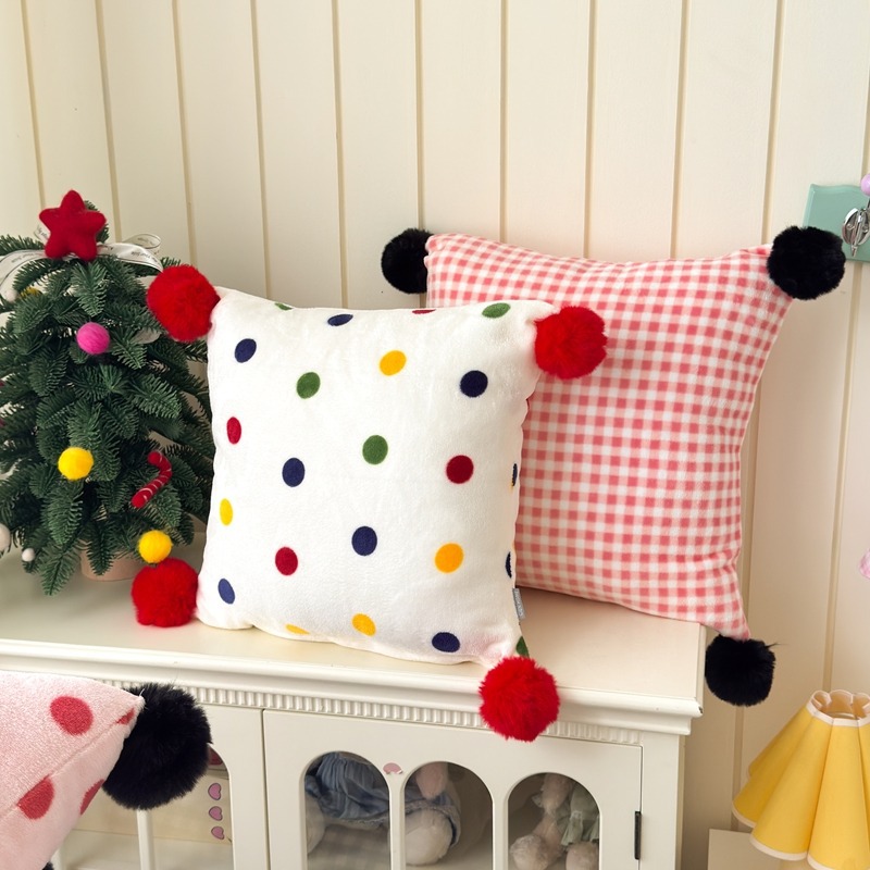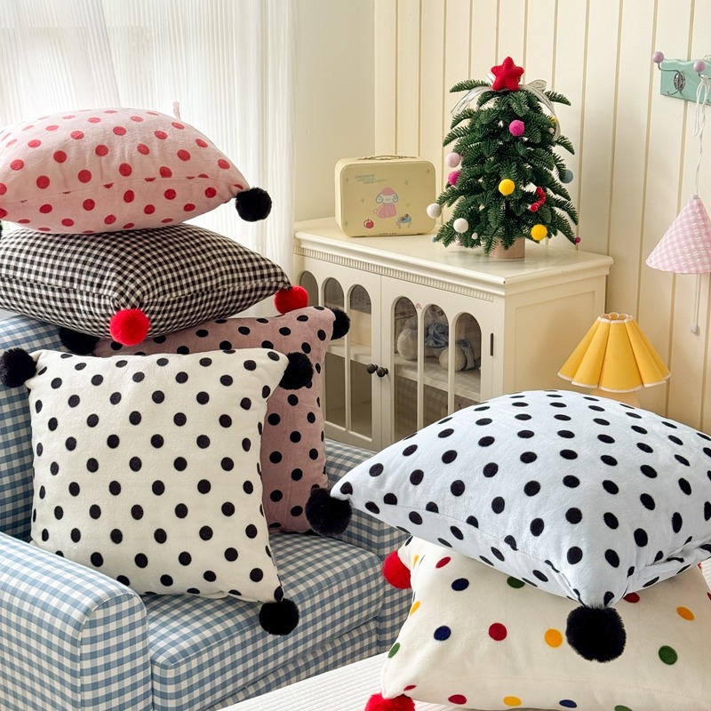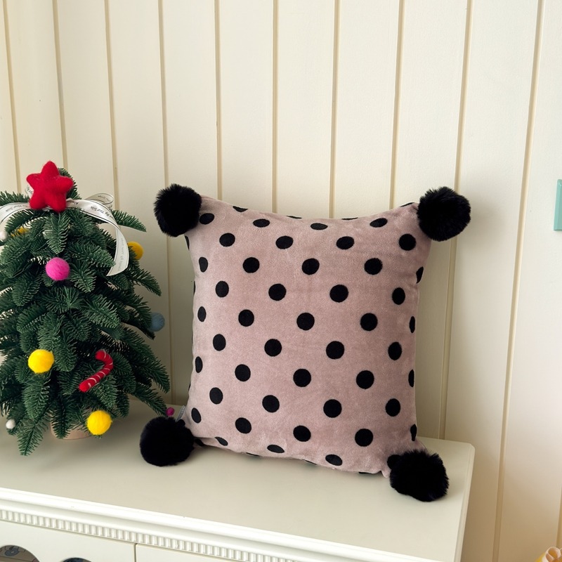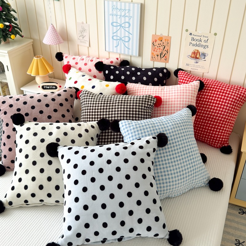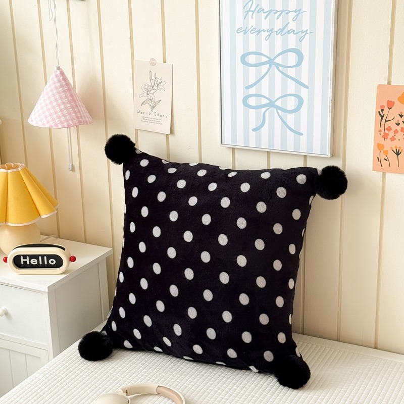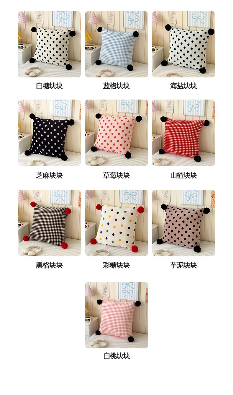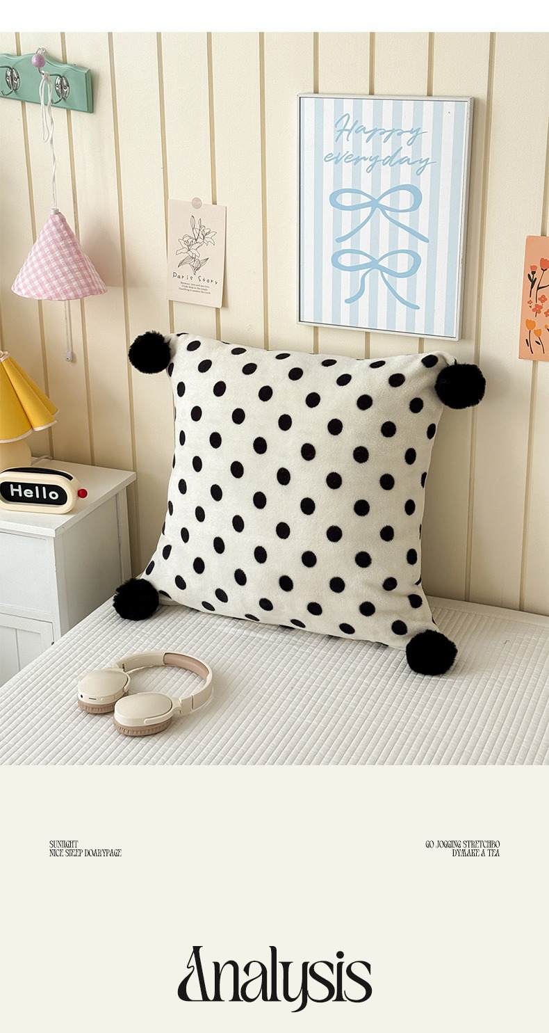 网红复古芋泥紫波点牛奶绒毛球抱枕客厅沙发午睡办公室靠枕腰枕芯