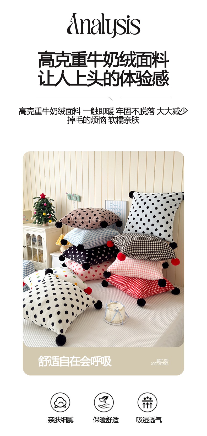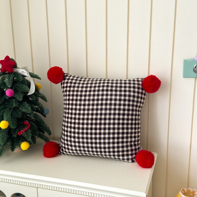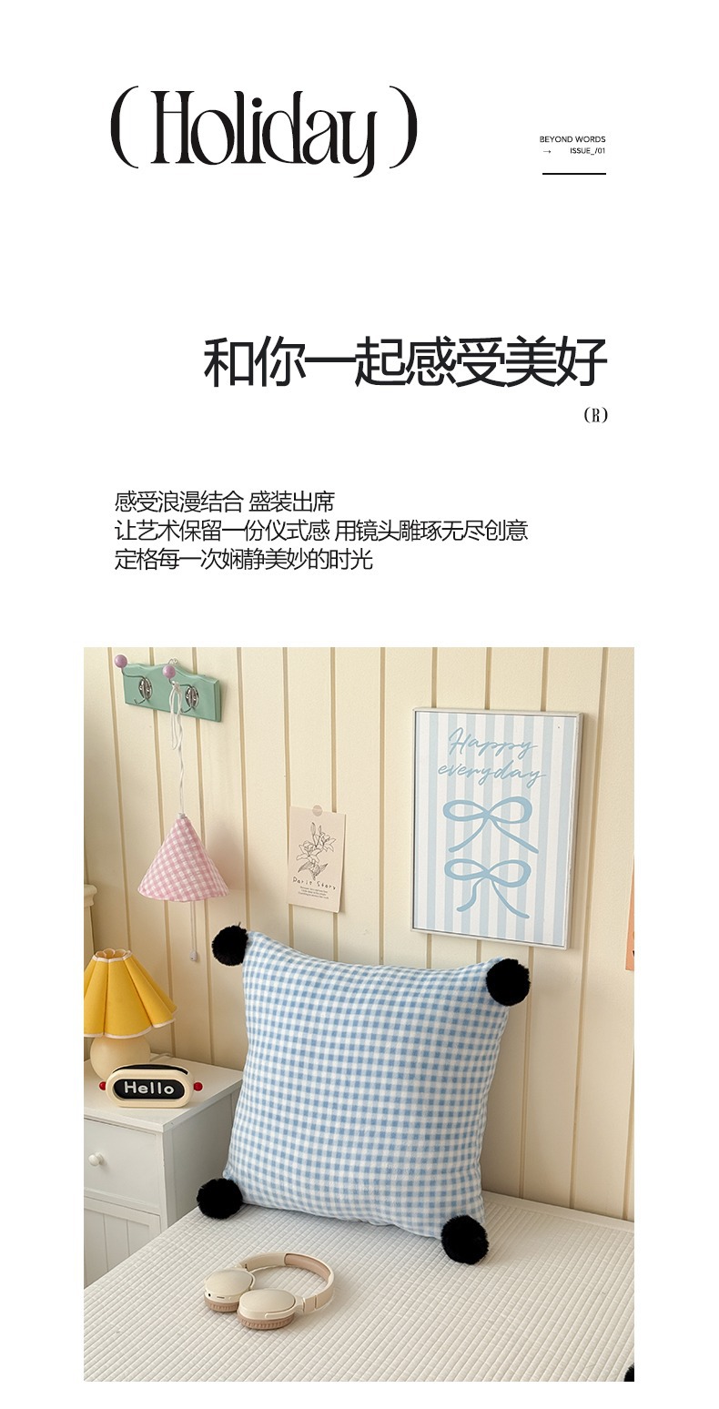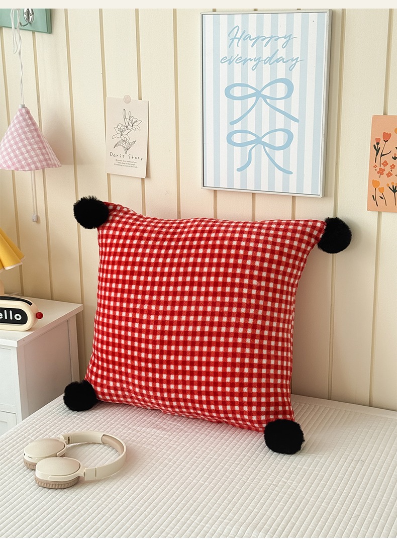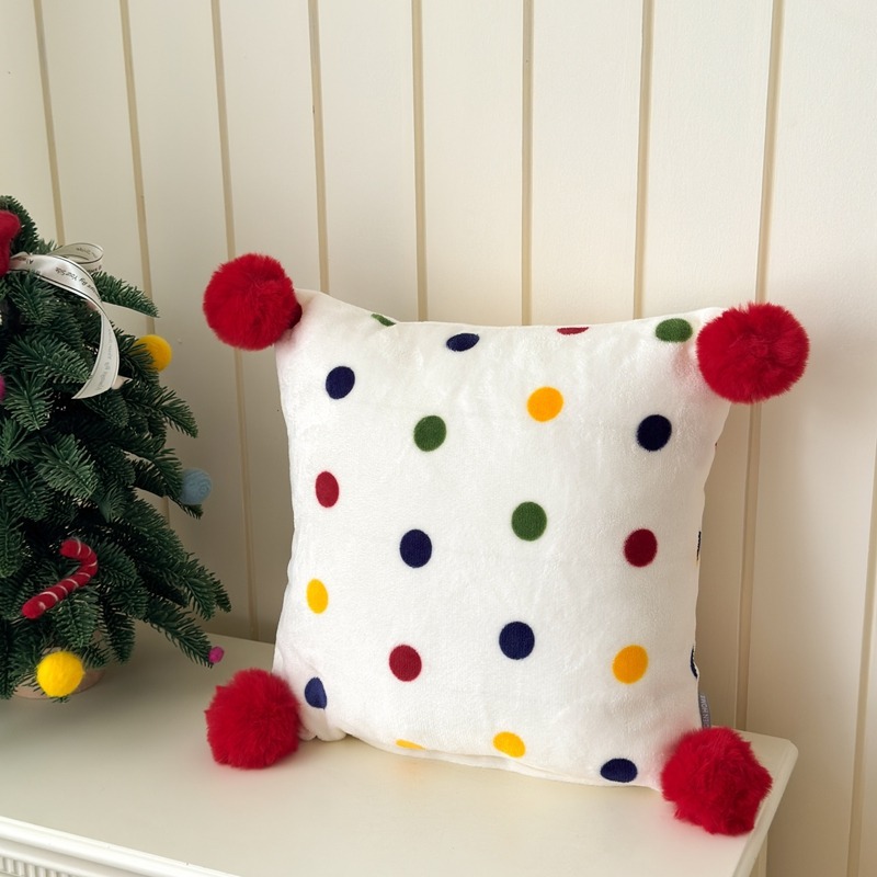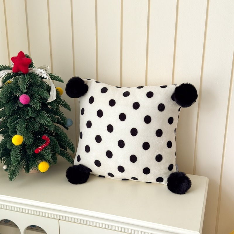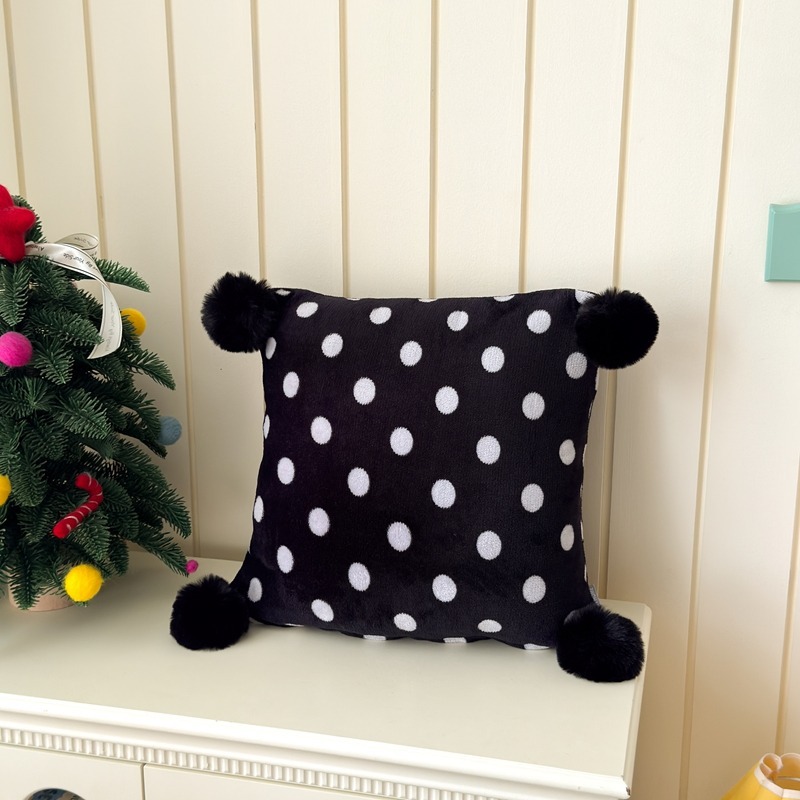 网红复古芋泥紫波点牛奶绒毛球抱枕客厅沙发午睡办公室靠枕腰枕芯