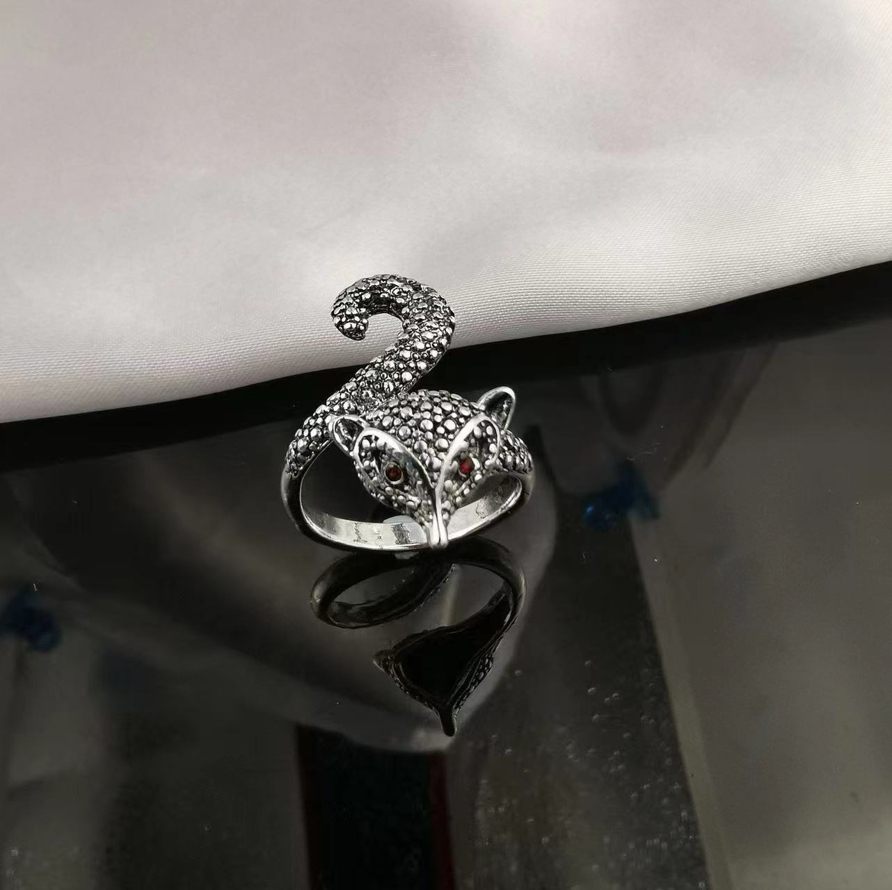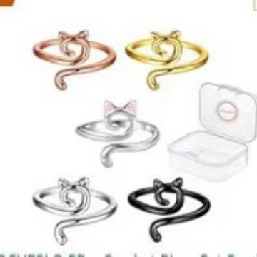 跨境欧美勾线带线戒指几何猫咪戒指 开口可调节动物指环针织饰品