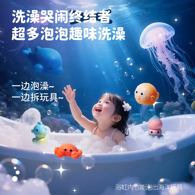 跨境 儿童泡澡带玩具球泡泡浴球浴缸洗澡球宝宝沐浴球精油球 现货