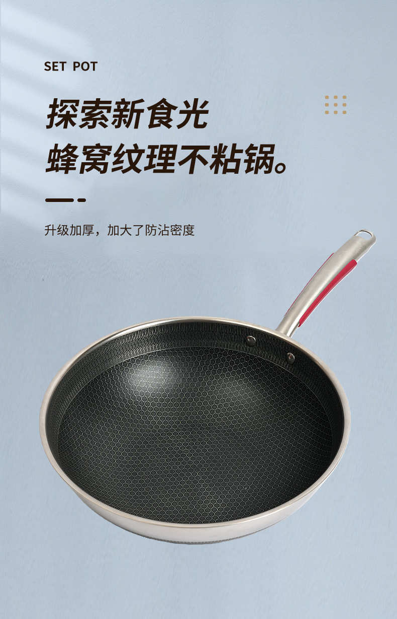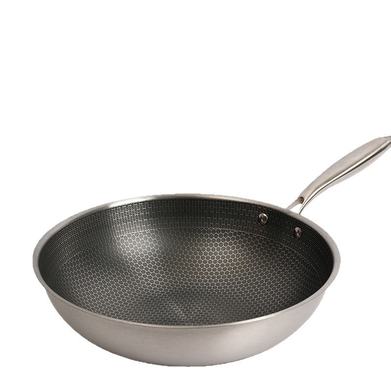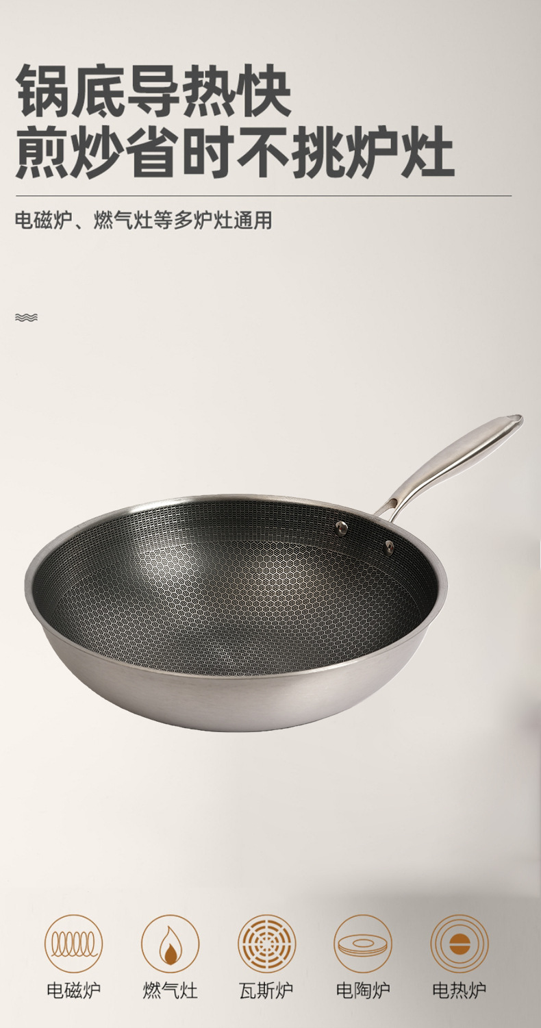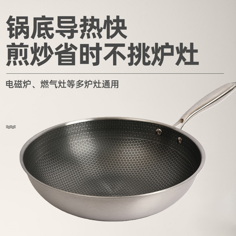 不锈钢全屏蜂窝炒锅家用炒菜锅平底锅煤气电磁炉通用