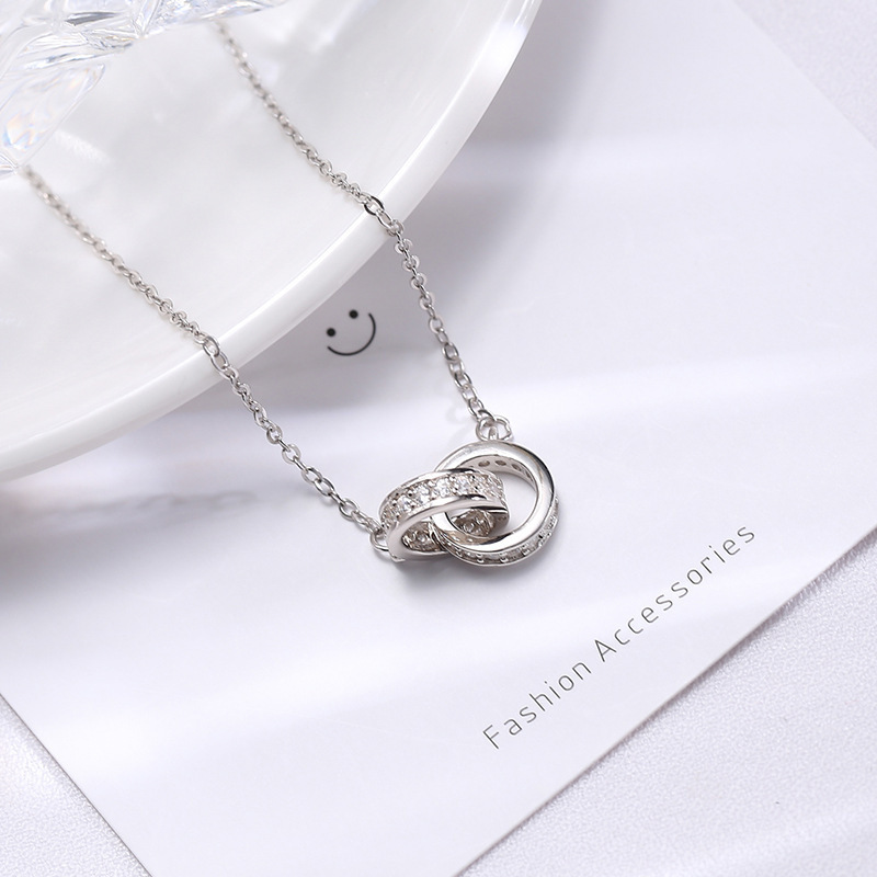 双环圆圈项链仿S925纯银色简约饰品创意个性礼物批发轻奢配饰