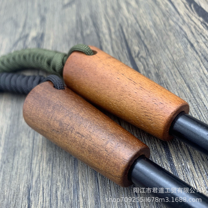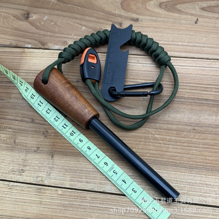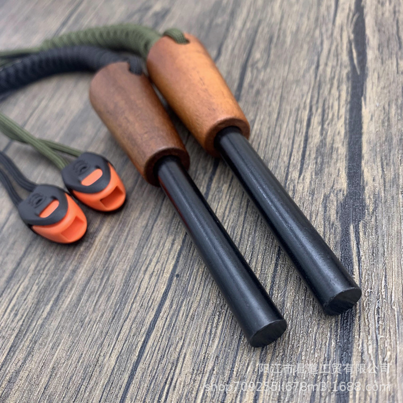 批发跨境木柄打火石10*100实心镁棒 户外生存加长伞绳 野营打火棒