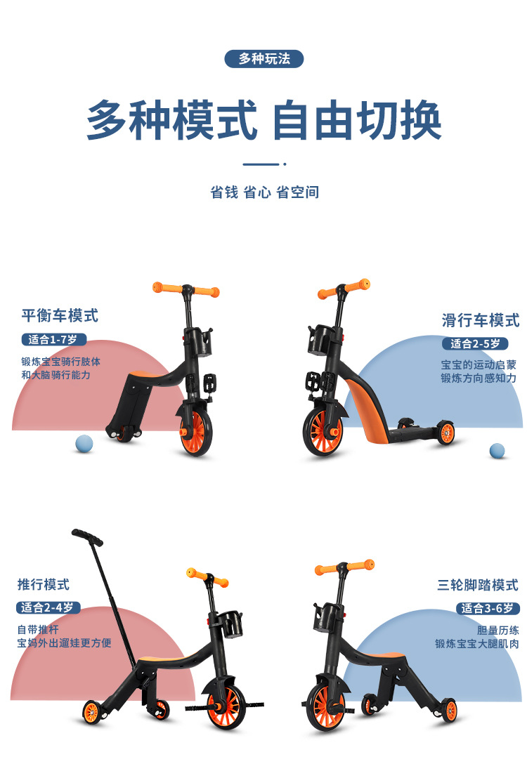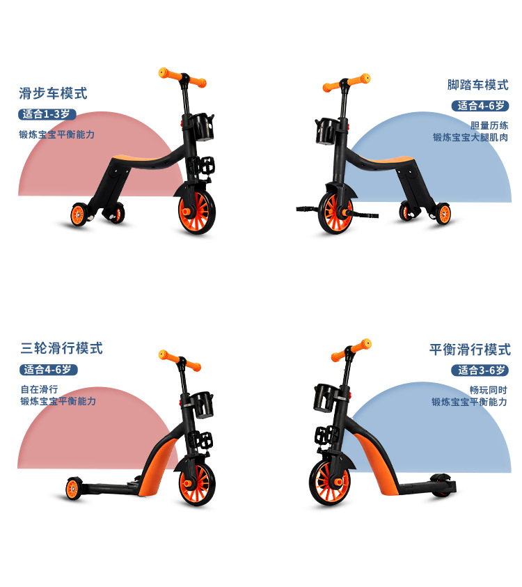 三合一滑板车宝宝溜溜车滑行车可坐可骑脚踏三轮车儿童平衡车推车