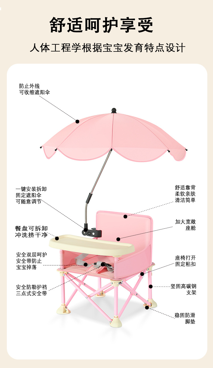儿童餐椅便携式宝宝餐椅便携折叠式吃饭餐桌椅户外拍照沙滩椅带伞