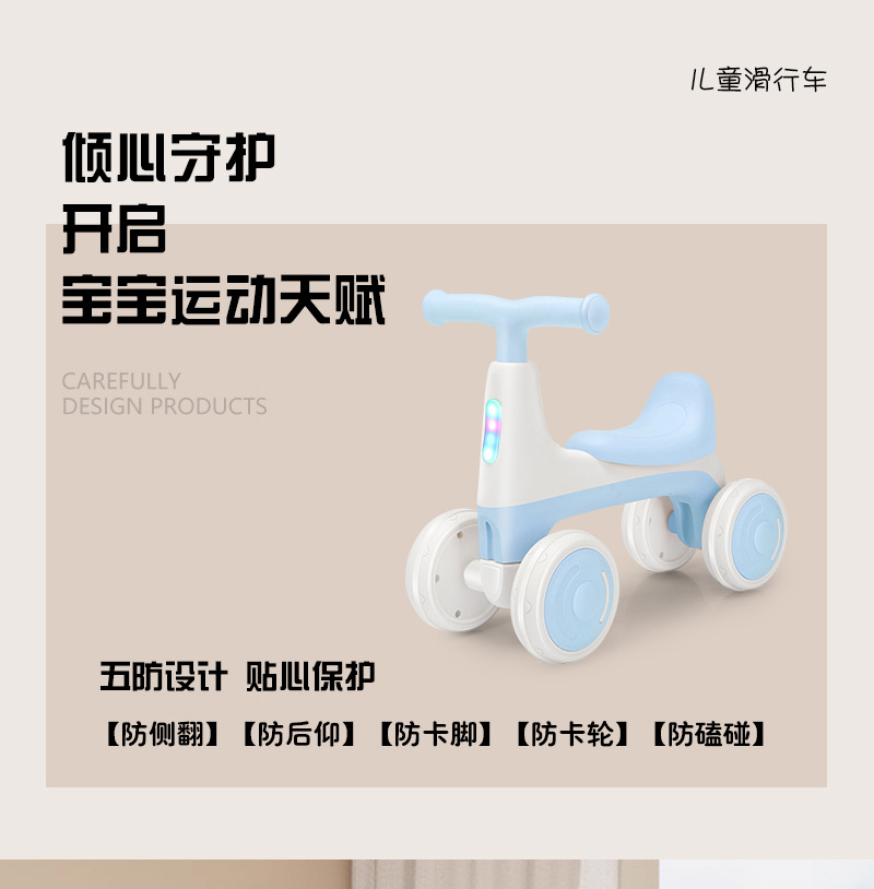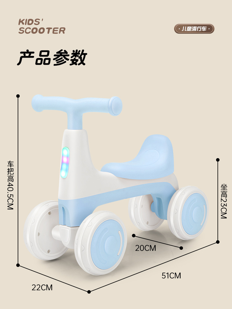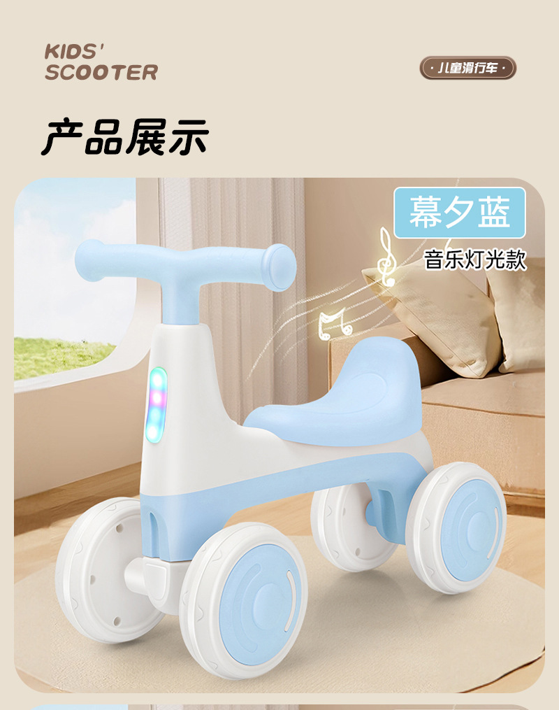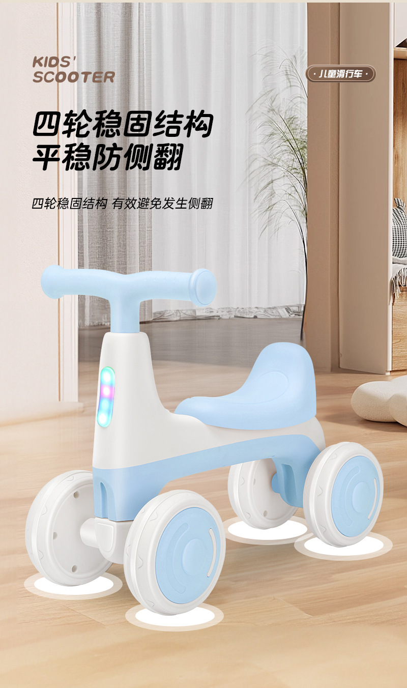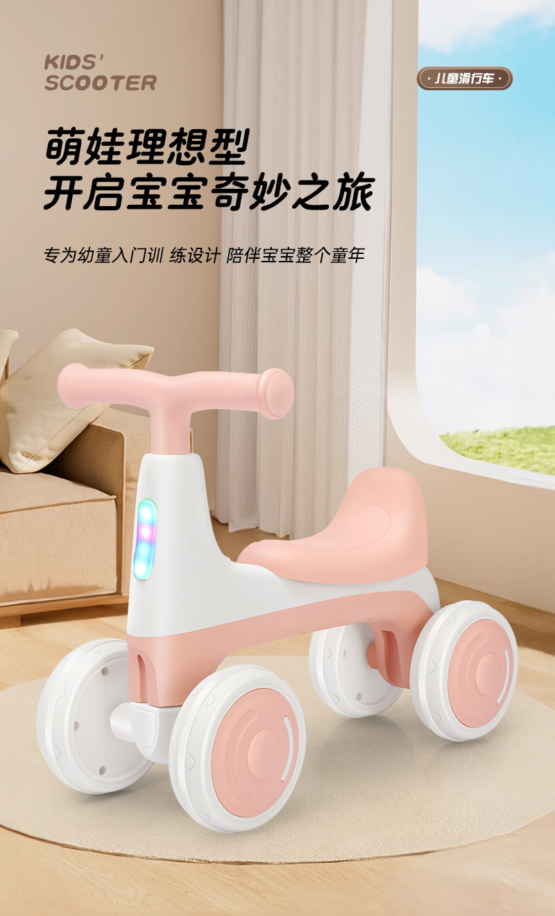 儿童平衡车1到3岁无脚踏溜溜车2024新款婴幼儿入门四轮学步滑行车