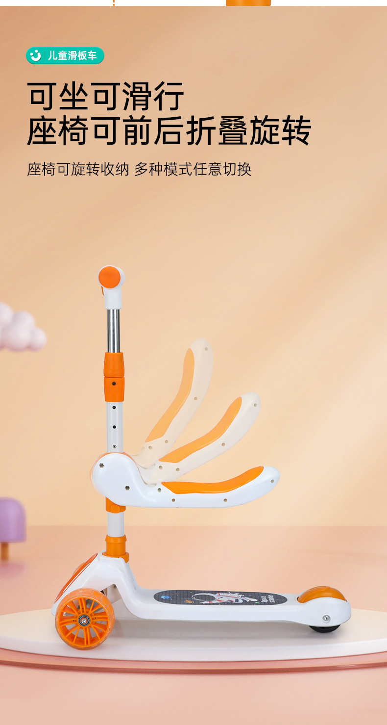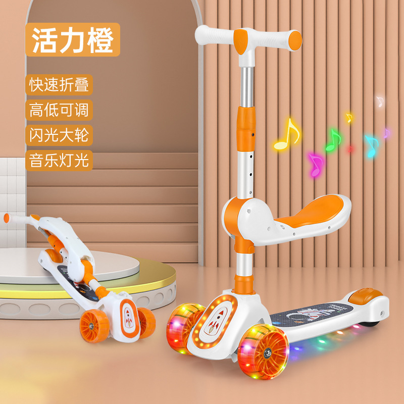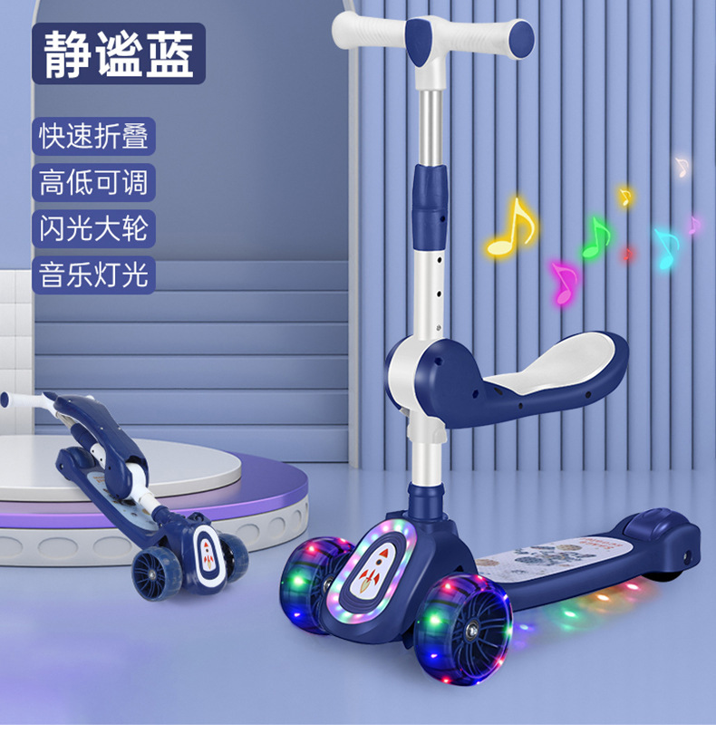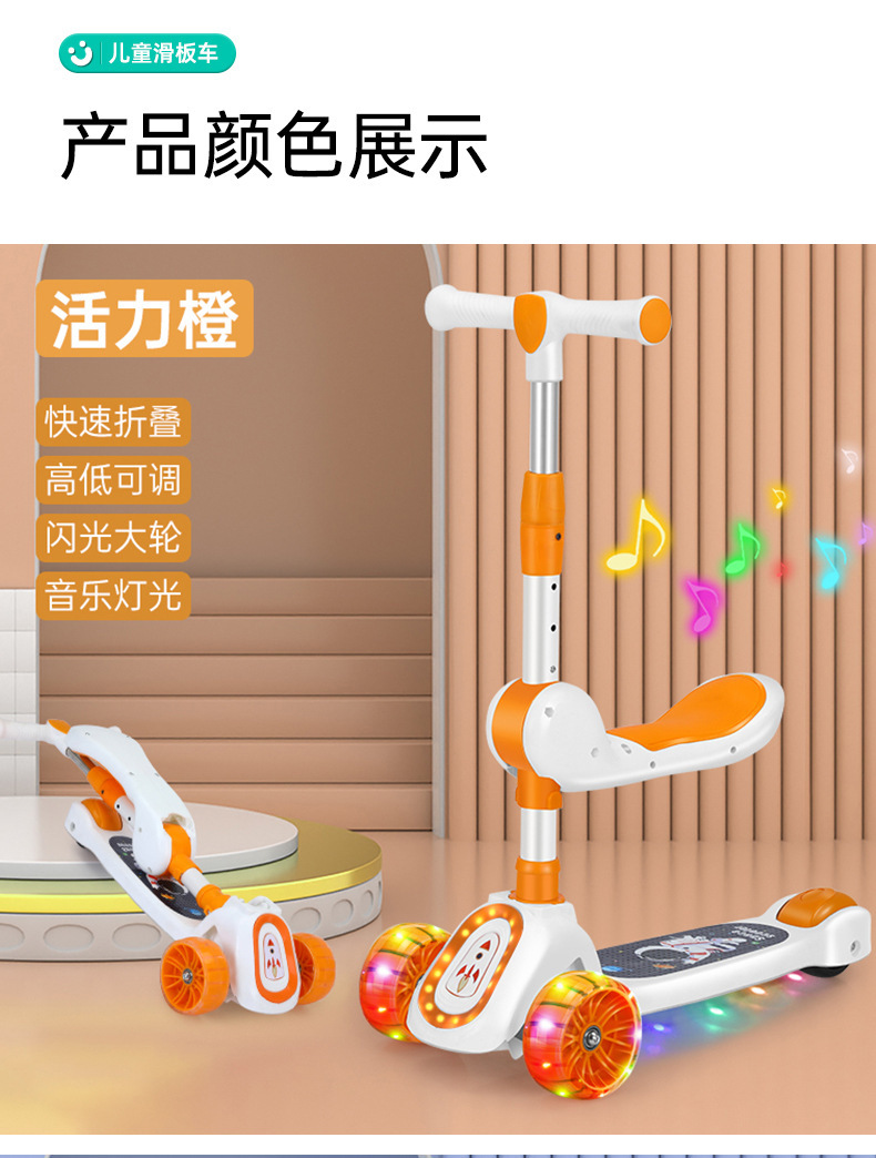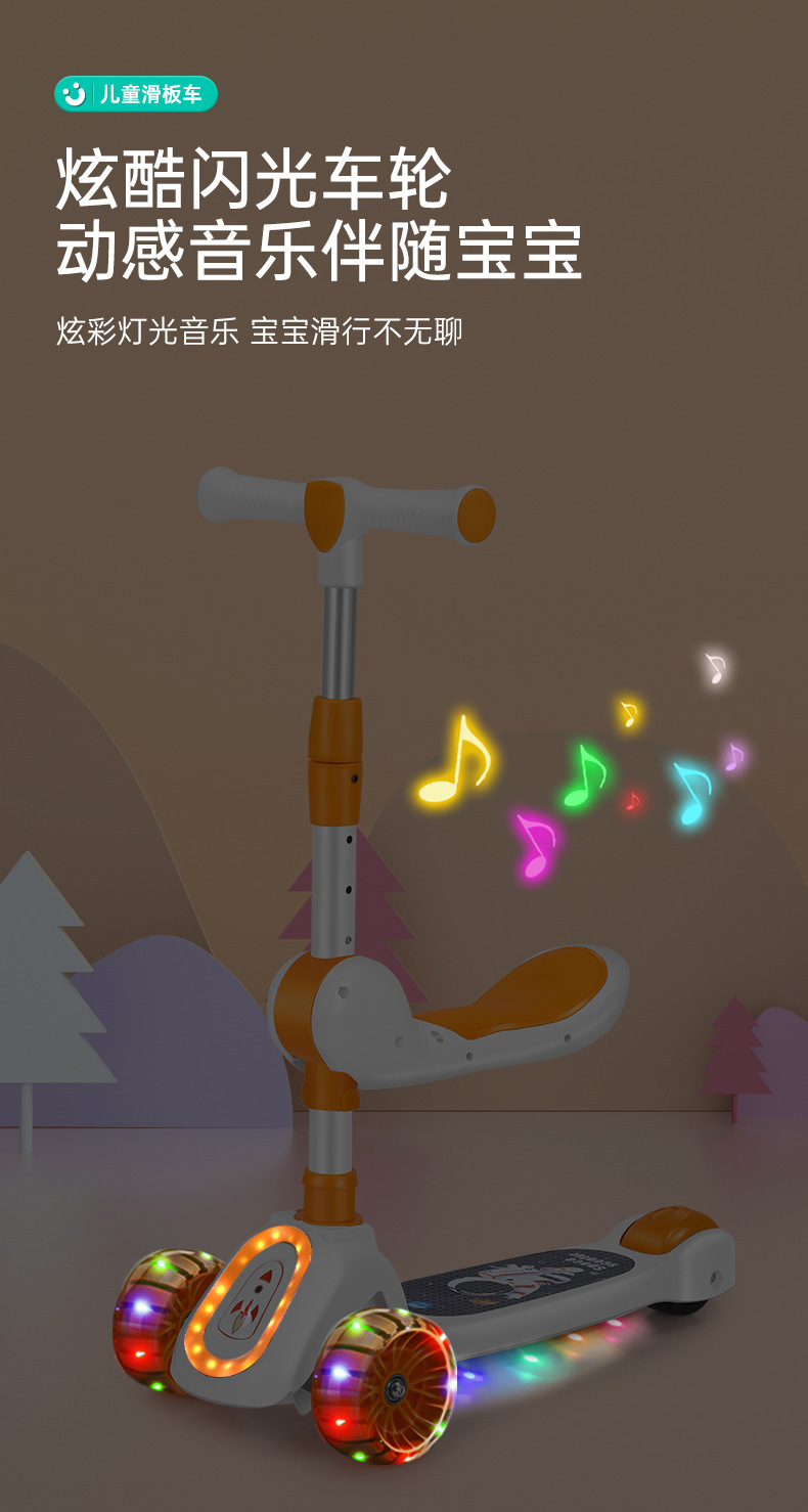 厂家新款儿童滑板车1-10岁宝宝溜溜车滑行车带音乐灯光可座可滑行