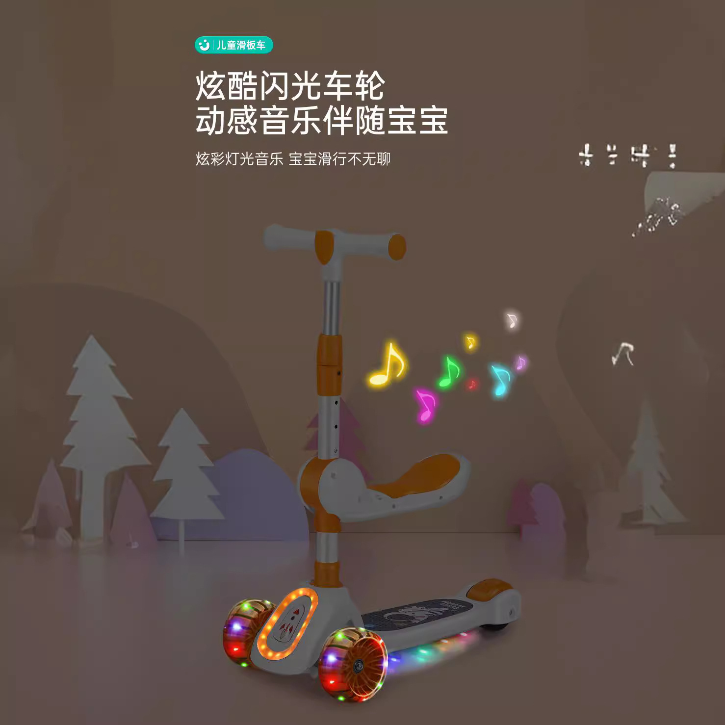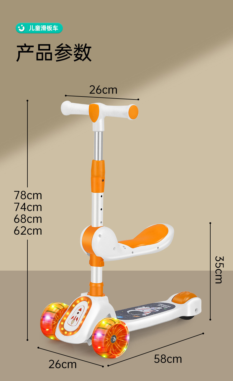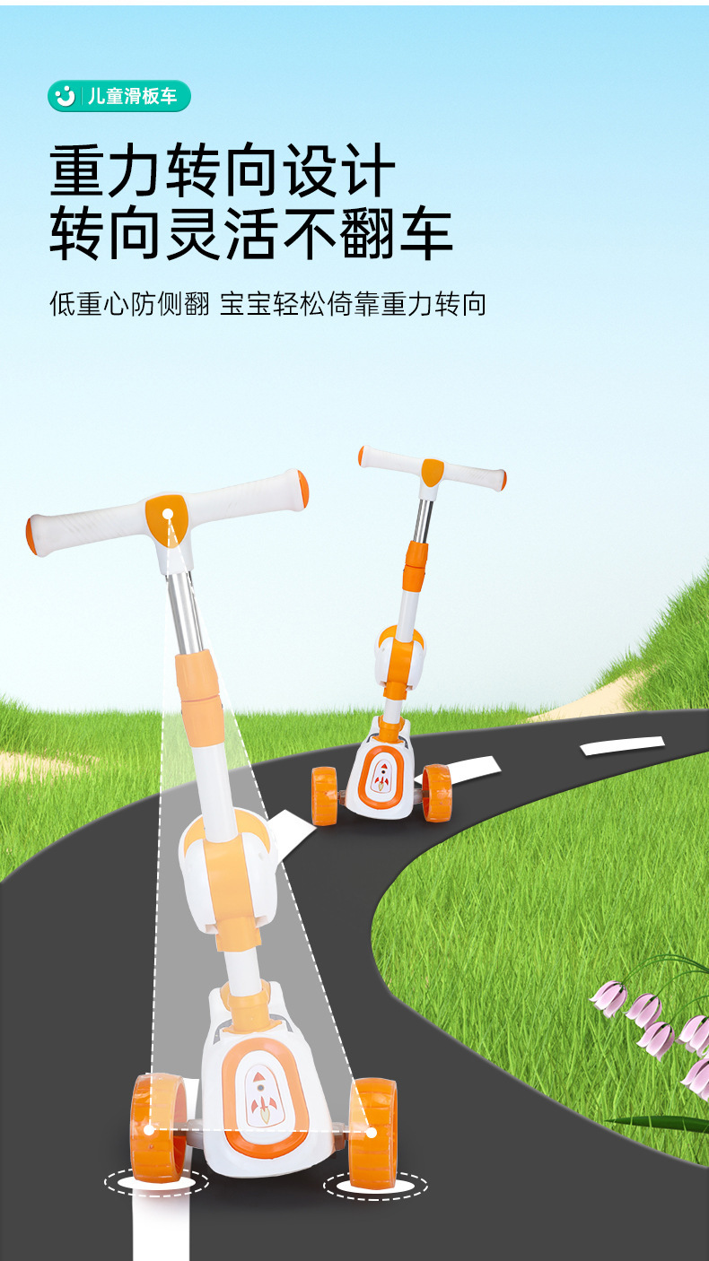 厂家新款儿童滑板车1-10岁宝宝溜溜车滑行车带音乐灯光可座可滑行