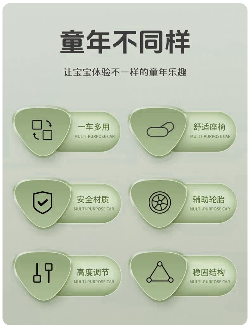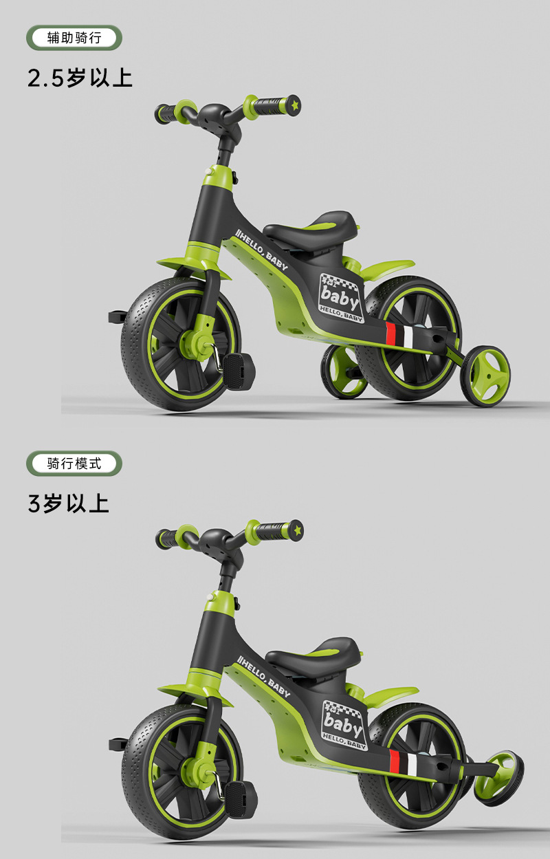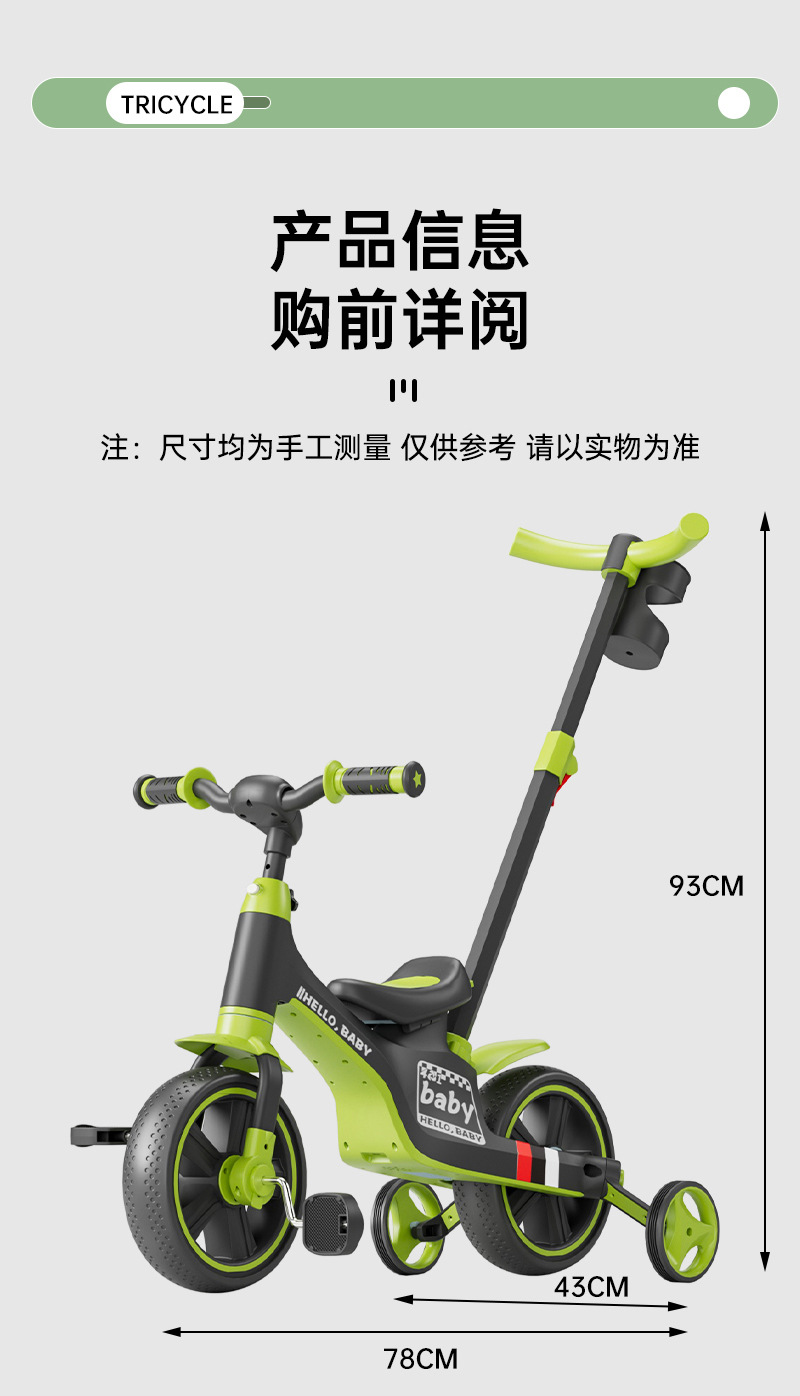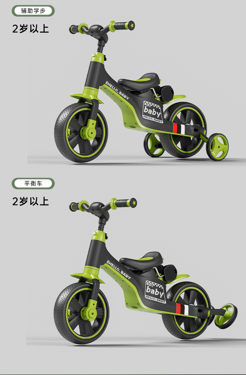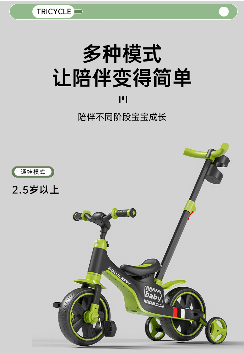 多功能儿童三轮车脚踏车五合一手推儿童平衡车无脚踏滑行平衡车