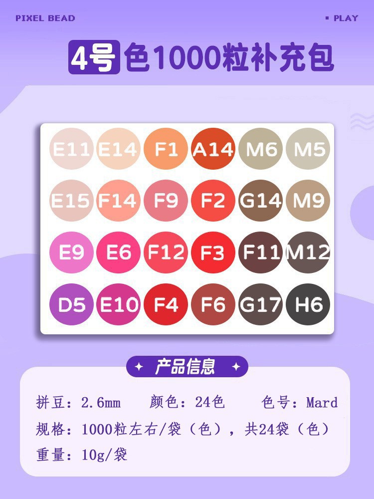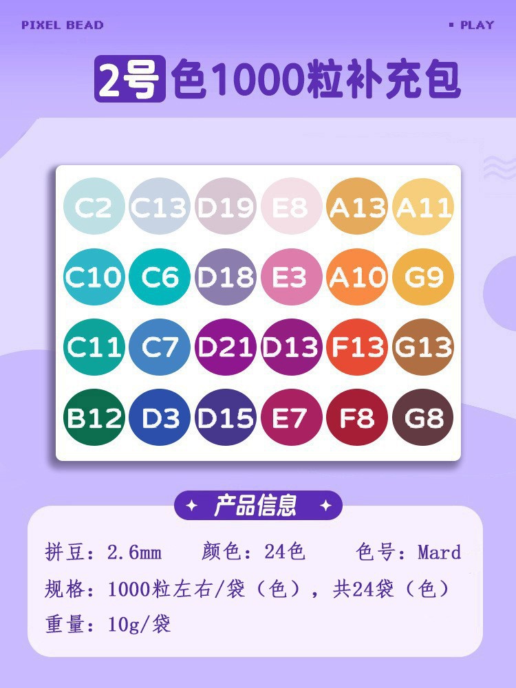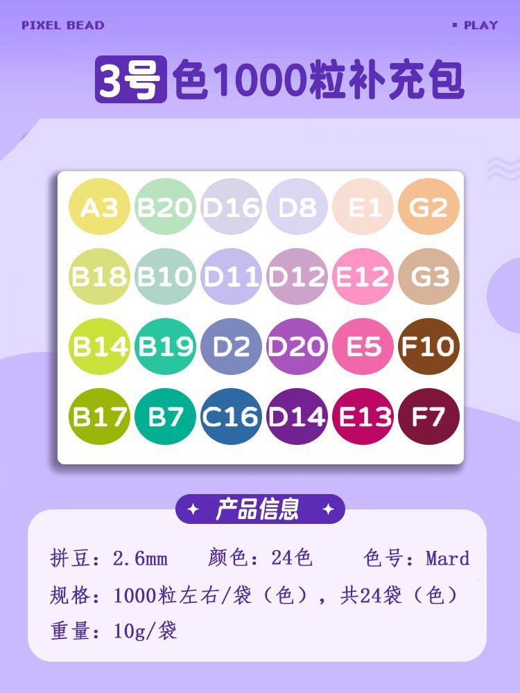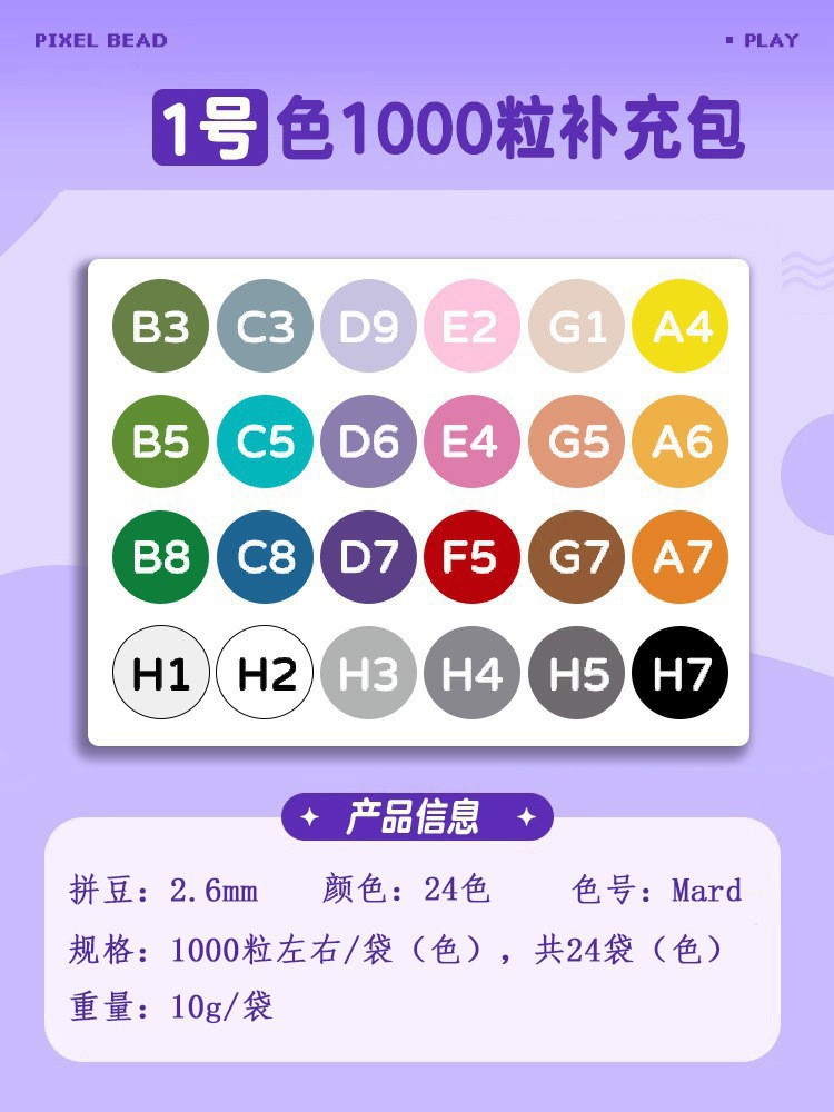 拼豆豆融合豆补充包2.6mm补充包1000粒MARD221色拼豆材料包全套
