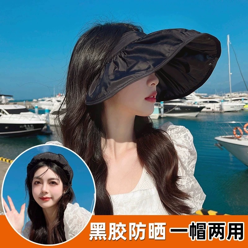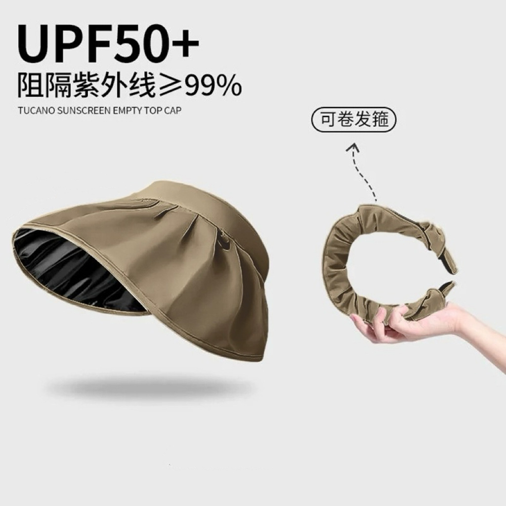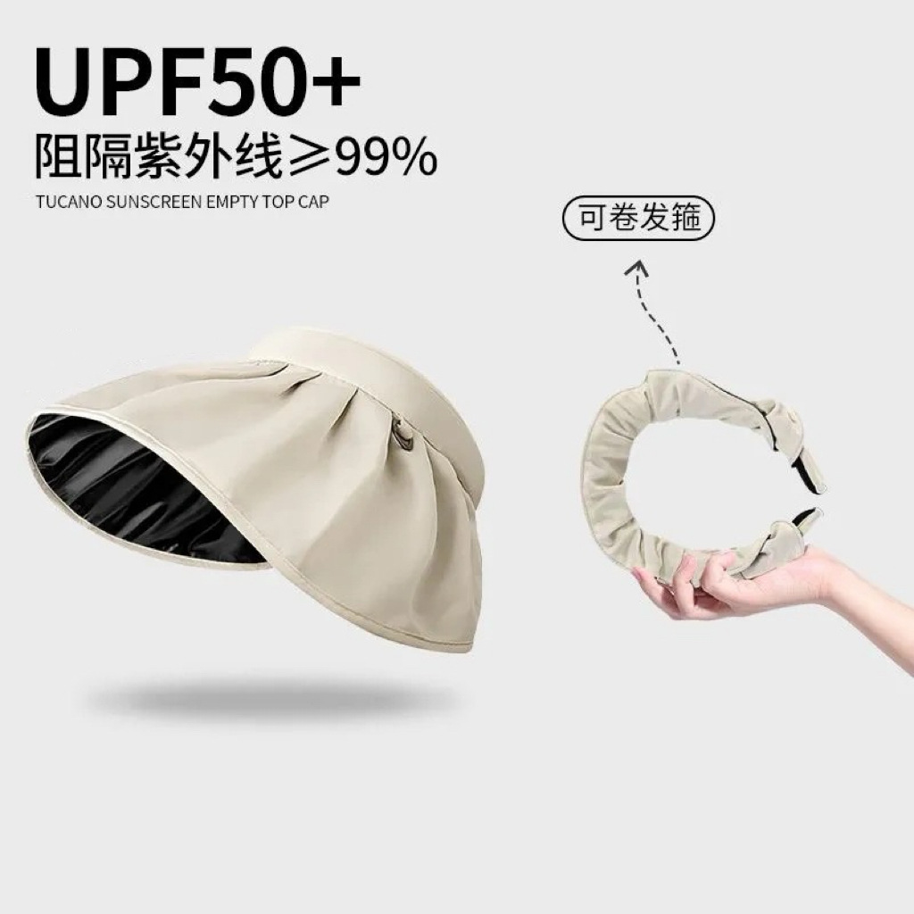 upf50+防晒帽女夏防紫外线空顶遮阳帽大檐遮脸发箍太阳帽子贝壳帽