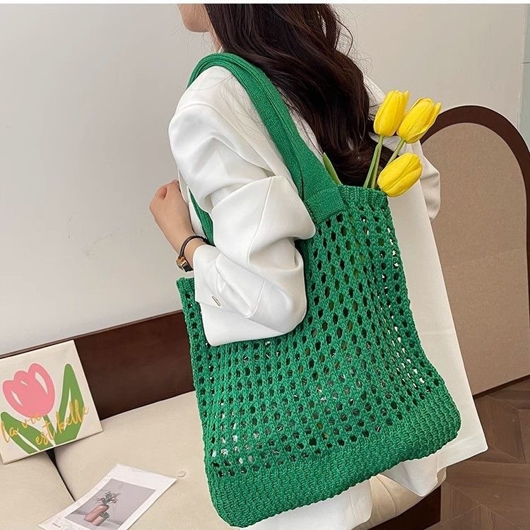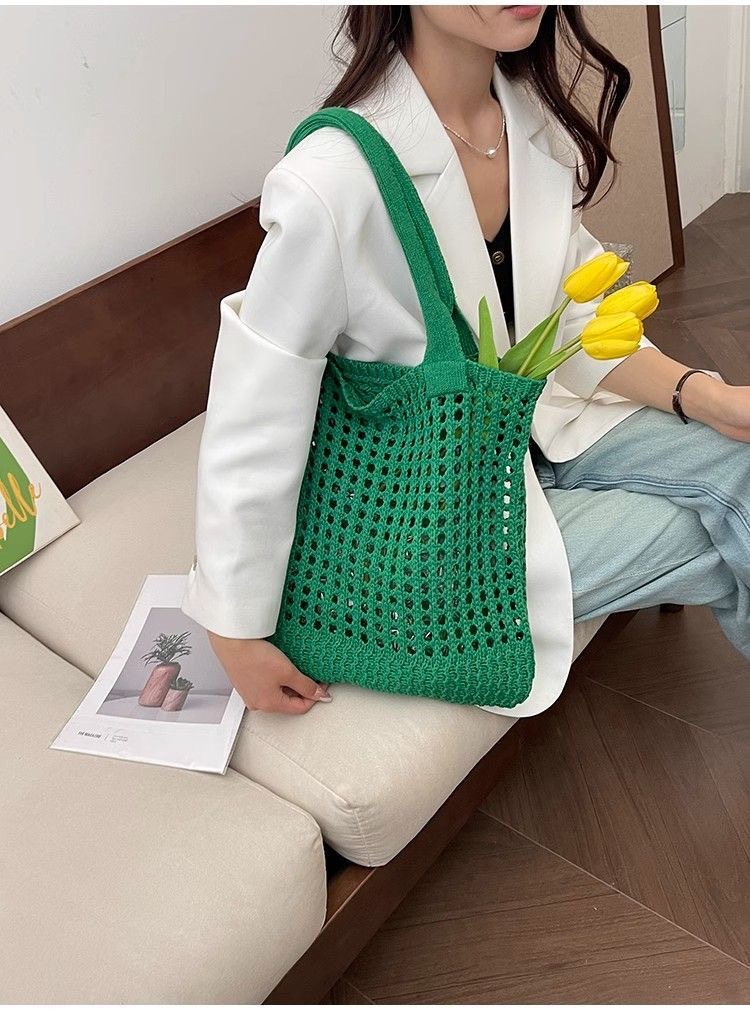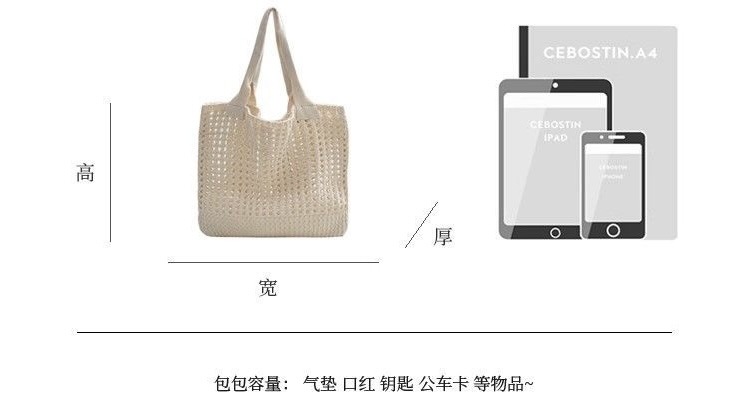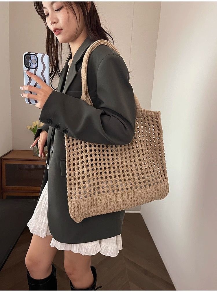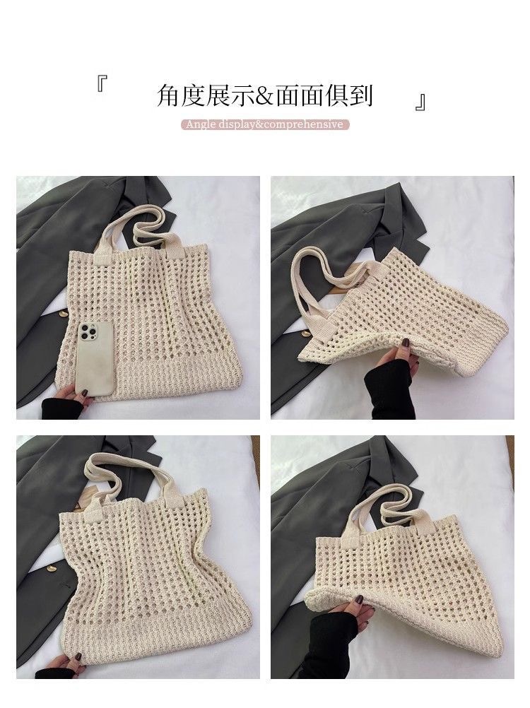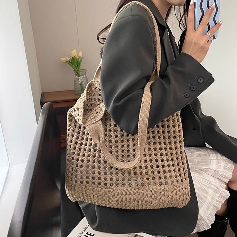 2025新款复古编织包大容量通勤高级感托特包纯色镂空针织包包女士