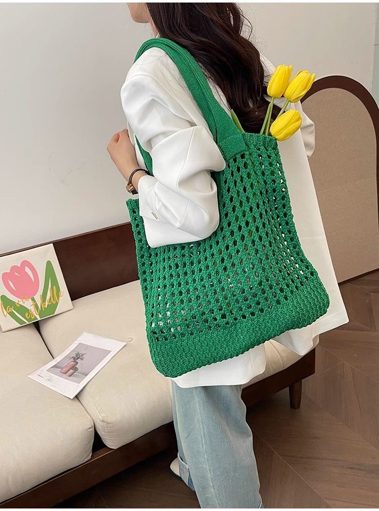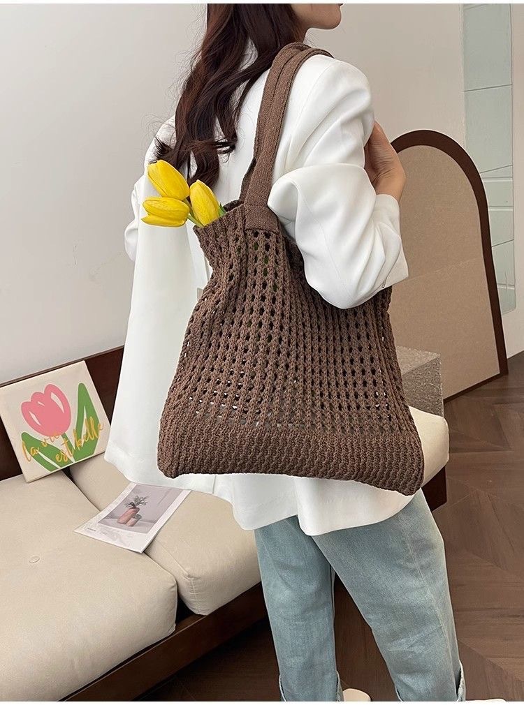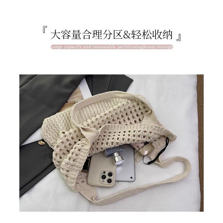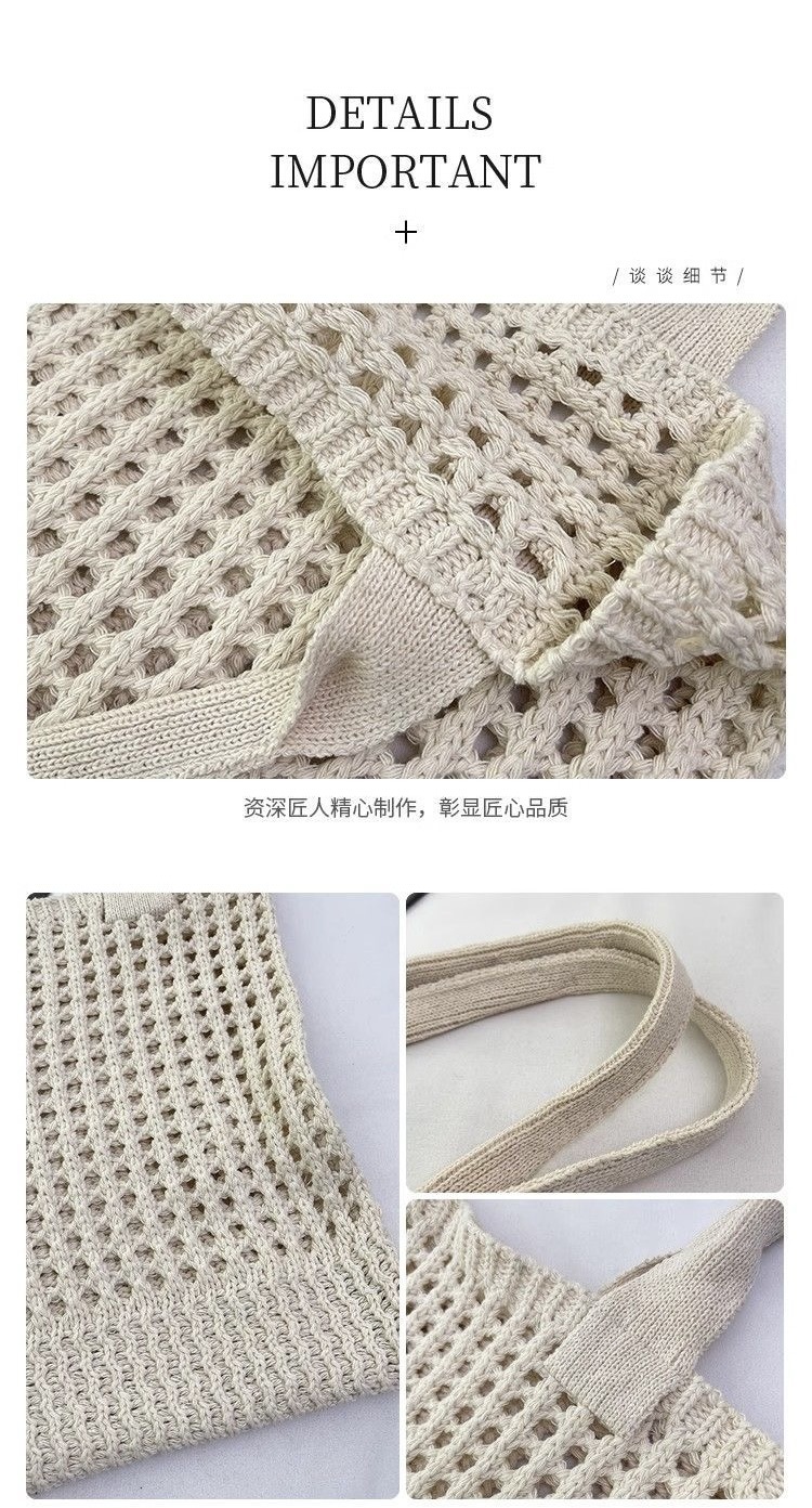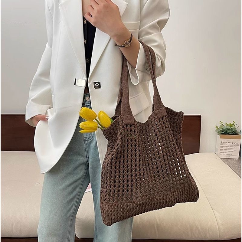 2025新款复古编织包大容量通勤高级感托特包纯色镂空针织包包女士