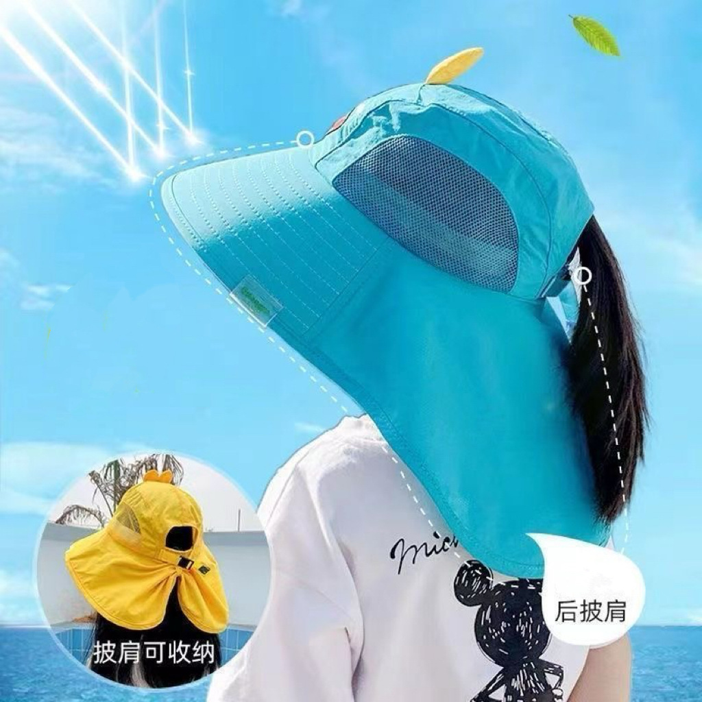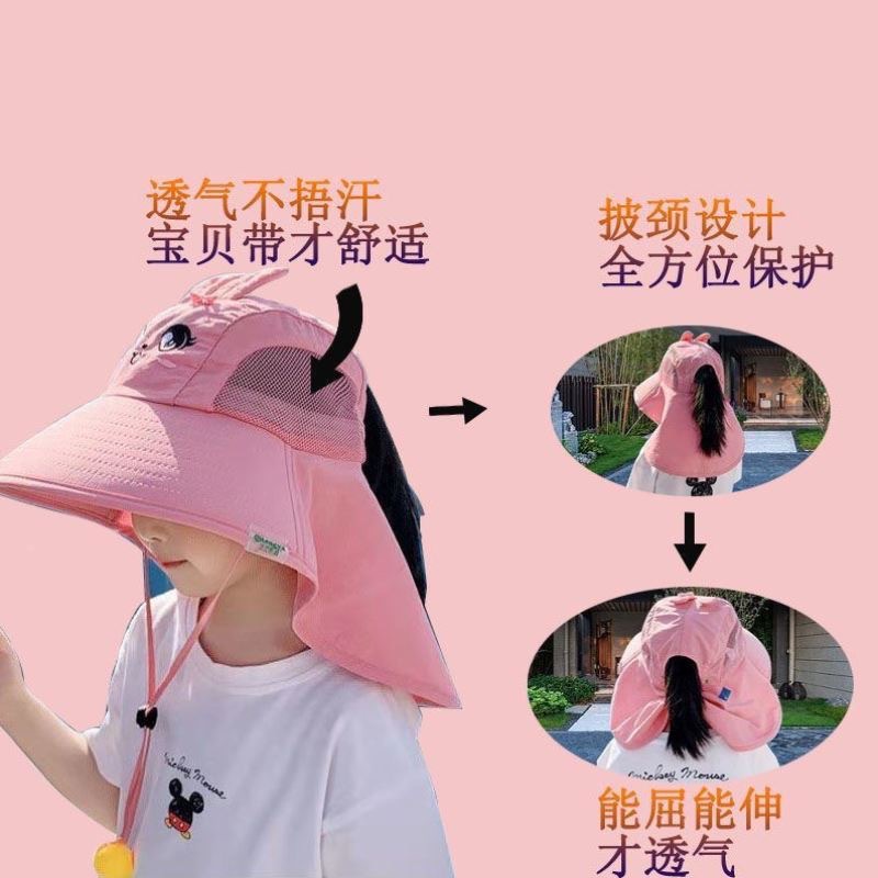 儿童遮阳帽男女童防紫外线夏季防晒帽大帽檐新款百搭透气渔夫帽