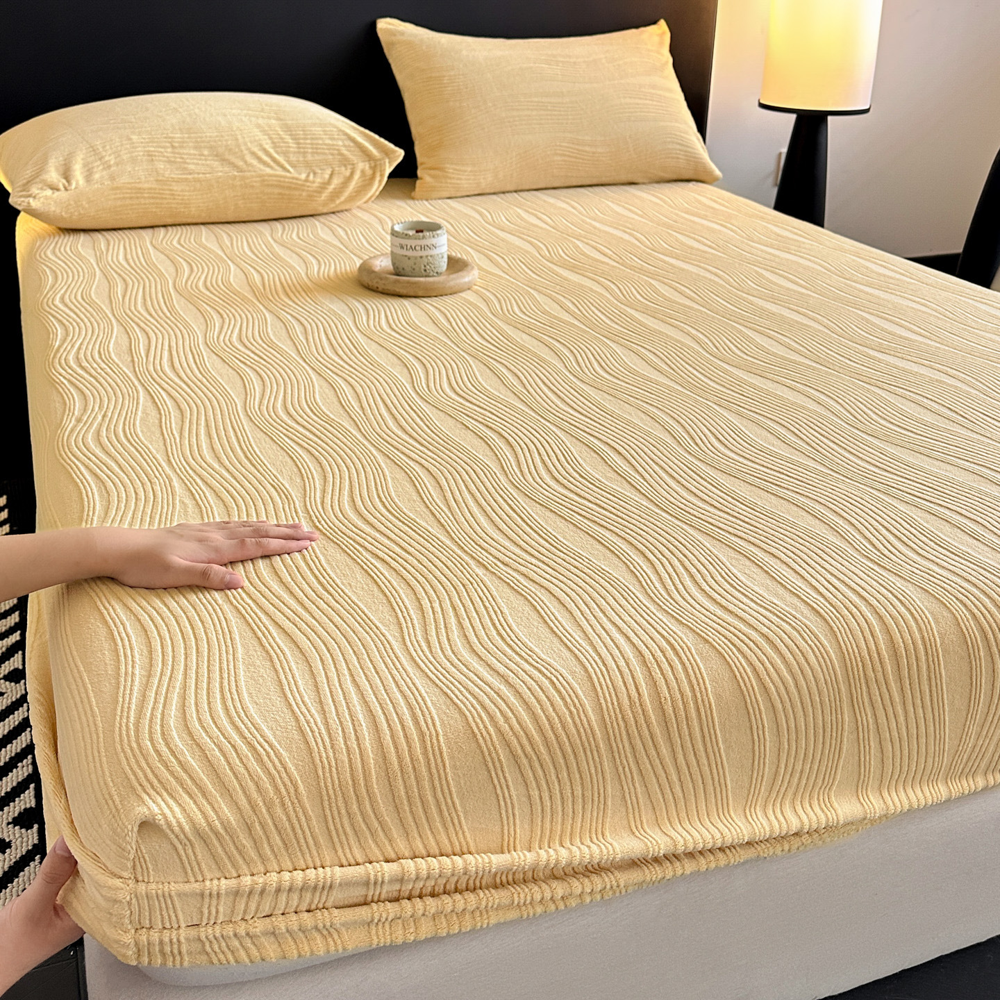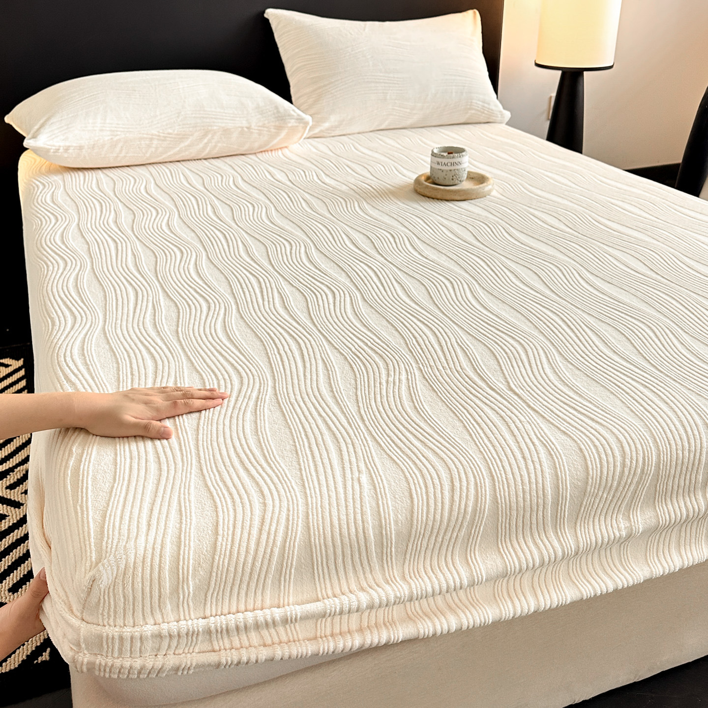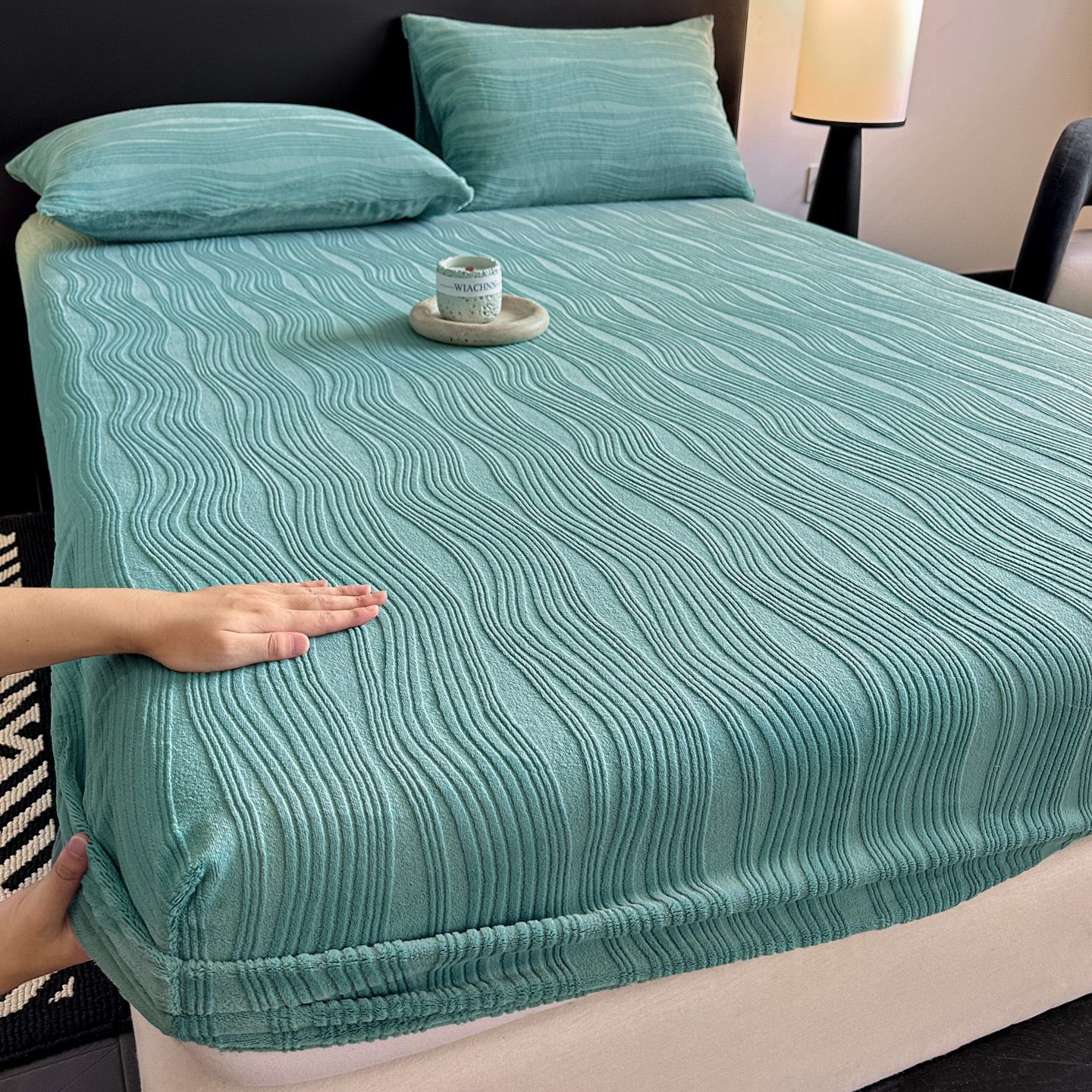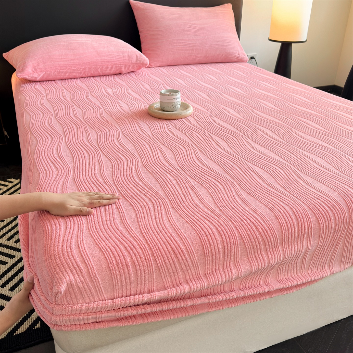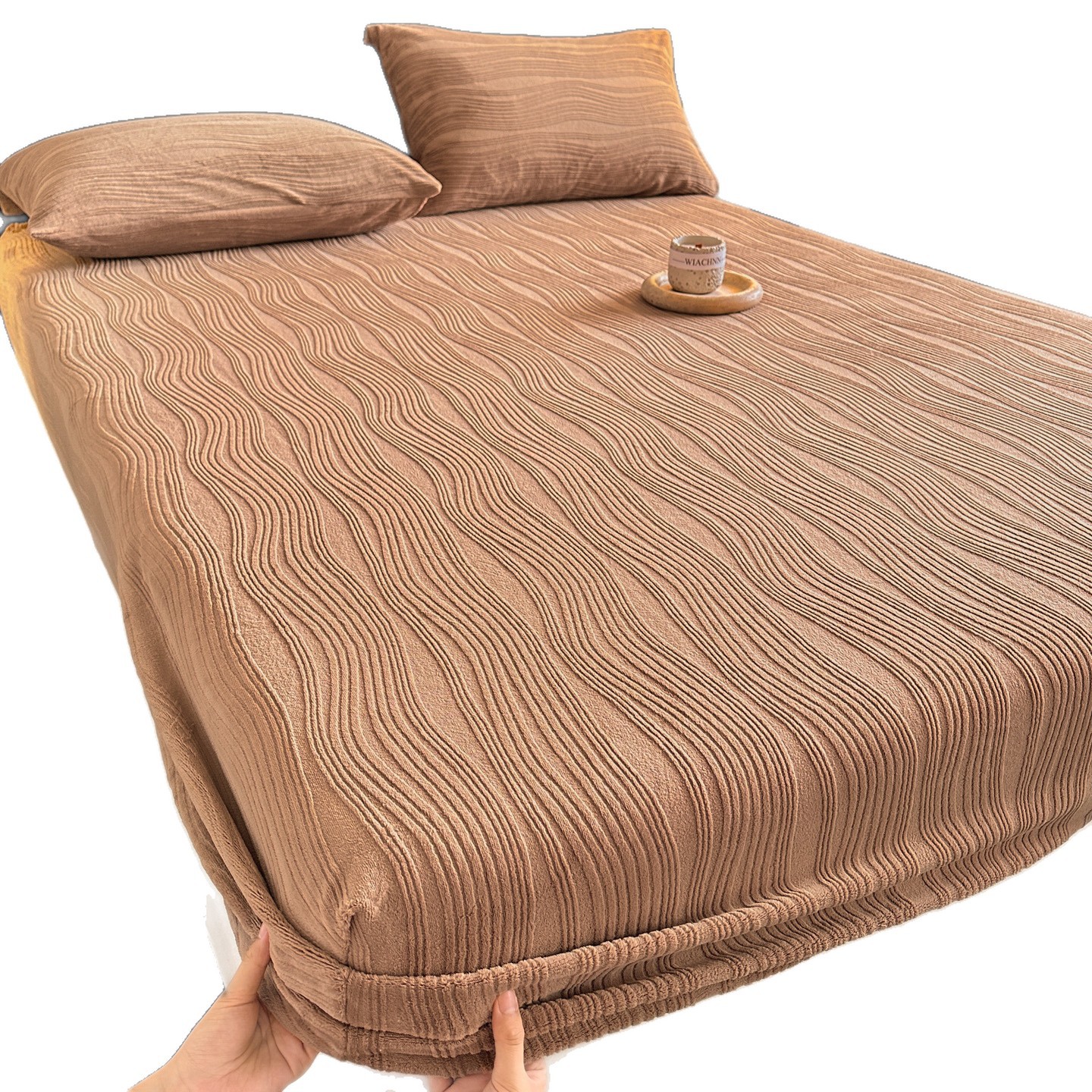 A类牛奶绒雕花床笠加厚床罩水波纹三件套防尘罩保护套加绒床罩