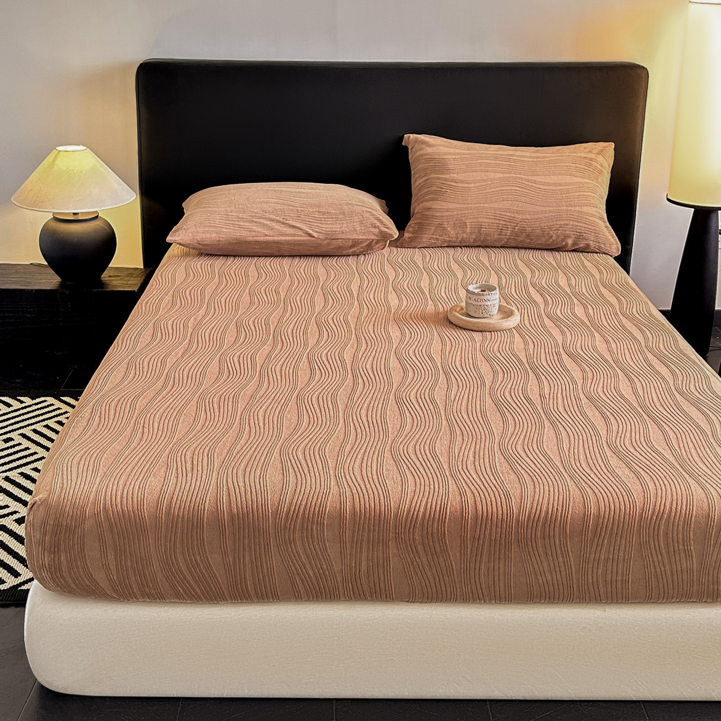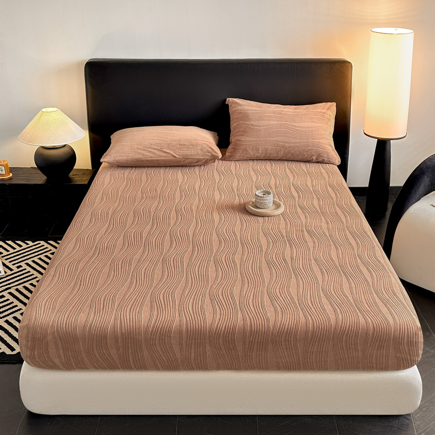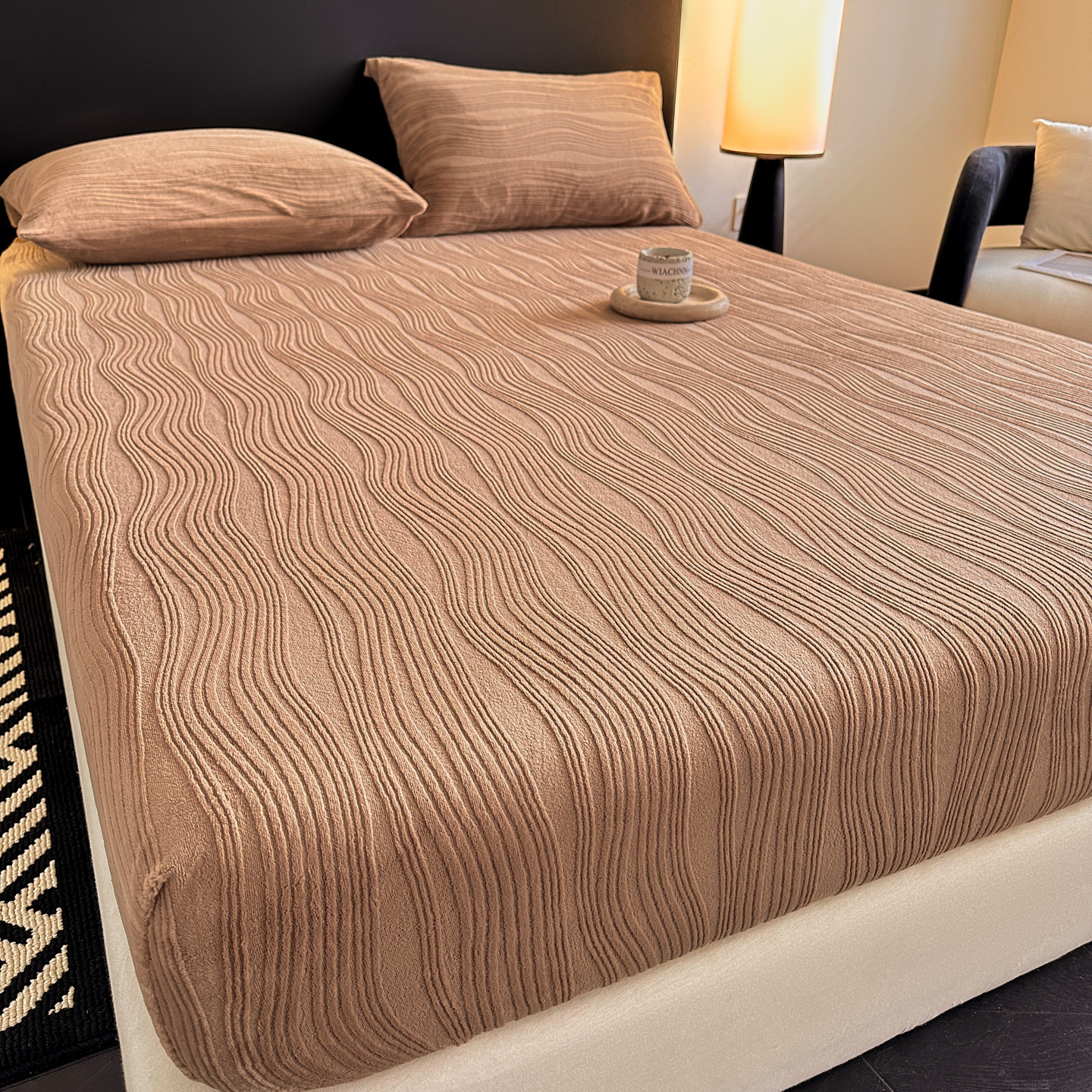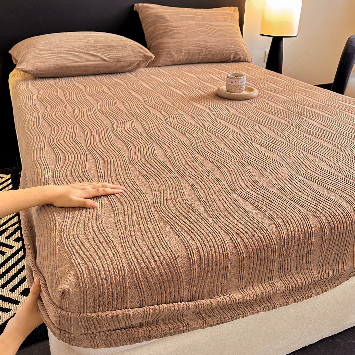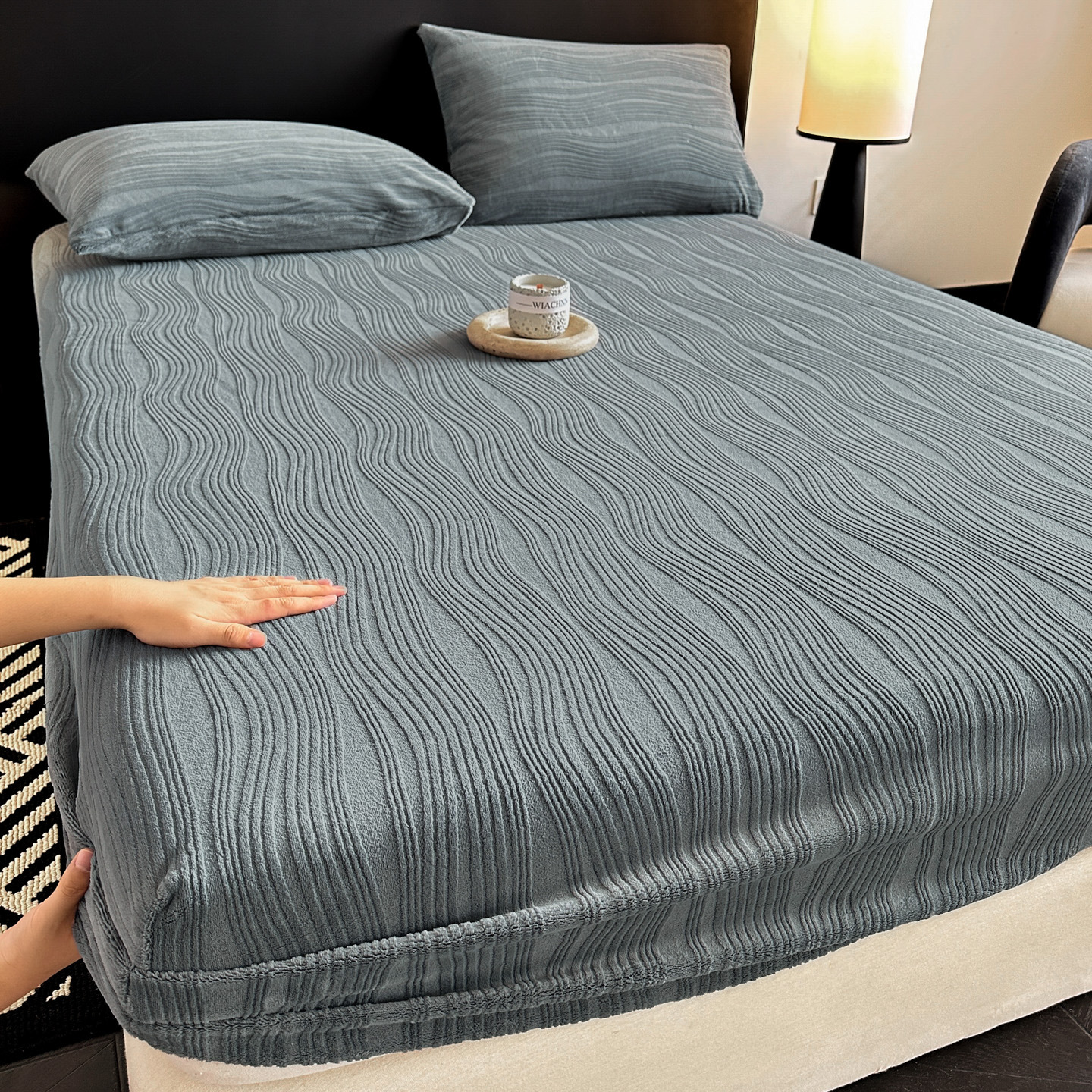 A类牛奶绒雕花床笠加厚床罩水波纹三件套防尘罩保护套加绒床罩