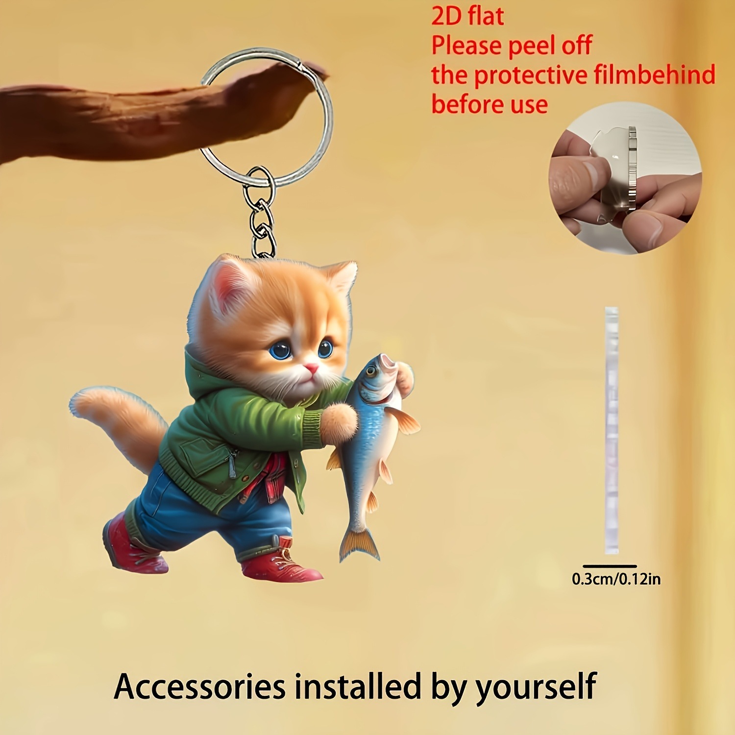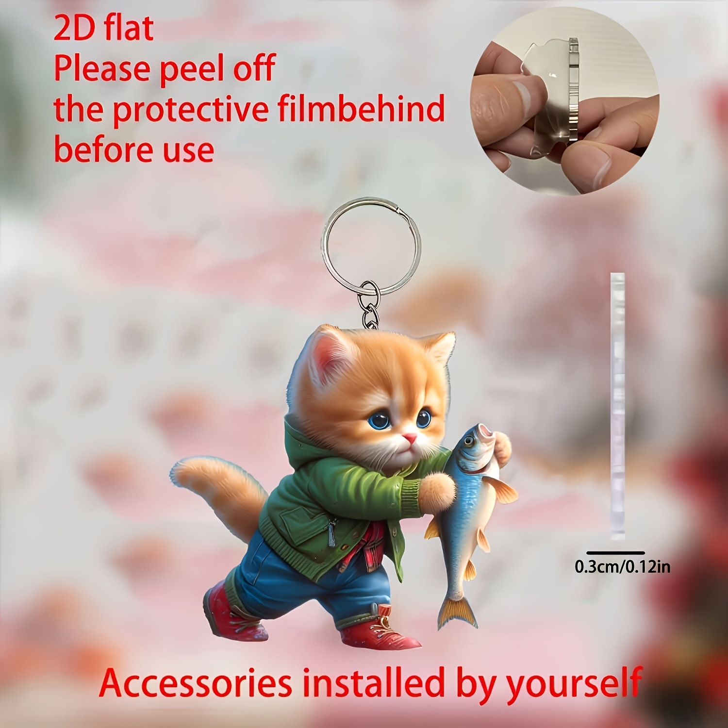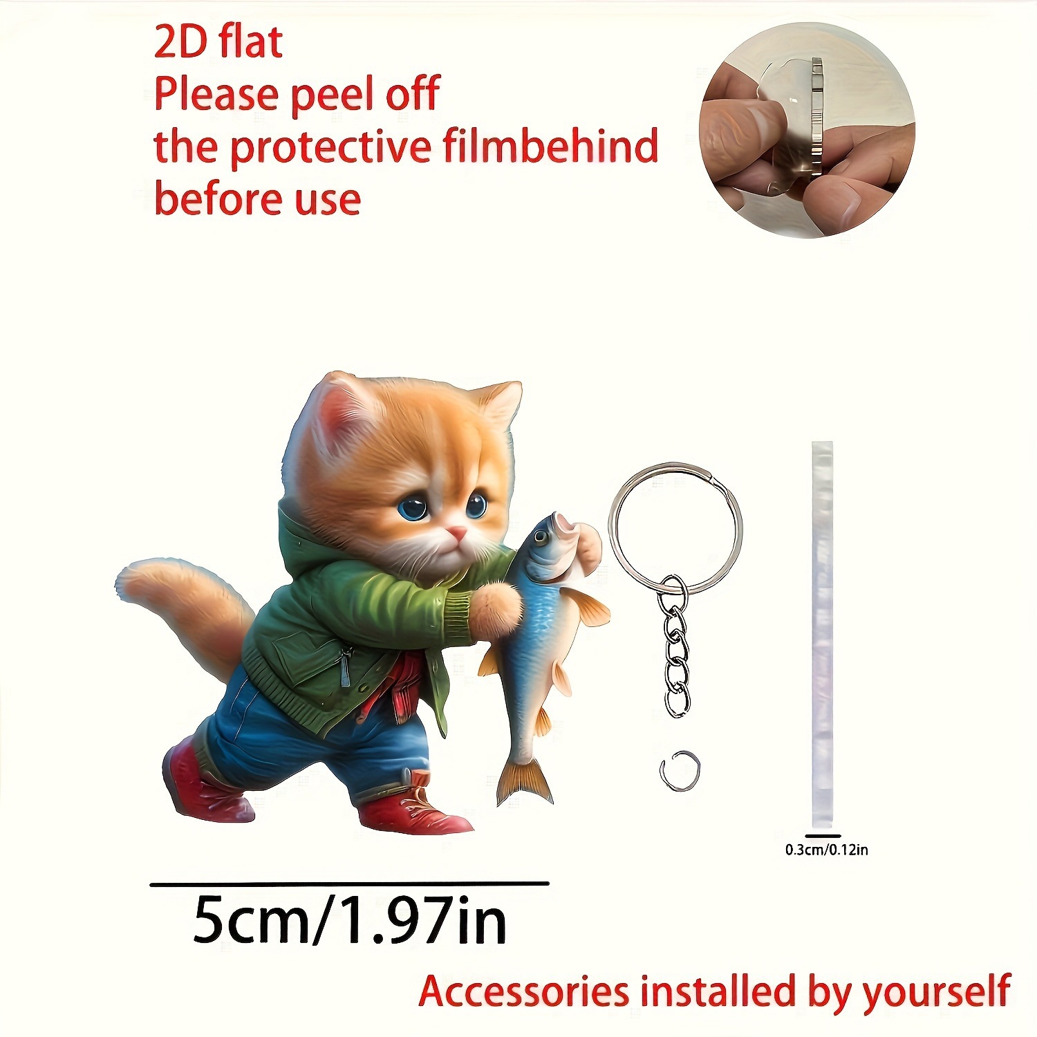 跨境新款亚克力平面可爱猫咪抓鱼钥匙扣挂件