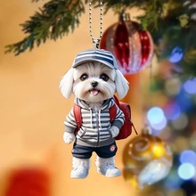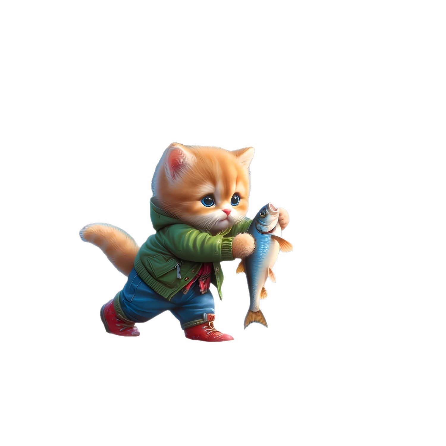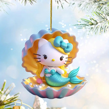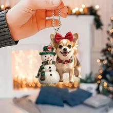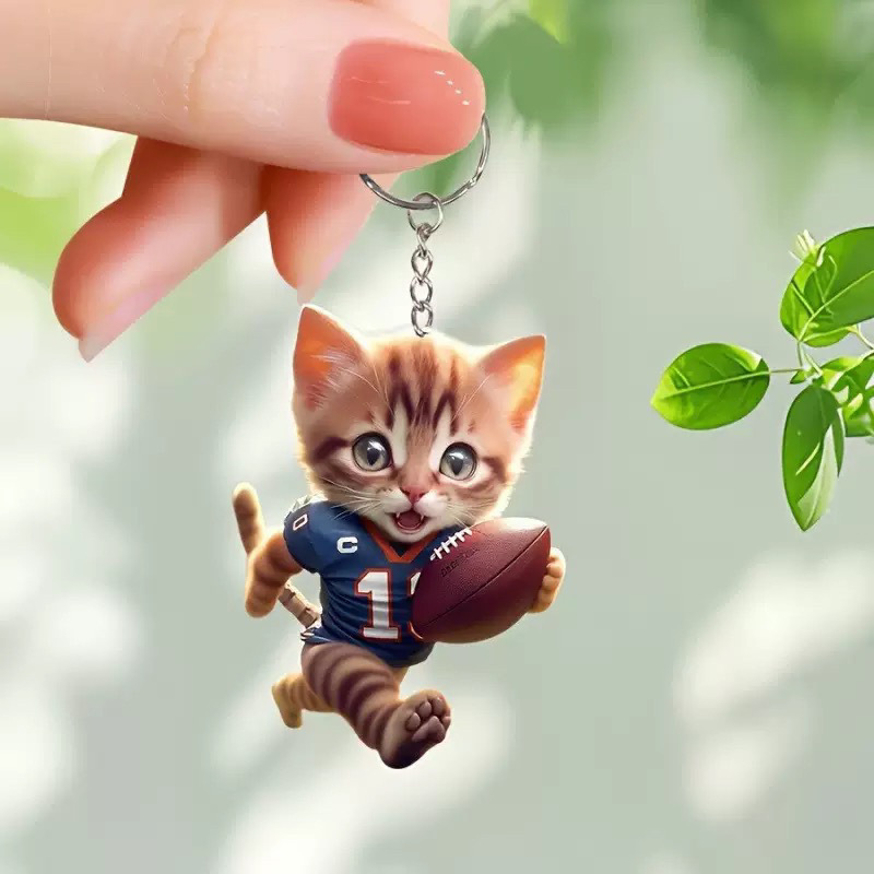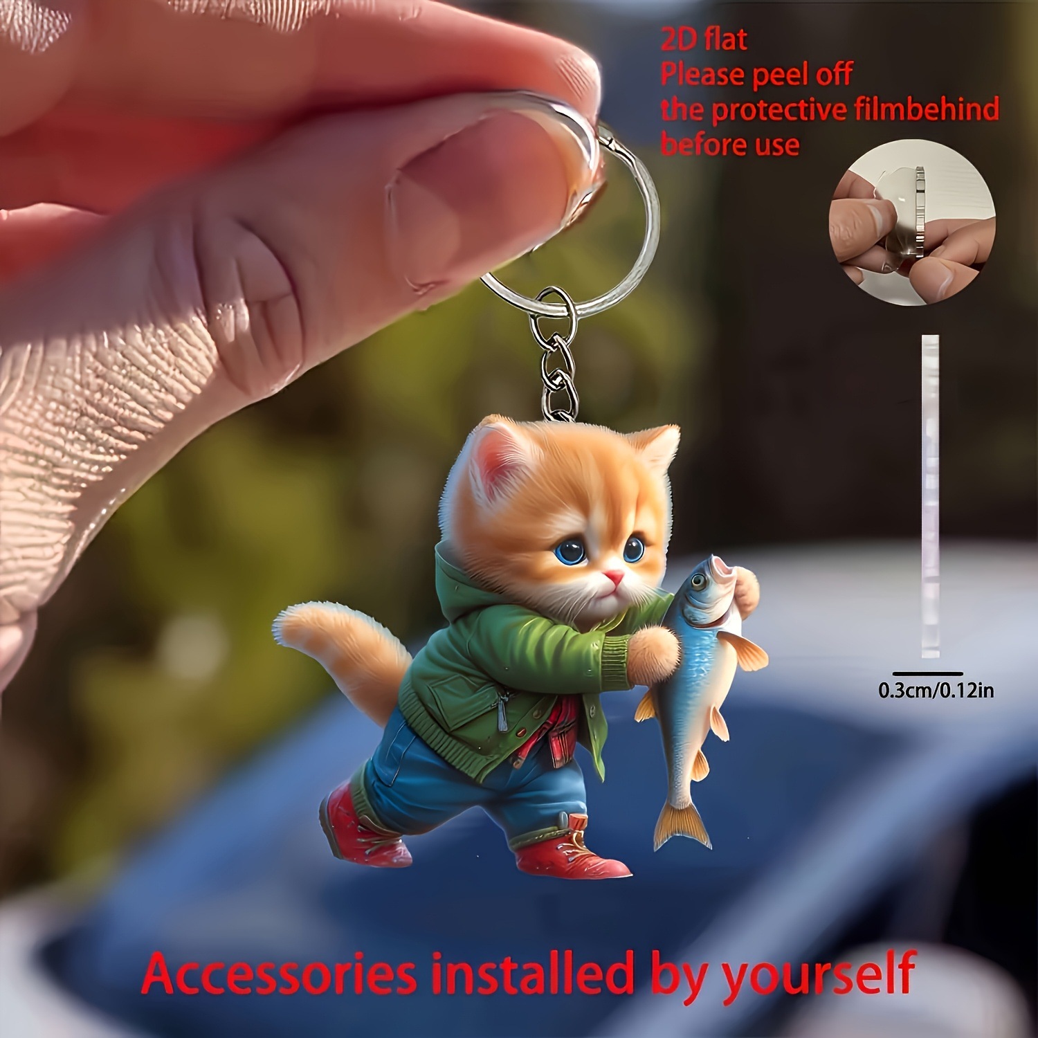 跨境新款亚克力平面可爱猫咪抓鱼钥匙扣挂件