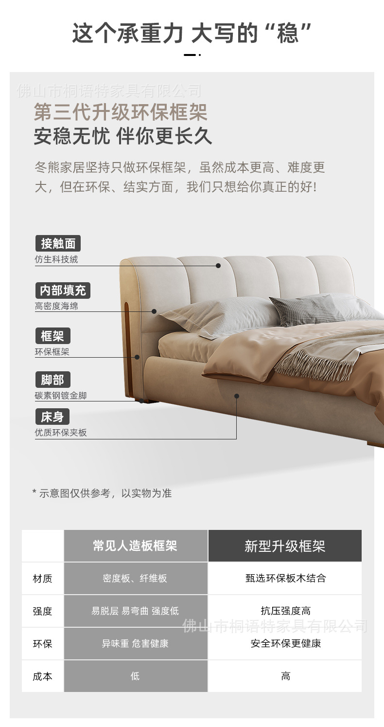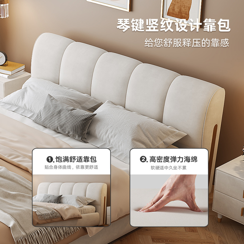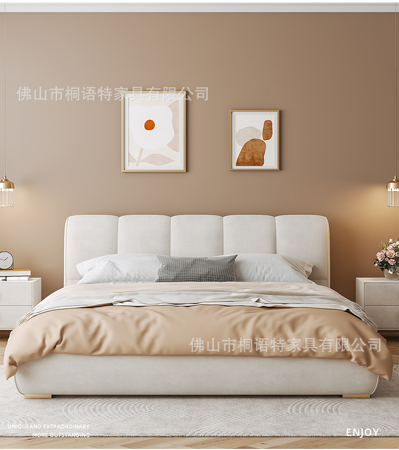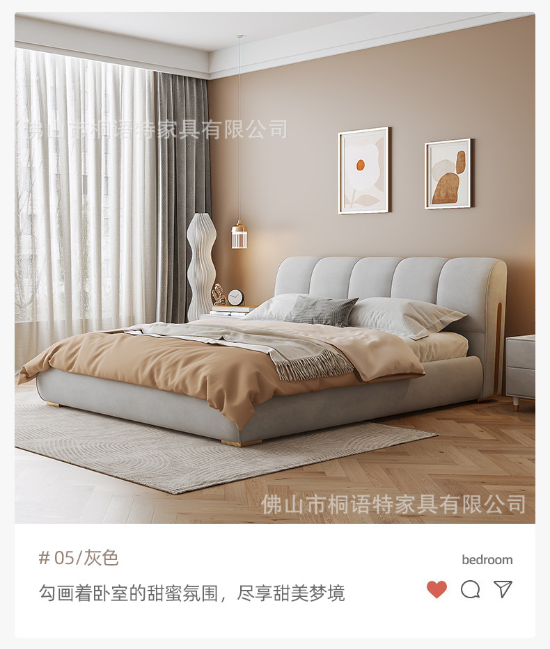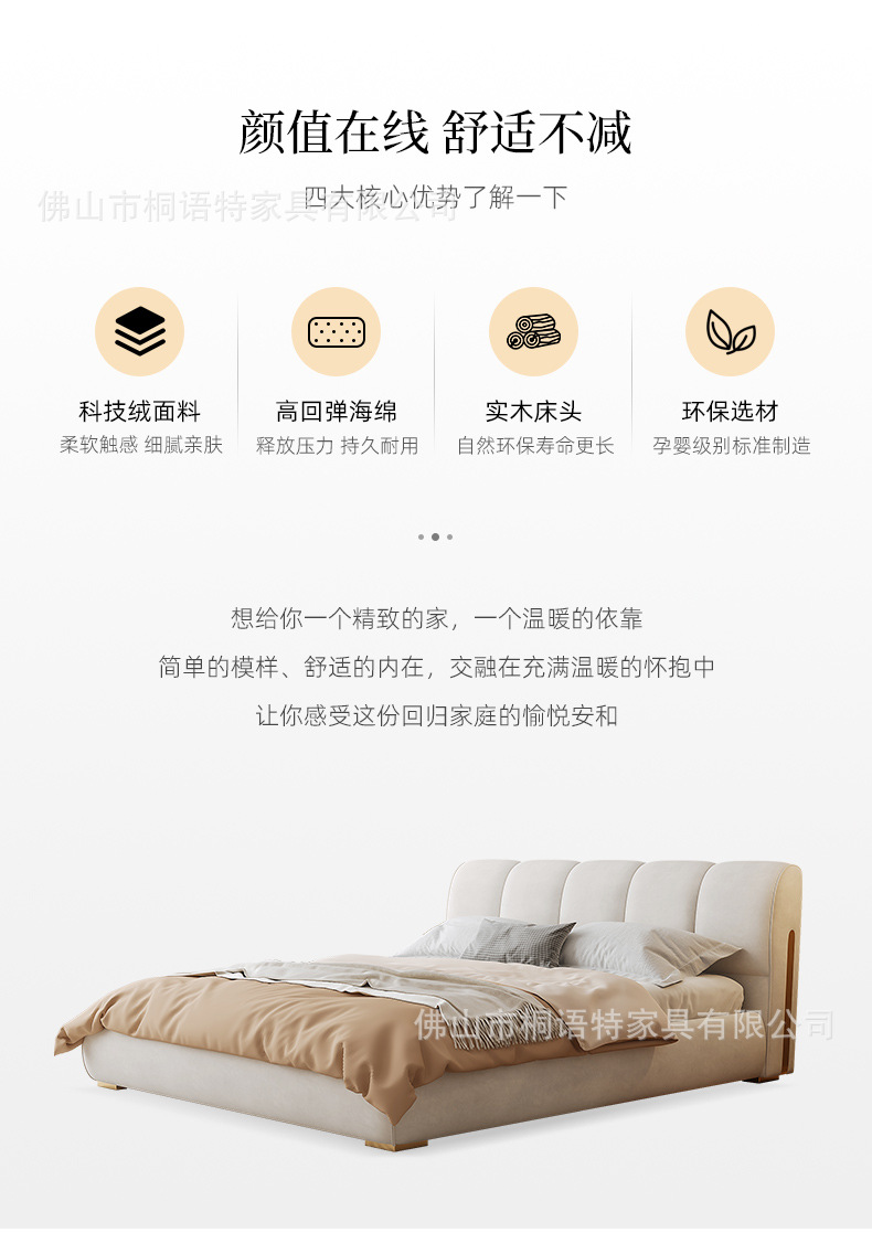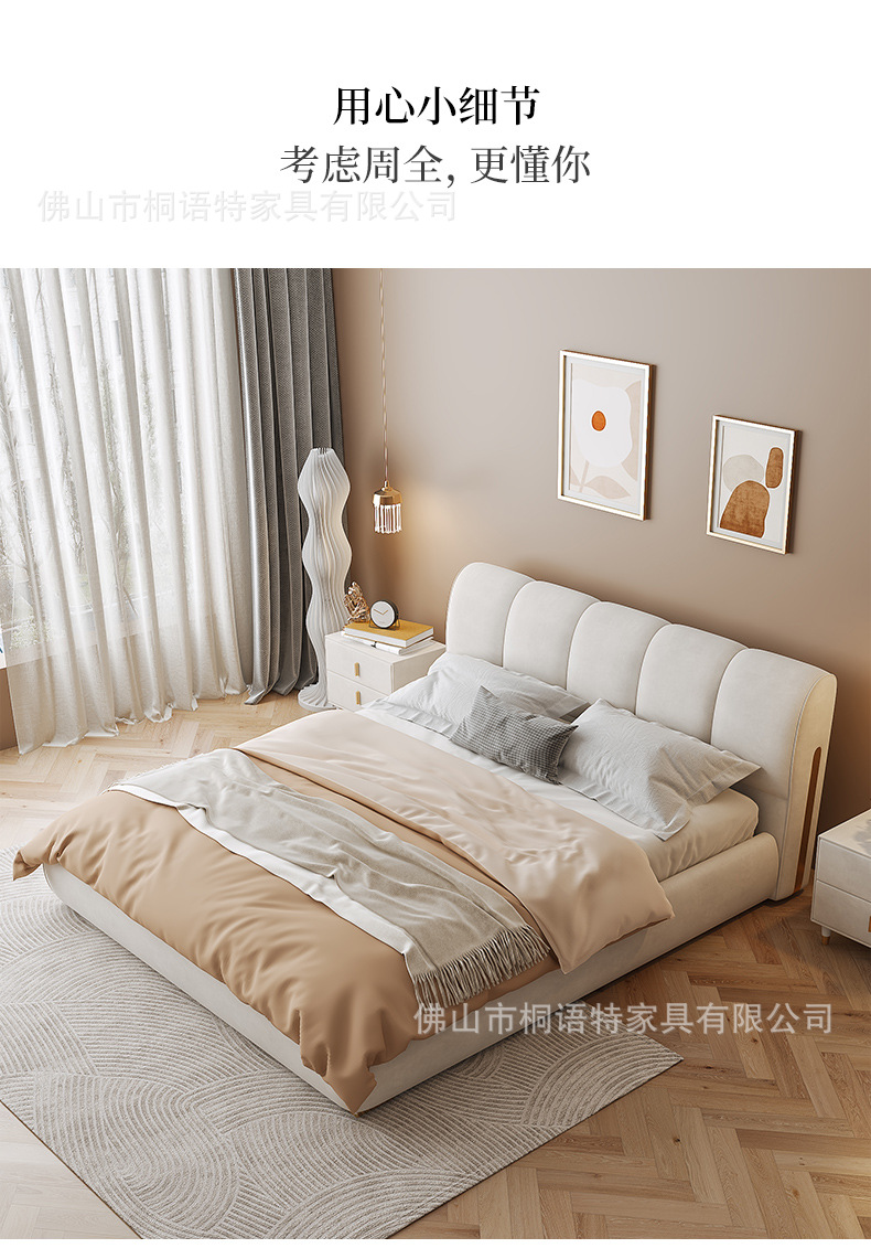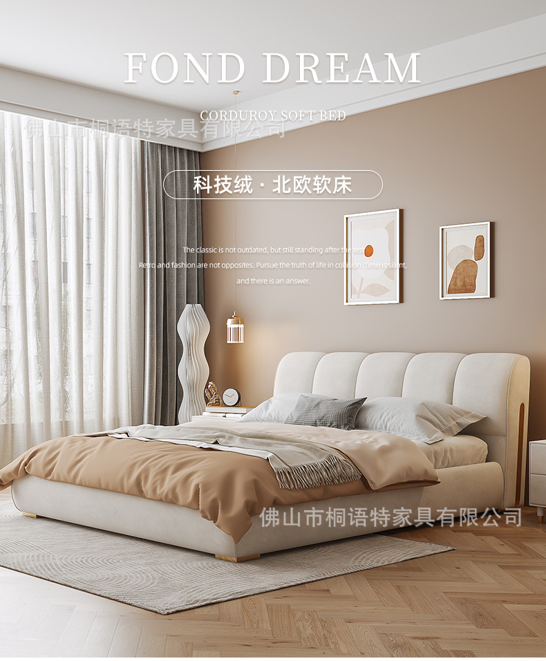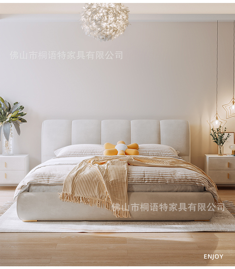 桐语特现代简约科技绒1.8m轻奢北欧主卧双人落地泡芙面包床布艺床