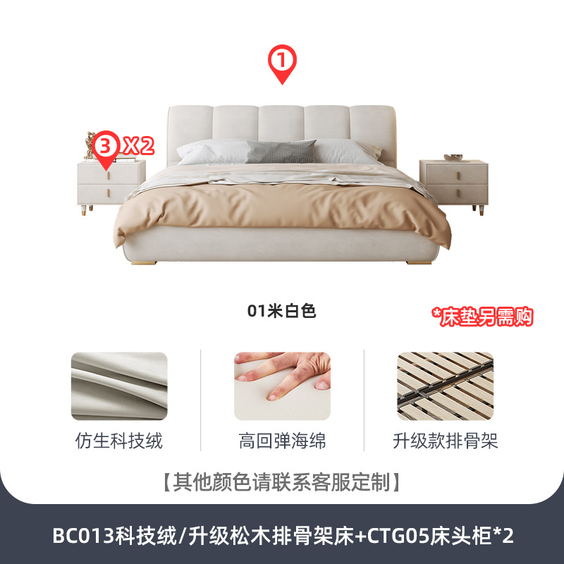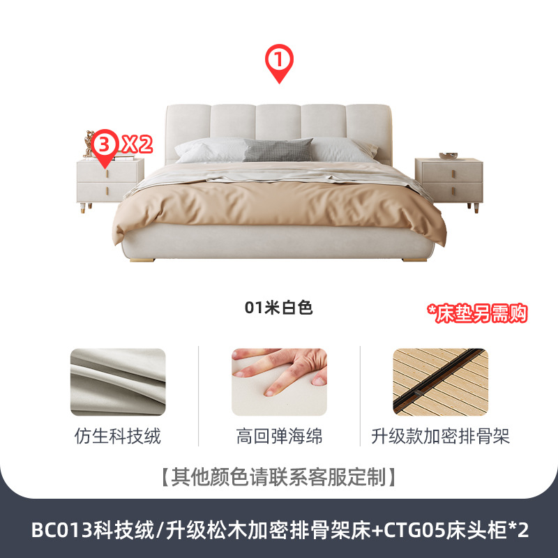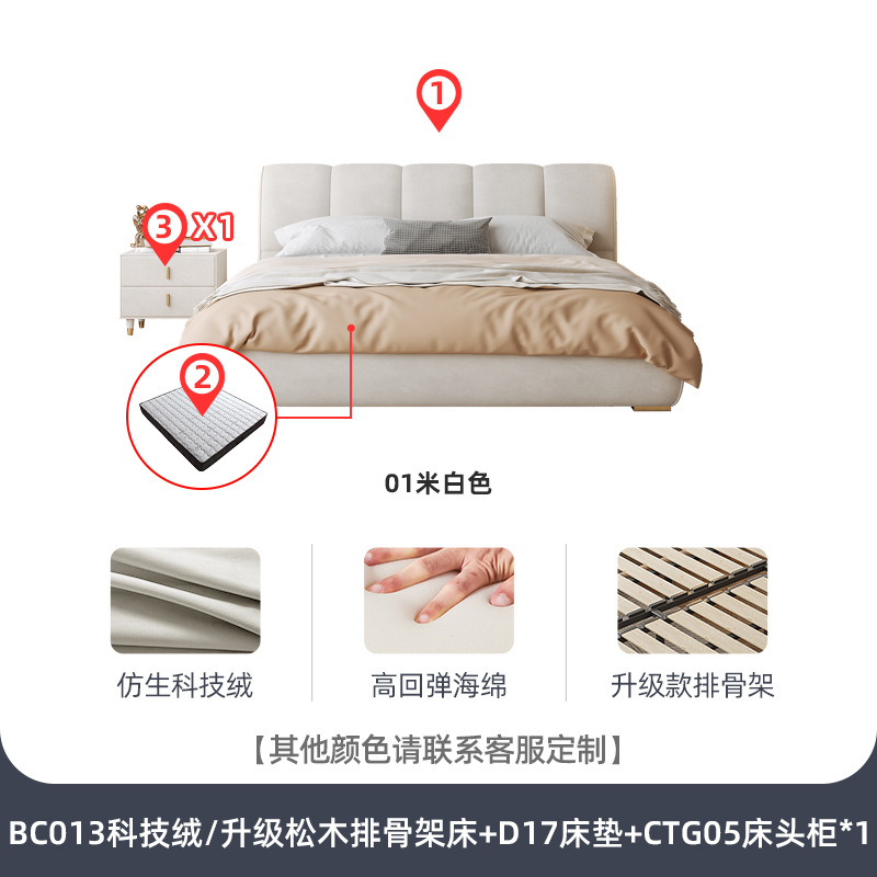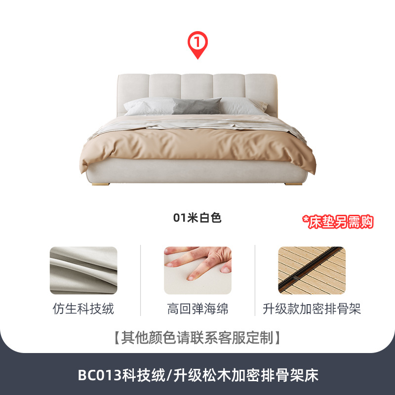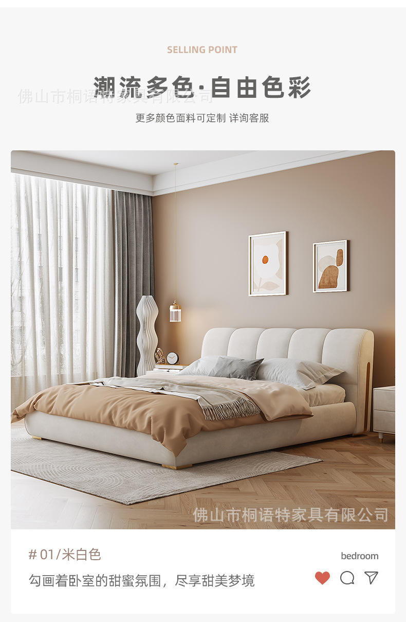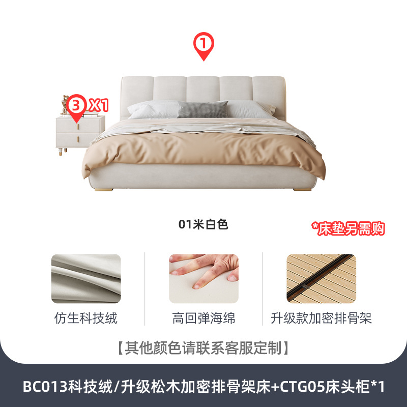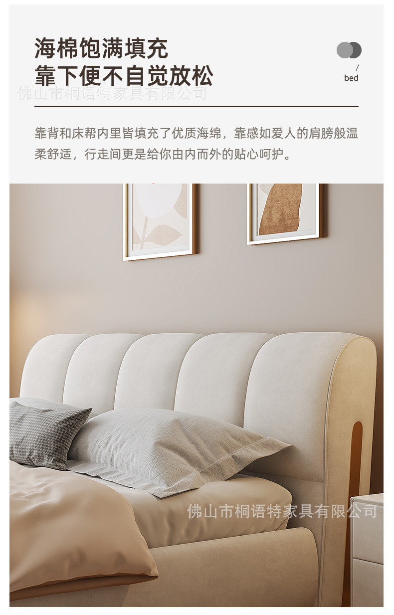 桐语特现代简约科技绒1.8m轻奢北欧主卧双人落地泡芙面包床布艺床