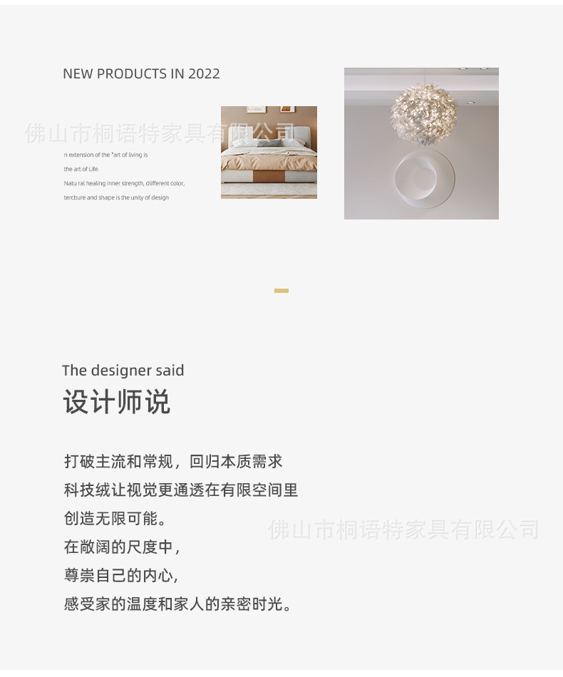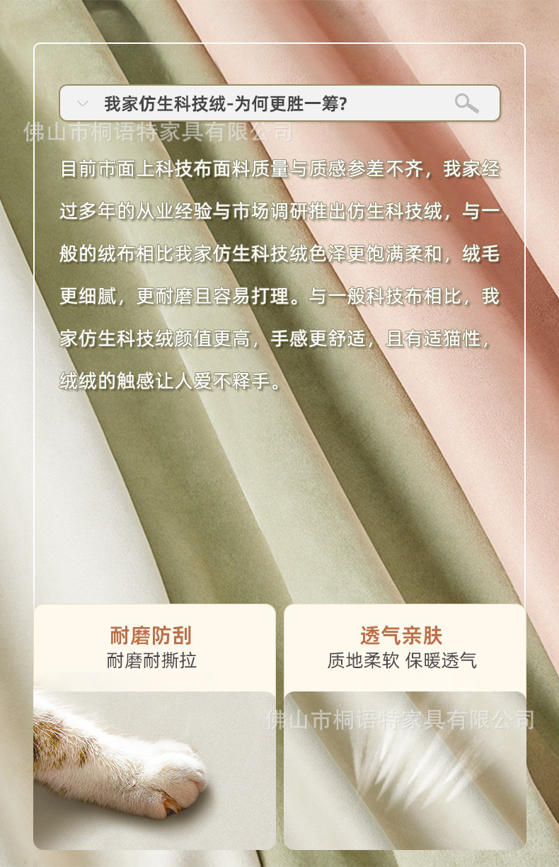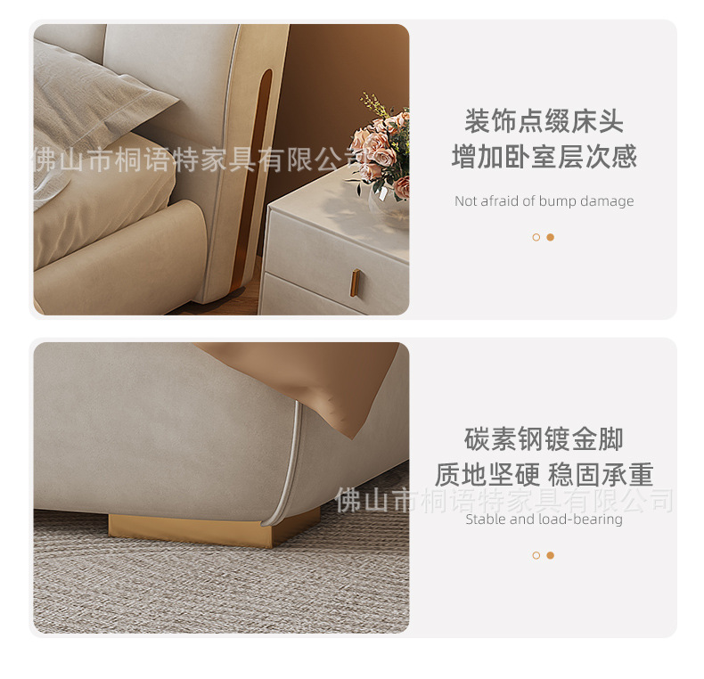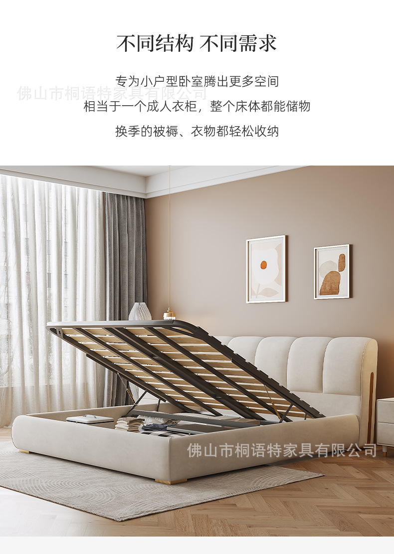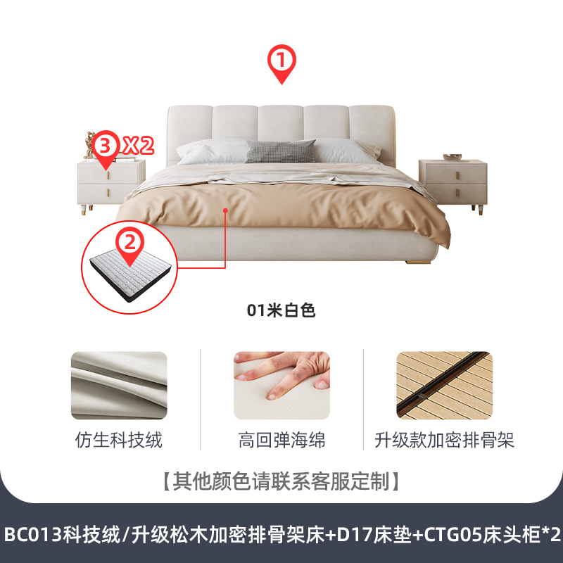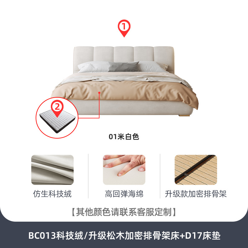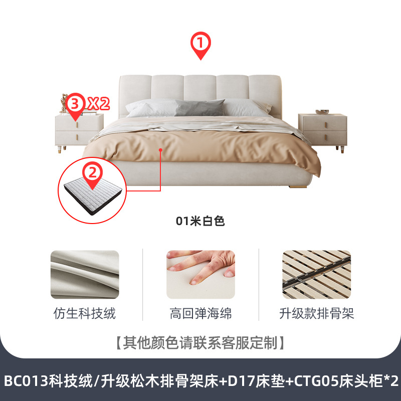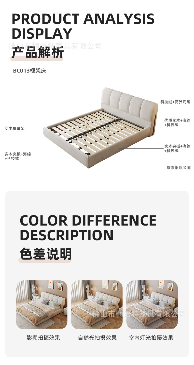 桐语特现代简约科技绒1.8m轻奢北欧主卧双人落地泡芙面包床布艺床