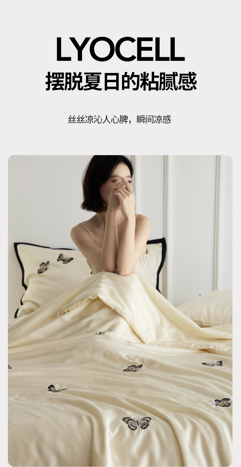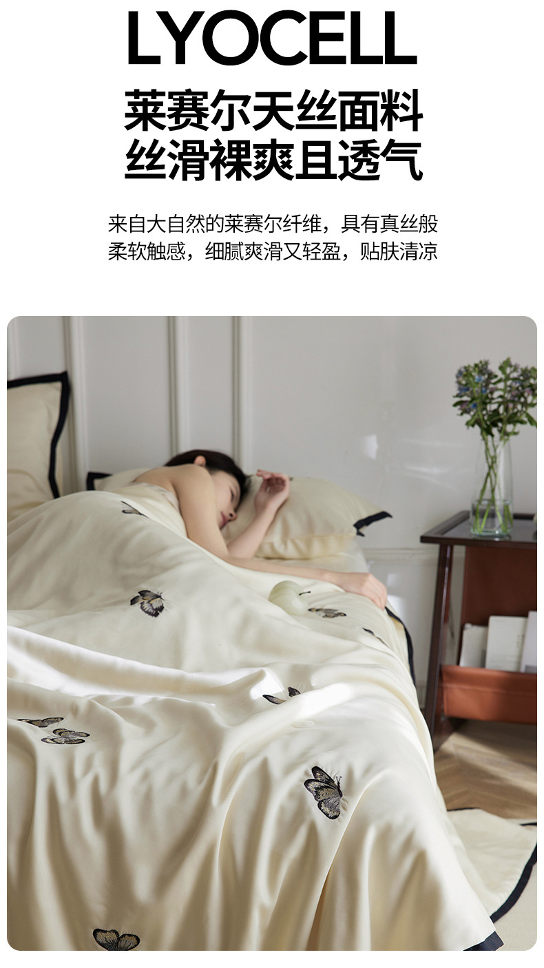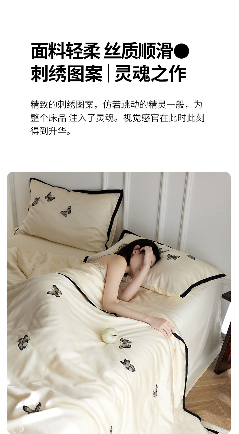 100支莱赛尔天丝夏被四件套小香风被子床单夏季冰丝被芯床上用品4