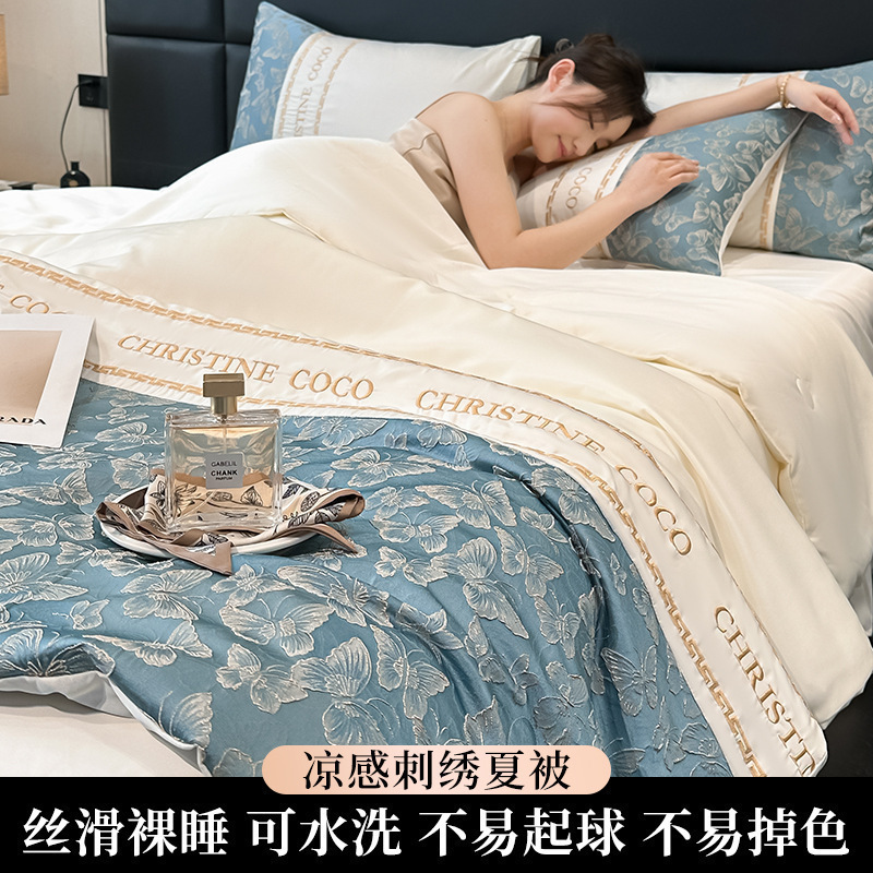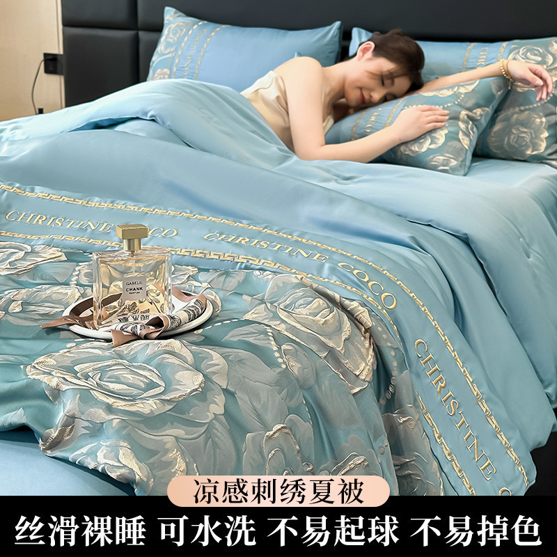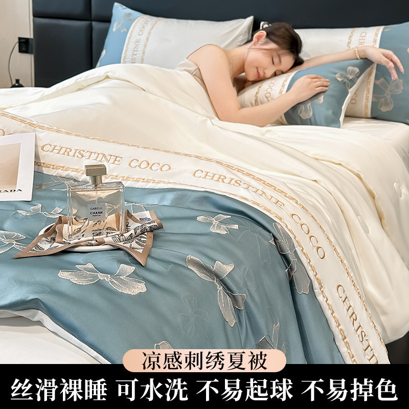a类冰丝夏凉被四件套可机洗水洗真丝夏被夏季单人被子双人空调被